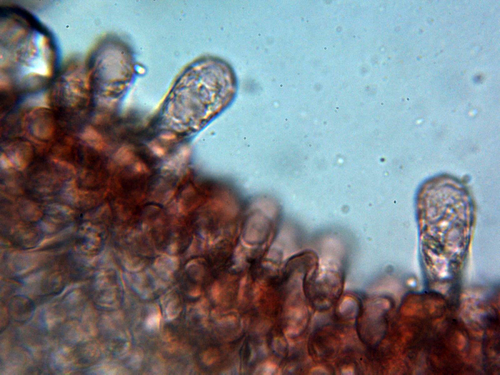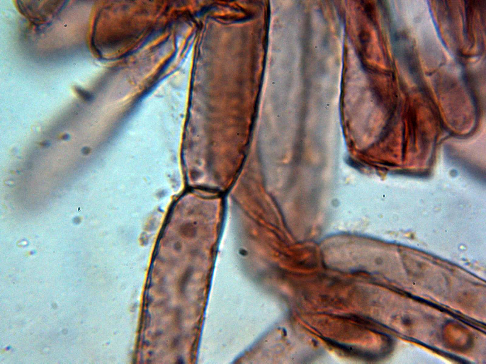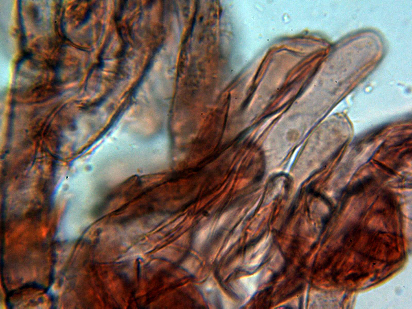 Pileipellis con hifas anchas, con incrustaciones y desprovistas de fíbulas: