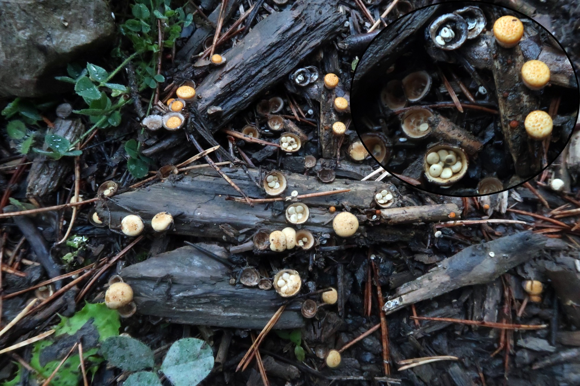 Muy abundante en el suelo donde pisaba, en medio de una pista forestal, el Crucibulum laeve, ni me molesté en recoger muestra.