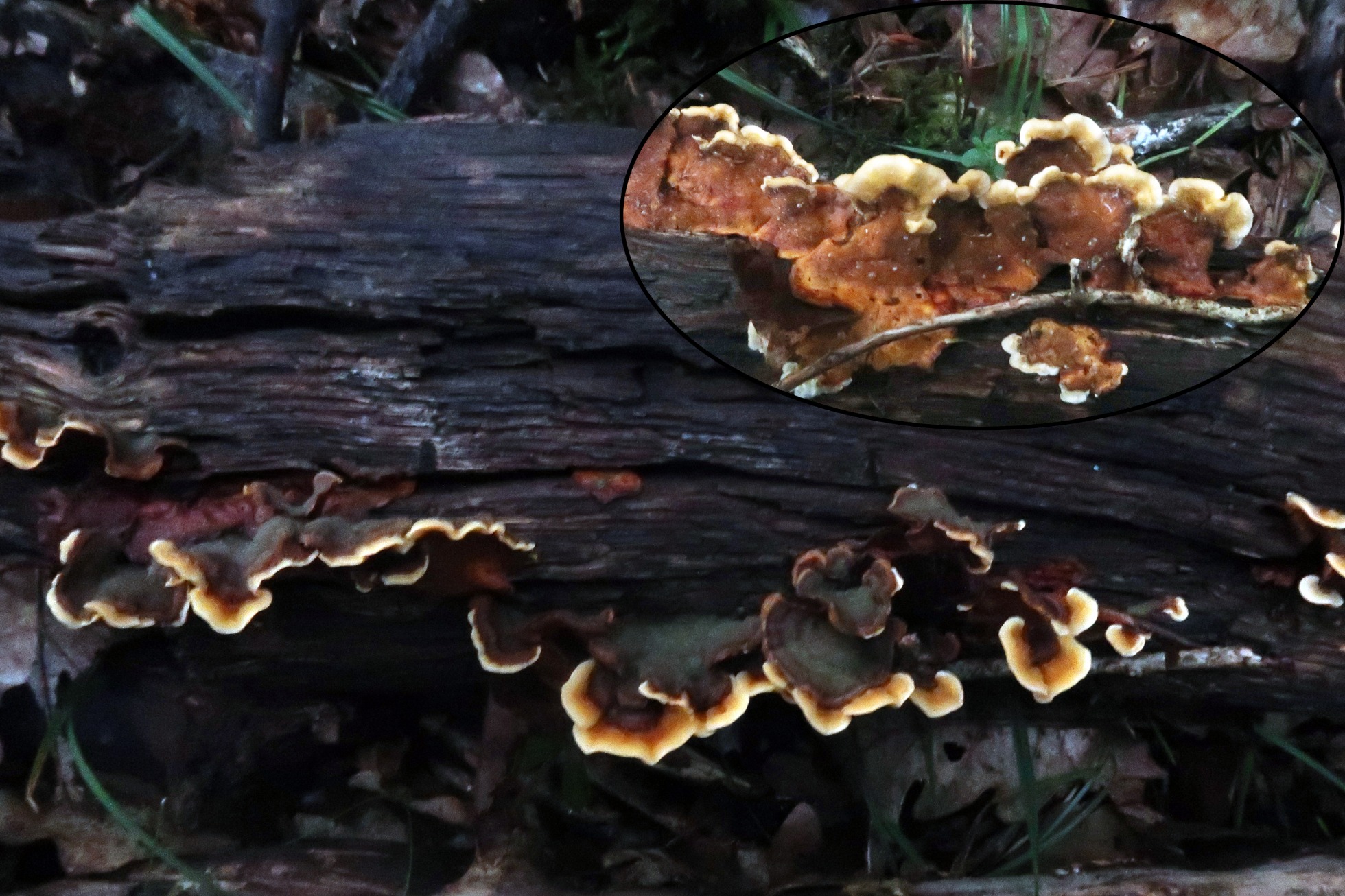 Y para terminar una vistosa lignícola, el Stereum insignitum
