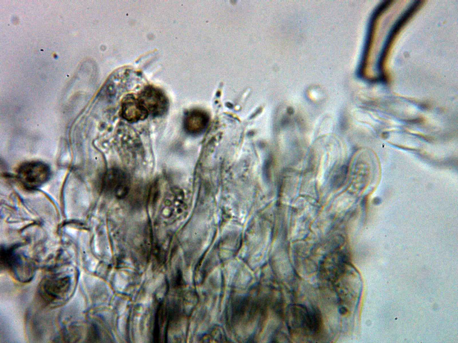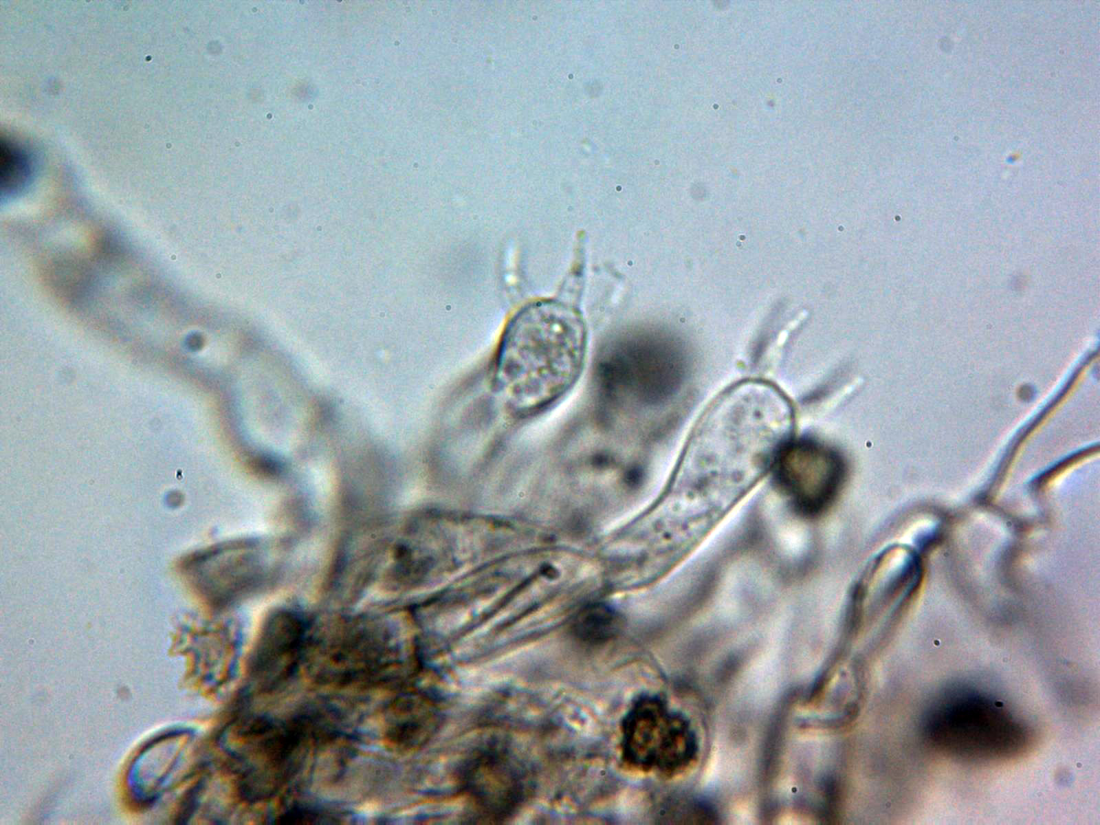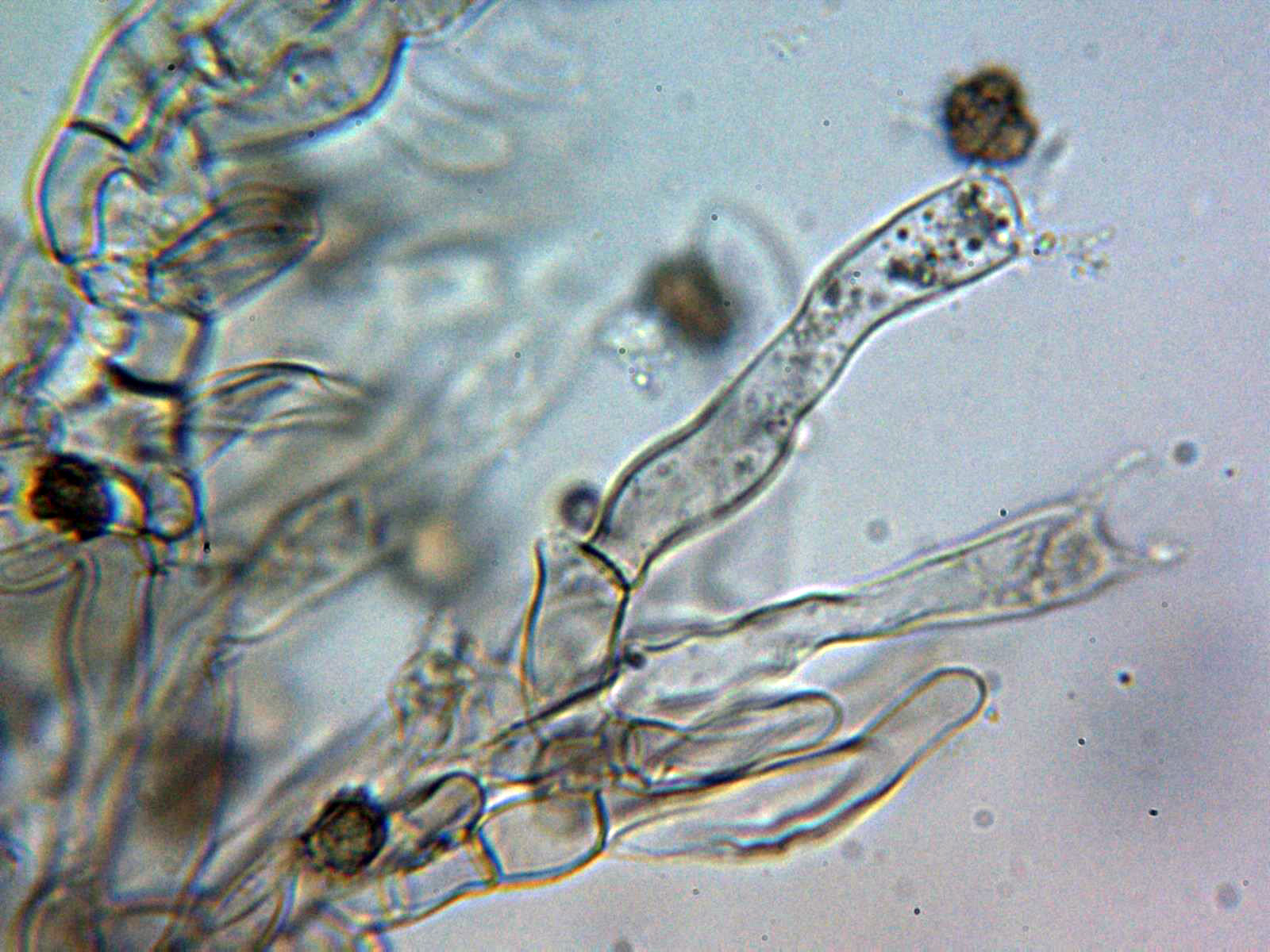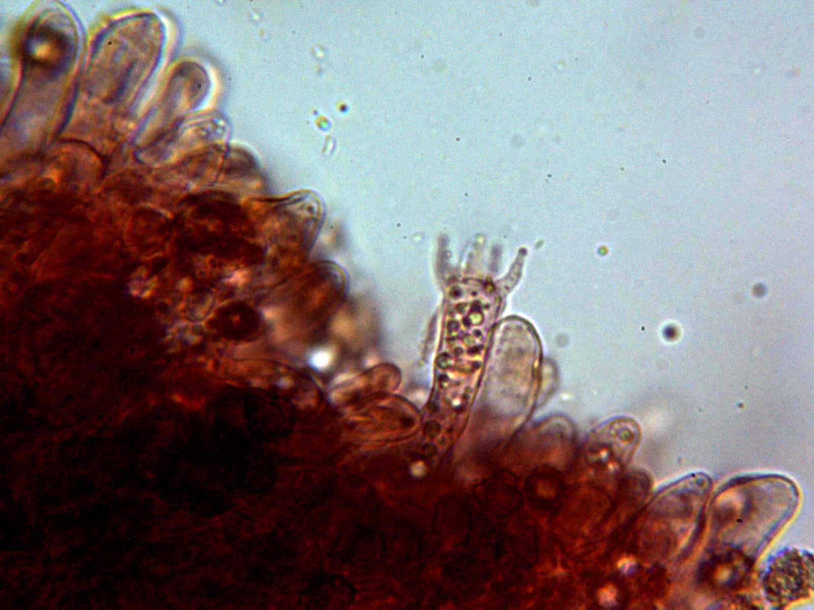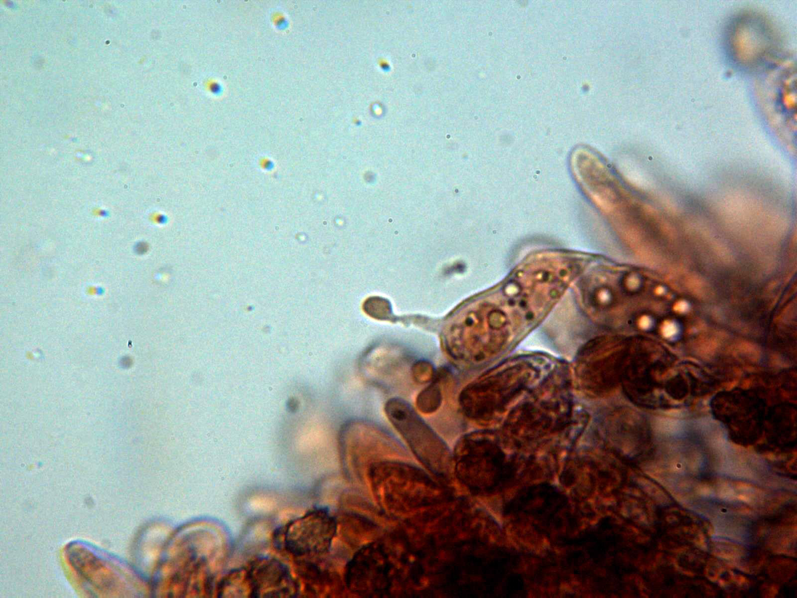 En alguno de los basidios parece observarse más de 4 esterigmas.
