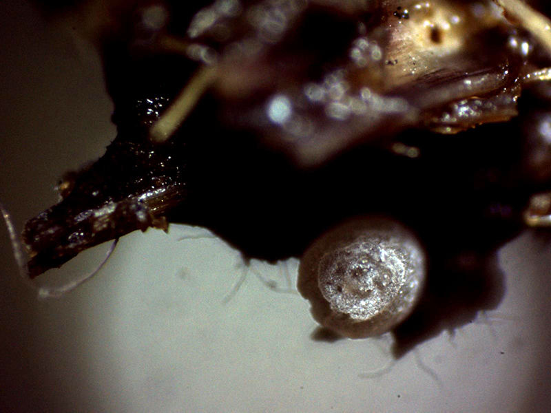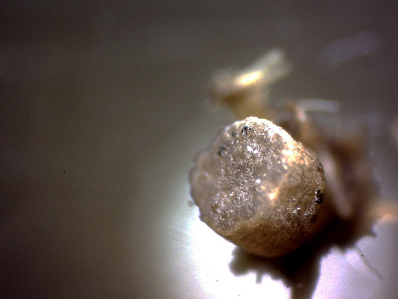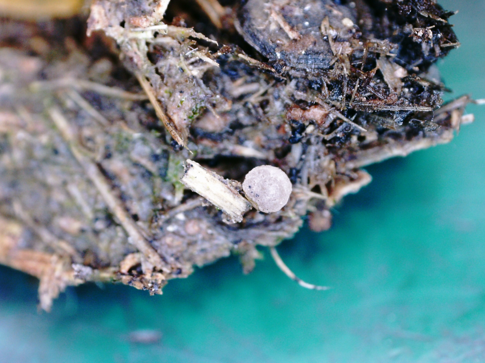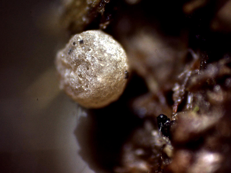 Unos pequeños apotecios de color claro, de entre 0,5 a 0,9 mm. de diámetro y 0,5 mm. de altura, entre esféricos y discoides. Agradecer a Gilbert Moyne y a Michel Delpont su ayuda en la determinación de la especie.