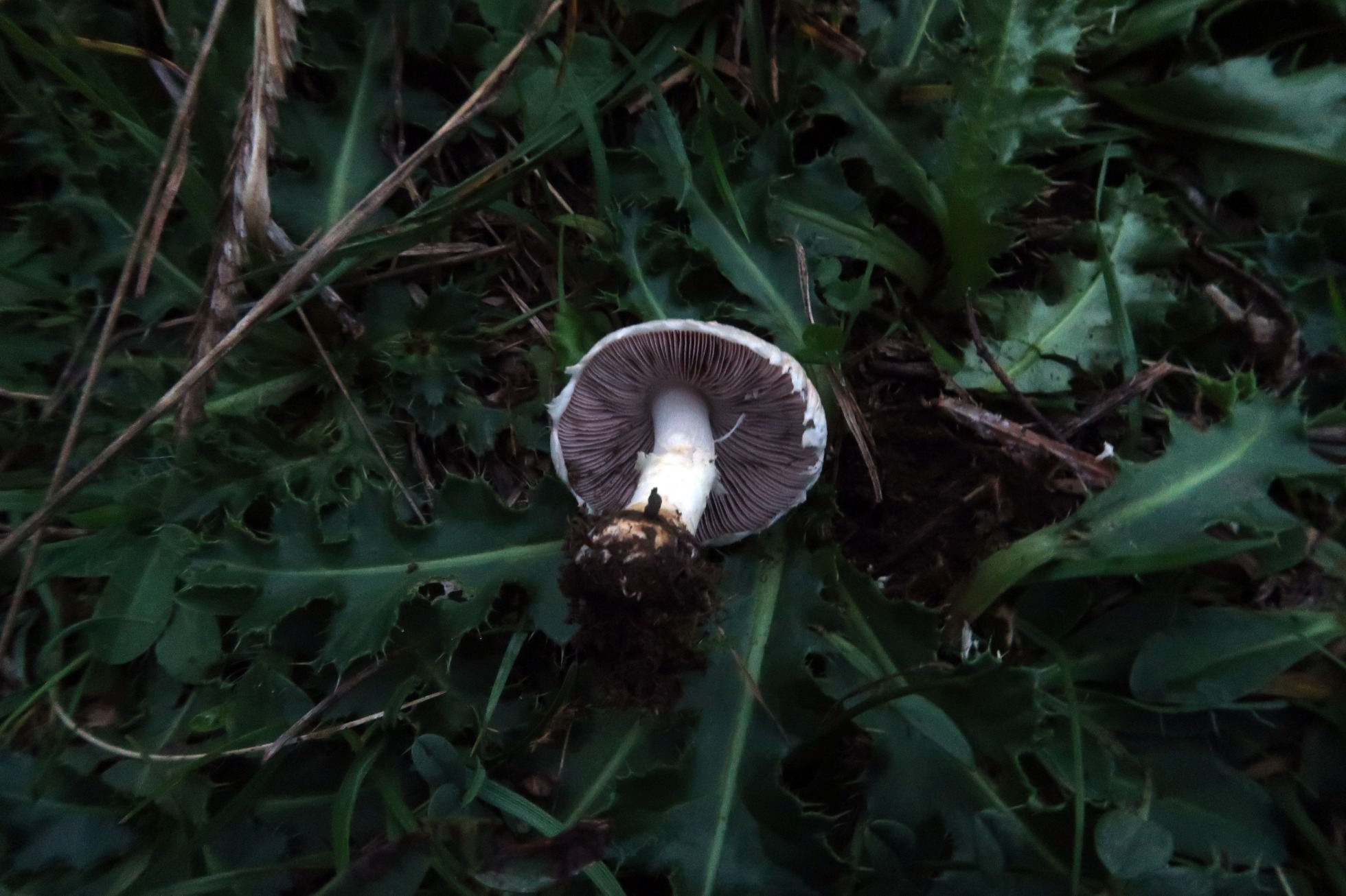 Un solo ejemplar de Agaricus de la sección Minores de unos 3 cm., con sombrero con tonos vinosos: