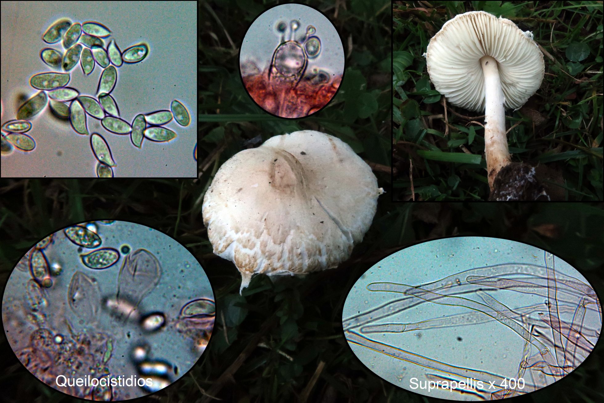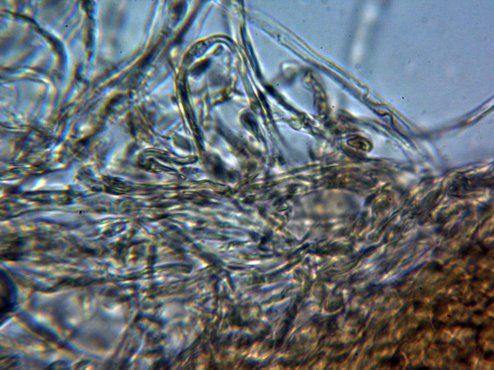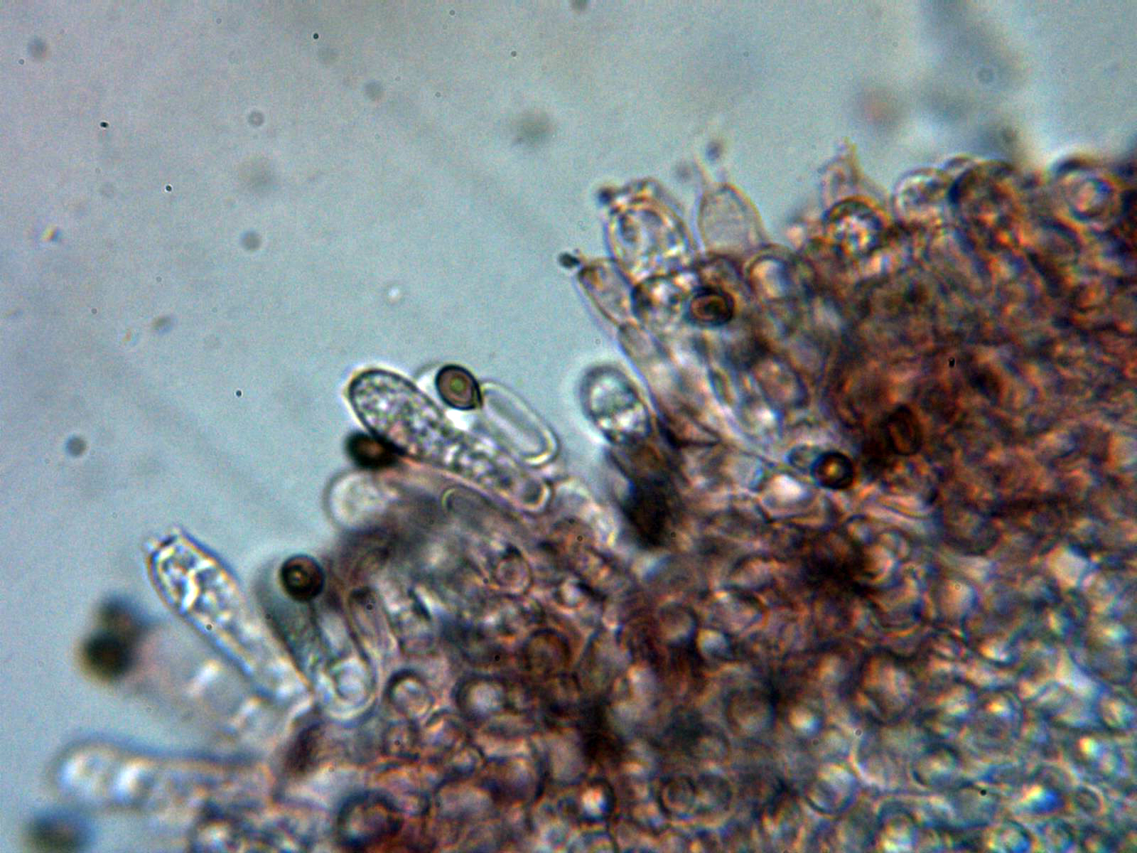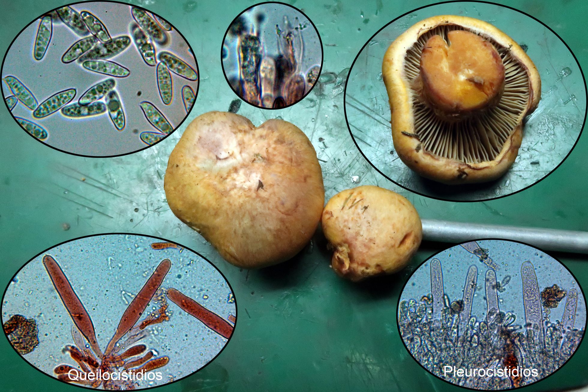 Hifas vesiculosas a modo de queilocistidios en la arista laminar, pleurocistidios no observados: