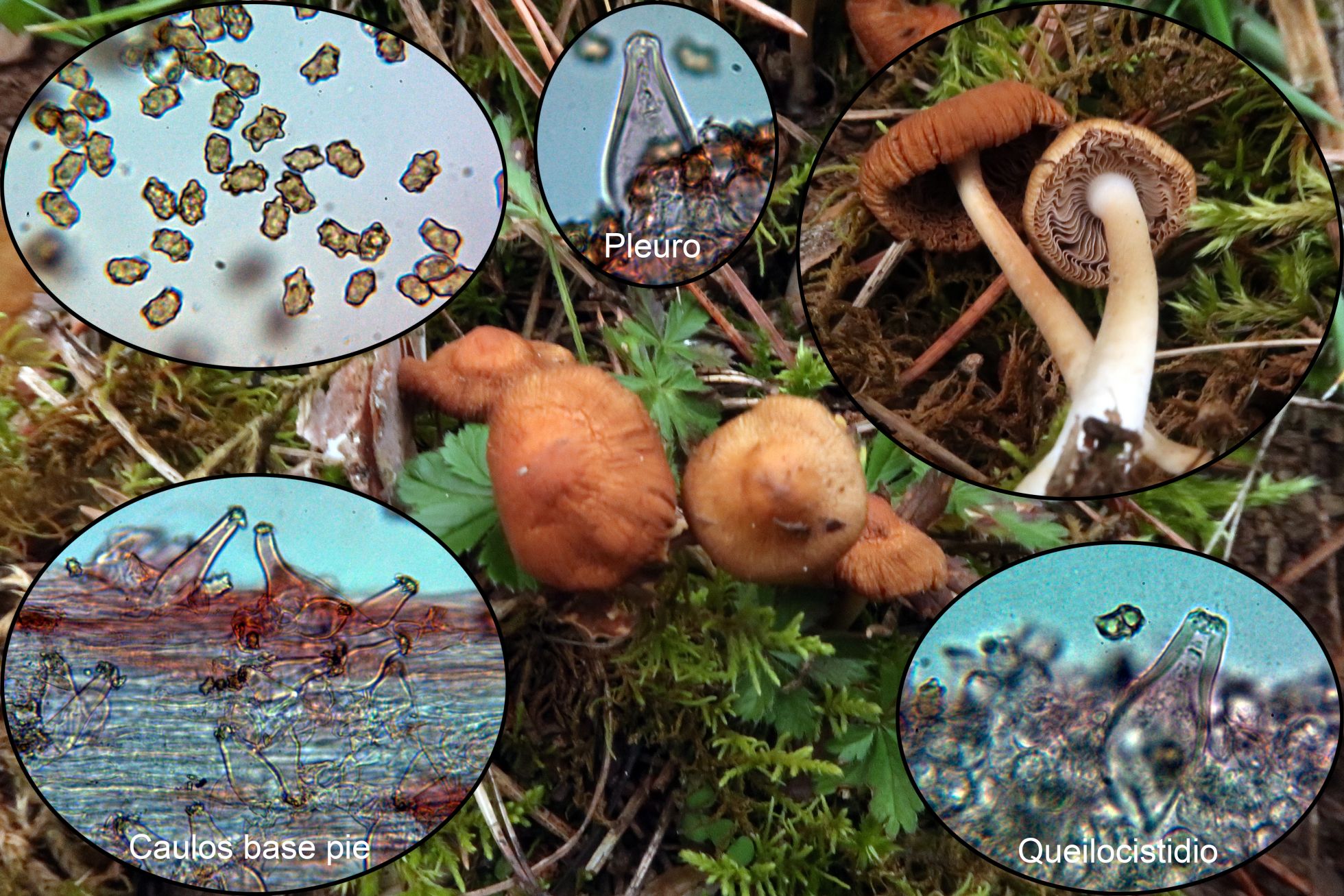 Una Inocybe. con caulosictidios por toda la superficie del pie, pleurocistidios presentes y esporas muy nodulosas que hace difícil su medición, el Inocybe mixtilis