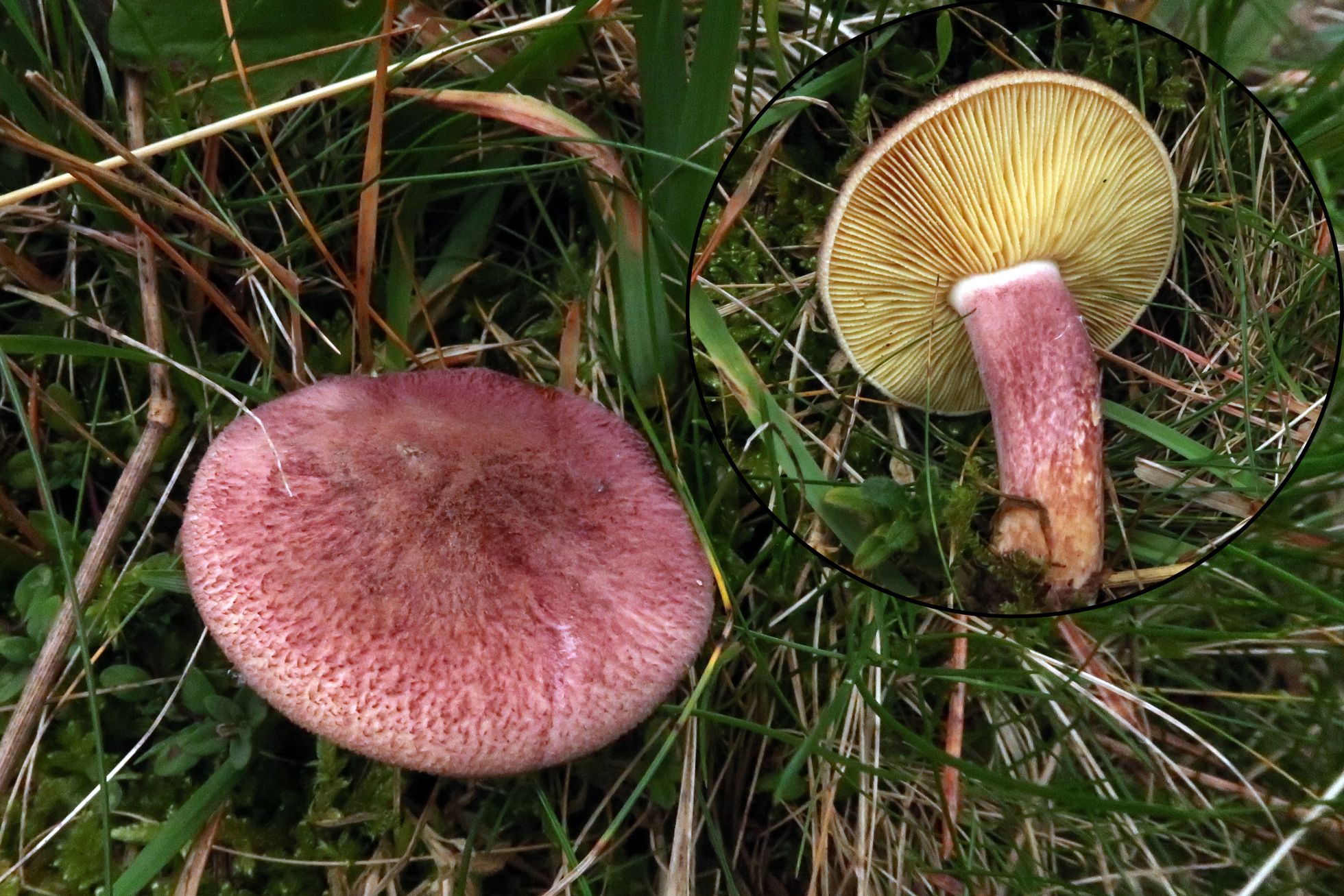 Y un Chroogomphus que no había tenido ocasión de estudiar aún, con sombrero seco y base del pie amarilleante con la manipulación, probablemente el Chroogomphus helveticus. Las imágenes son de estudio ya que con las prisas no les saqué fotos en su hábitat
