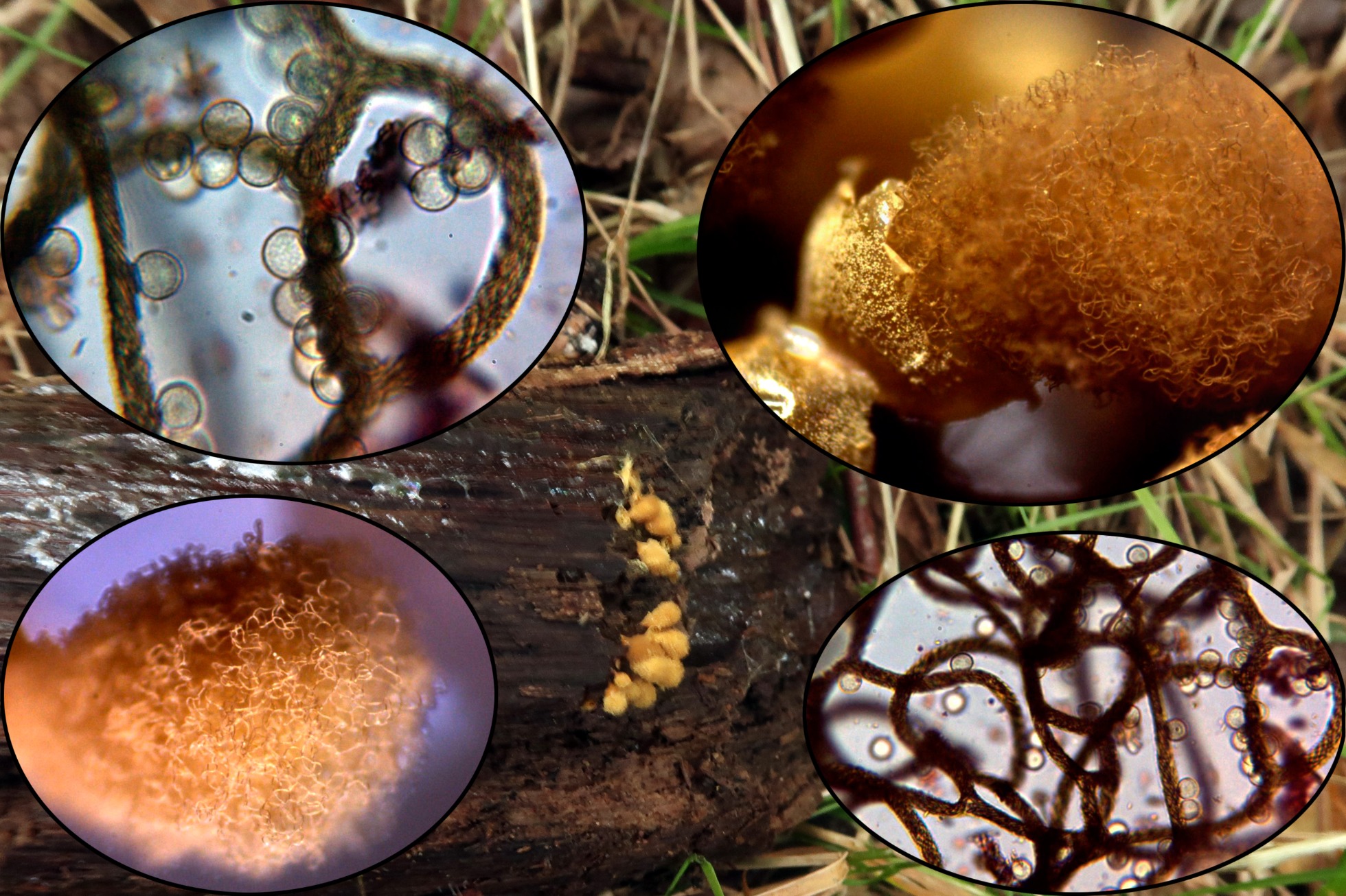 Un Mixomiceto que me dio Juan Andrés, no me molesté ya en seguir con la micro ya que parece claro que se trata de la abundante Hemitrichia clavata, este es ya el quinto estudio que realizo a la especie: