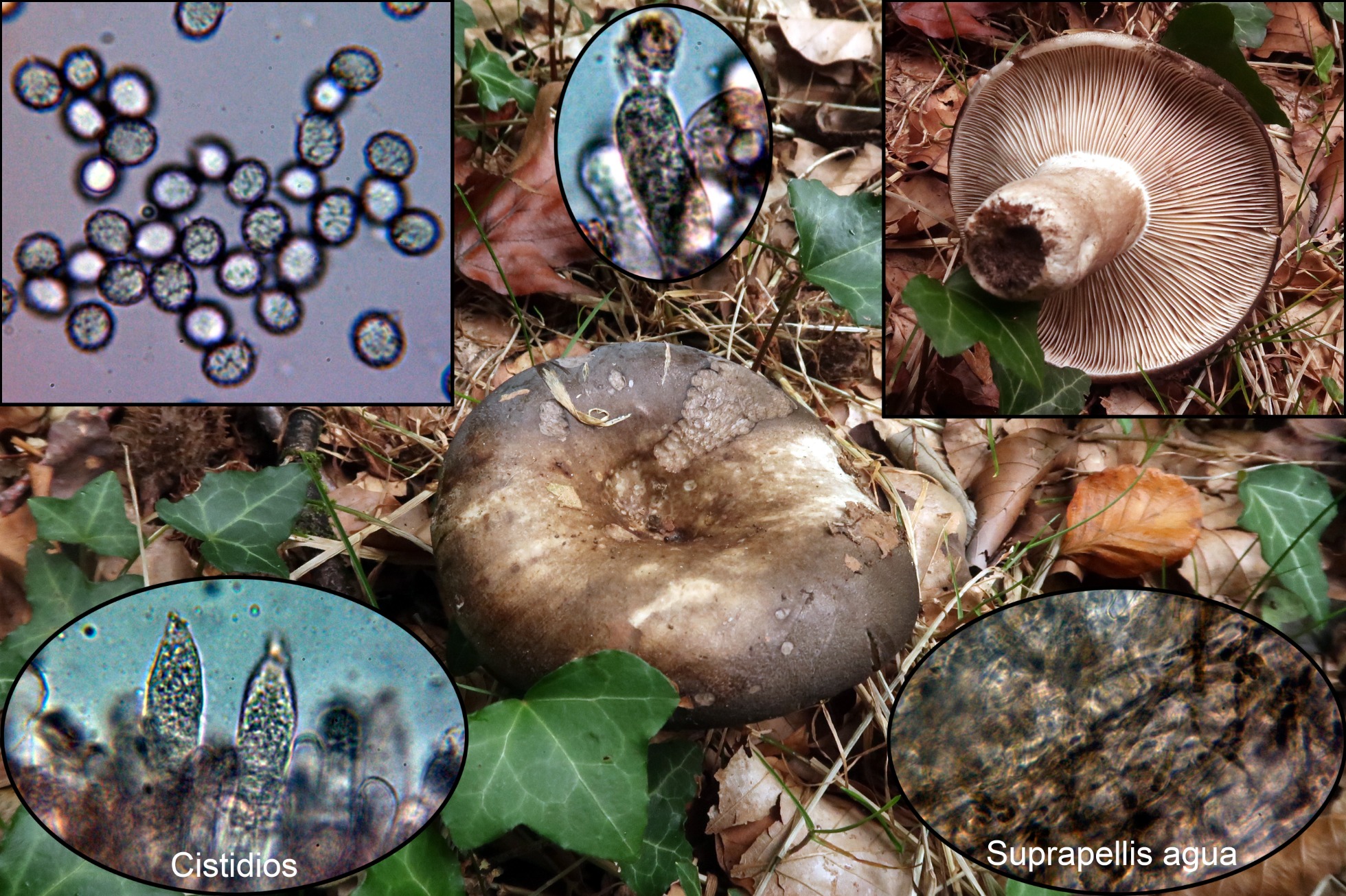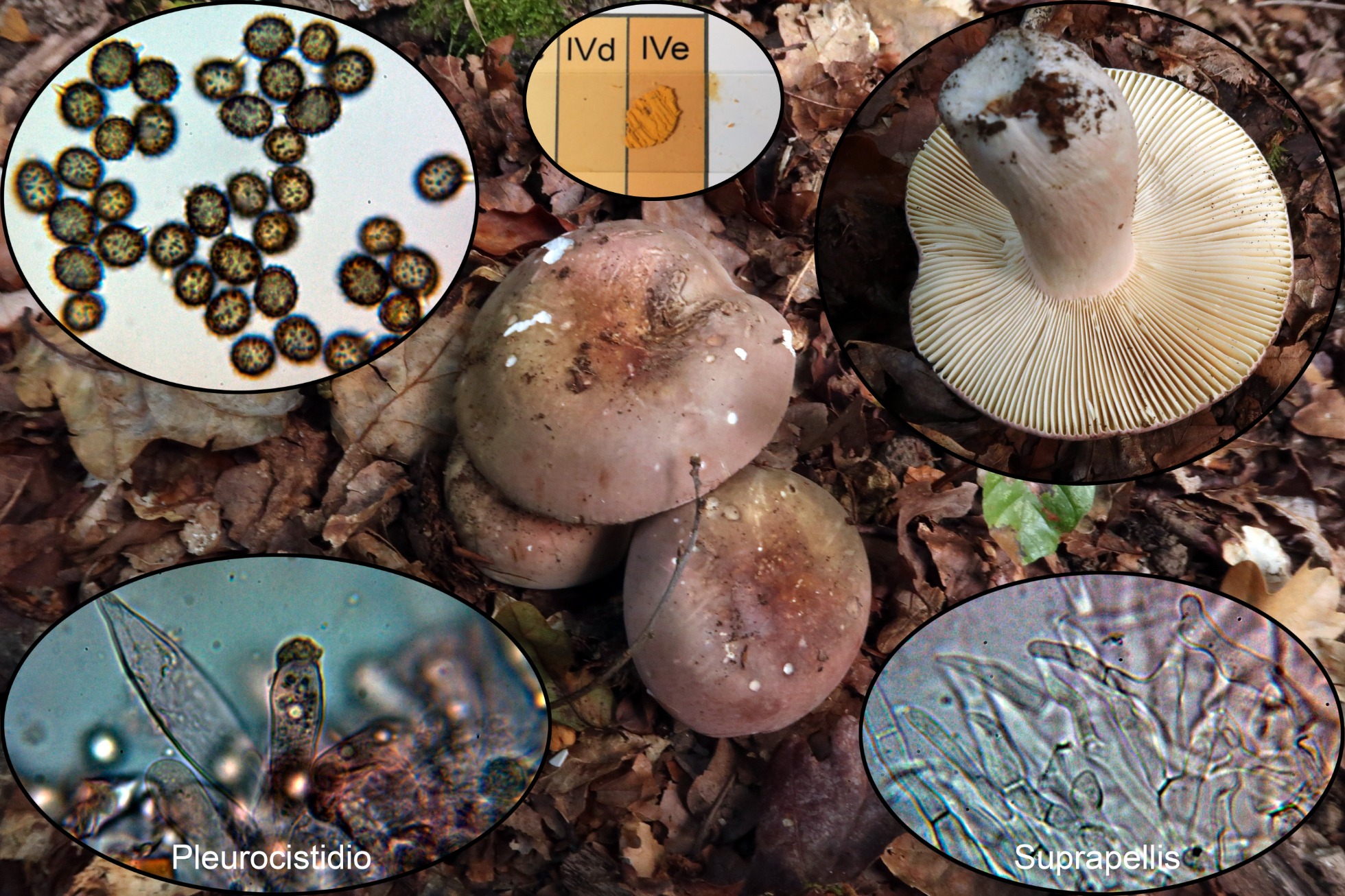 Estas medidas encajan con las descritas en la Claves para la Russula anthracina con unas medidas de 7.5-10 x 6-8 μm., aunque en las mismas claves se indica la dificultad de separarla de la Russula atramentosa con sabor dulce suave, precisando de nuevos estudios. La Russula del presente estudio y atendiendo al criterio de las mismas claves dado el color rosado de las láminas así como su sabor que no me pareció picante en ningún momento entraría dentro de lo que se podría considerar como Russula anthracina var. carneifolia, aunque ante la diversidad de opiniones en función del autor consultado, prefiero dejarla como Russula anthracina "sensu lato". Hay que ver lo complicadas que son.