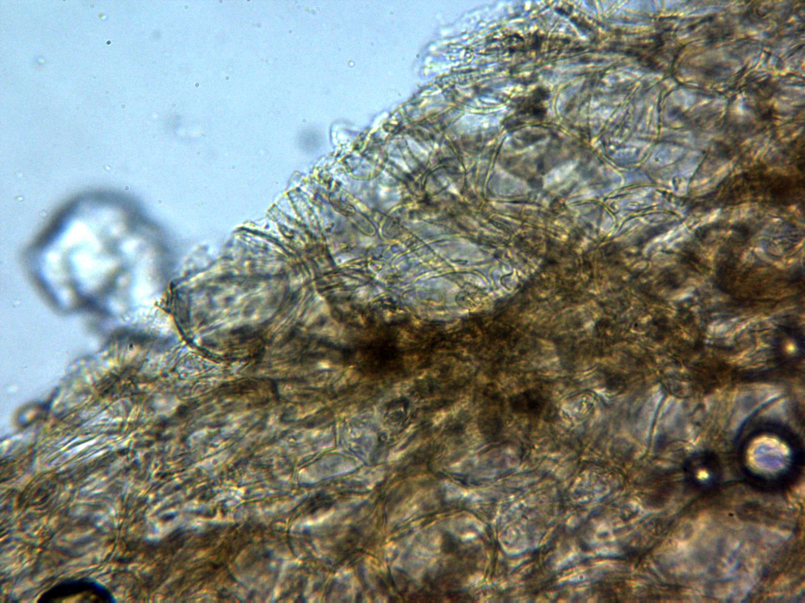 Cutícula filamentosa compuesta por hifas con incrustaciones y pigmentadas: