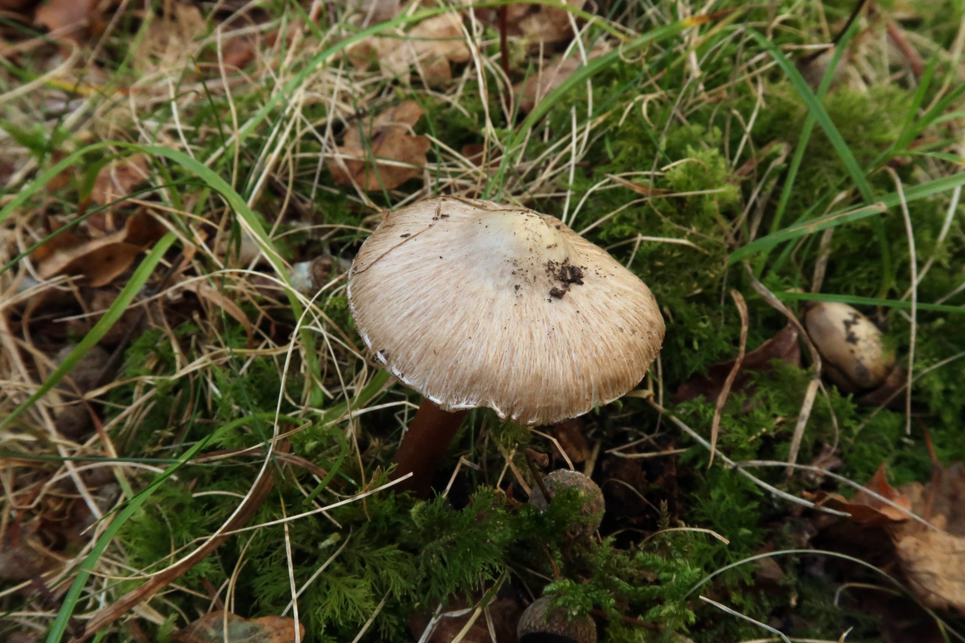 Sombrero con fibrillas radiales más oscuras sobre fondo blanco pardo: