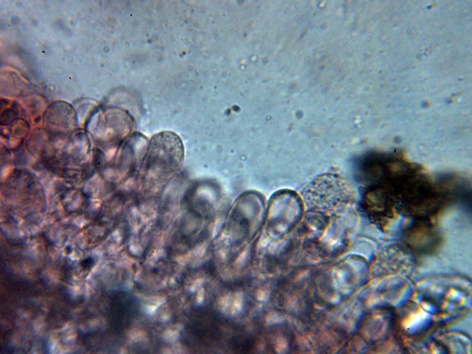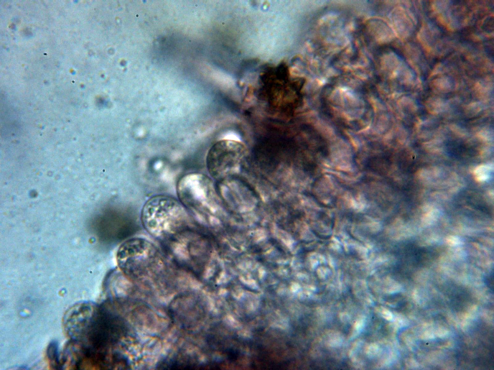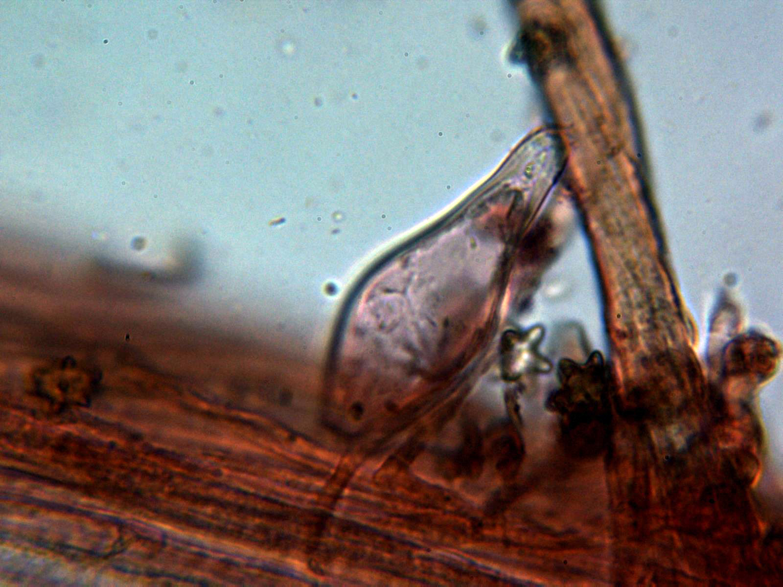 Queilocistidios abundantes , ventrudos y con cristales en el ápice: