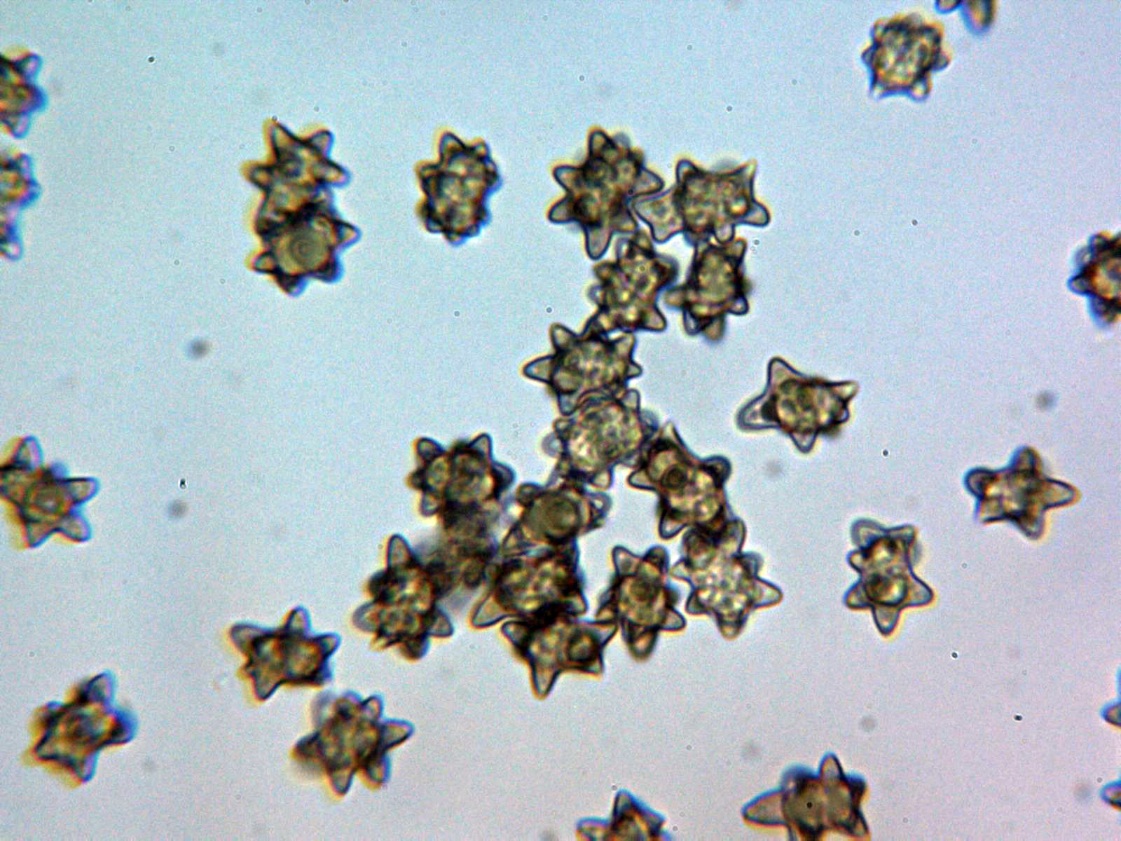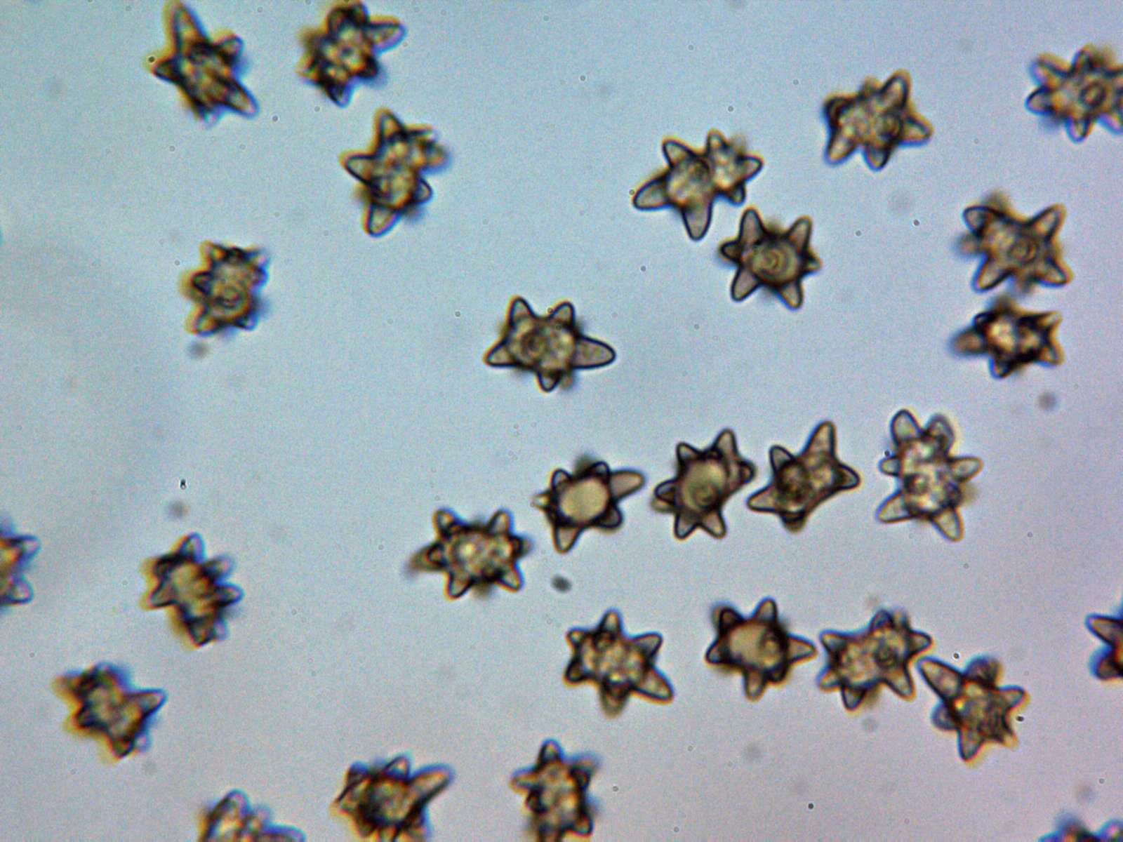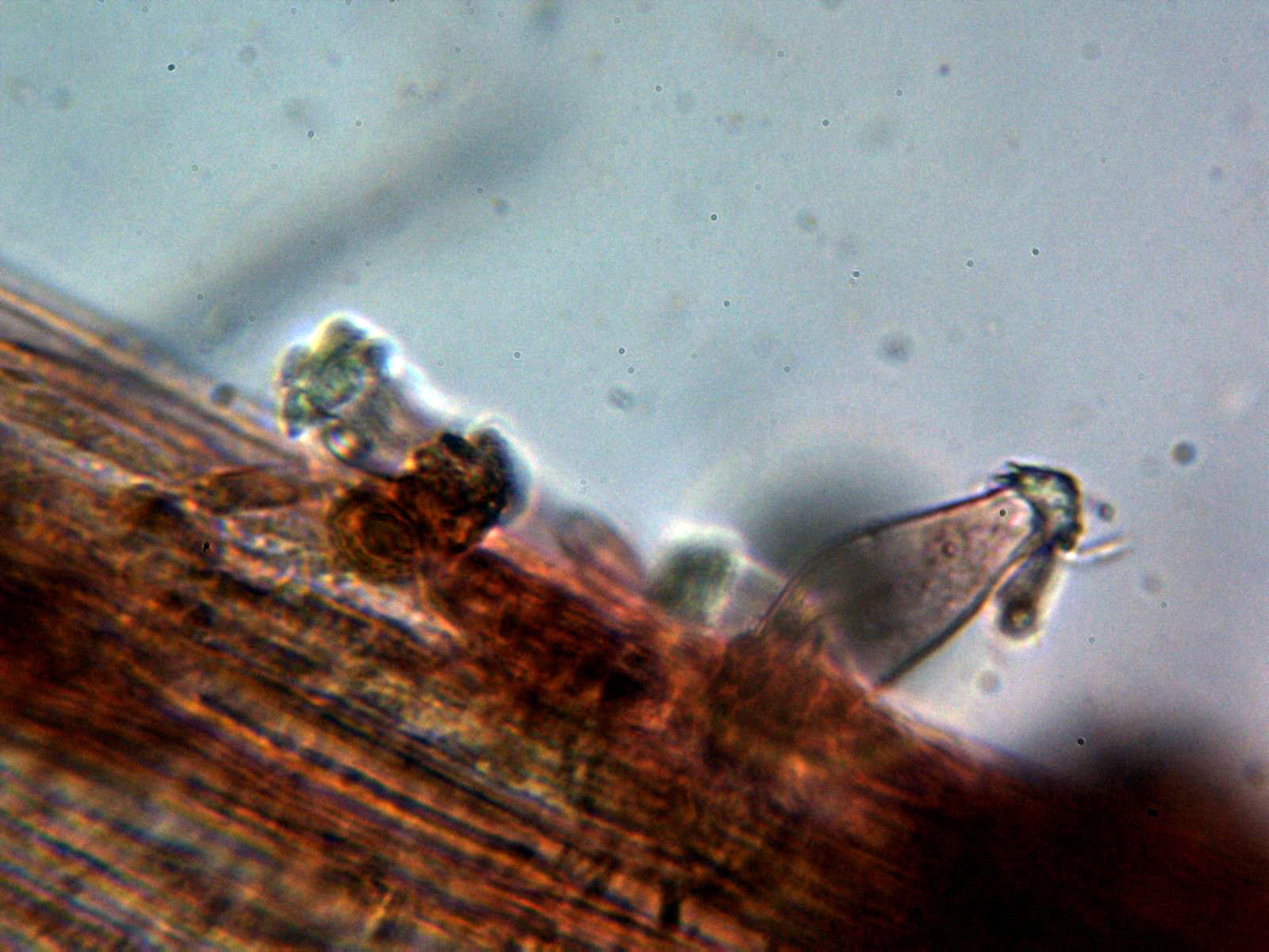 Y sus peculiares esporas en agua de grifo: