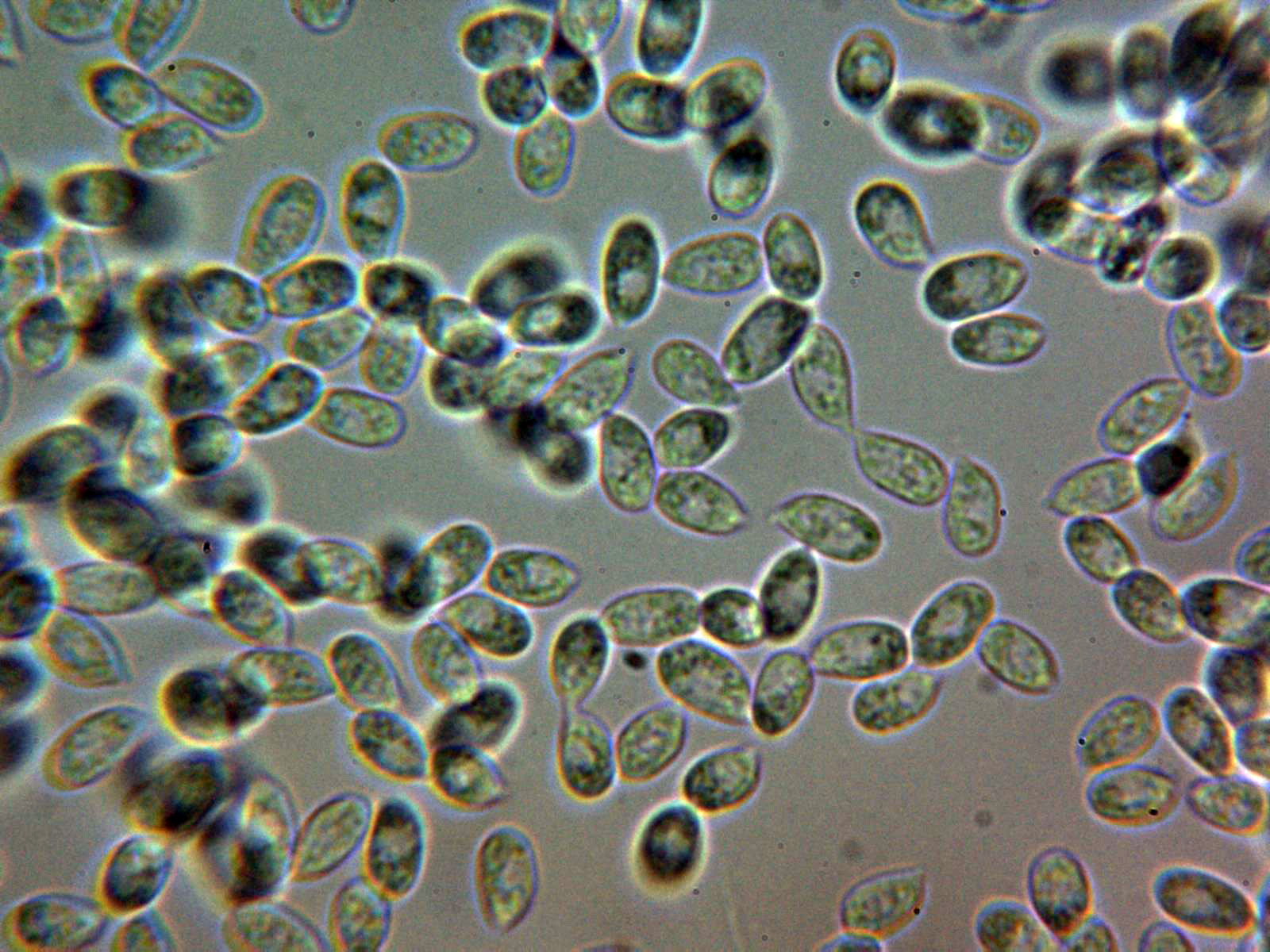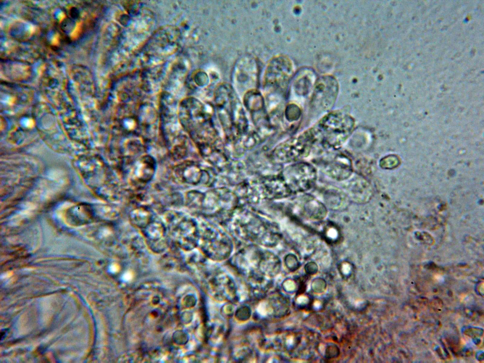 Y las esporas en Reactivo de Melzer con reacción amiloide: