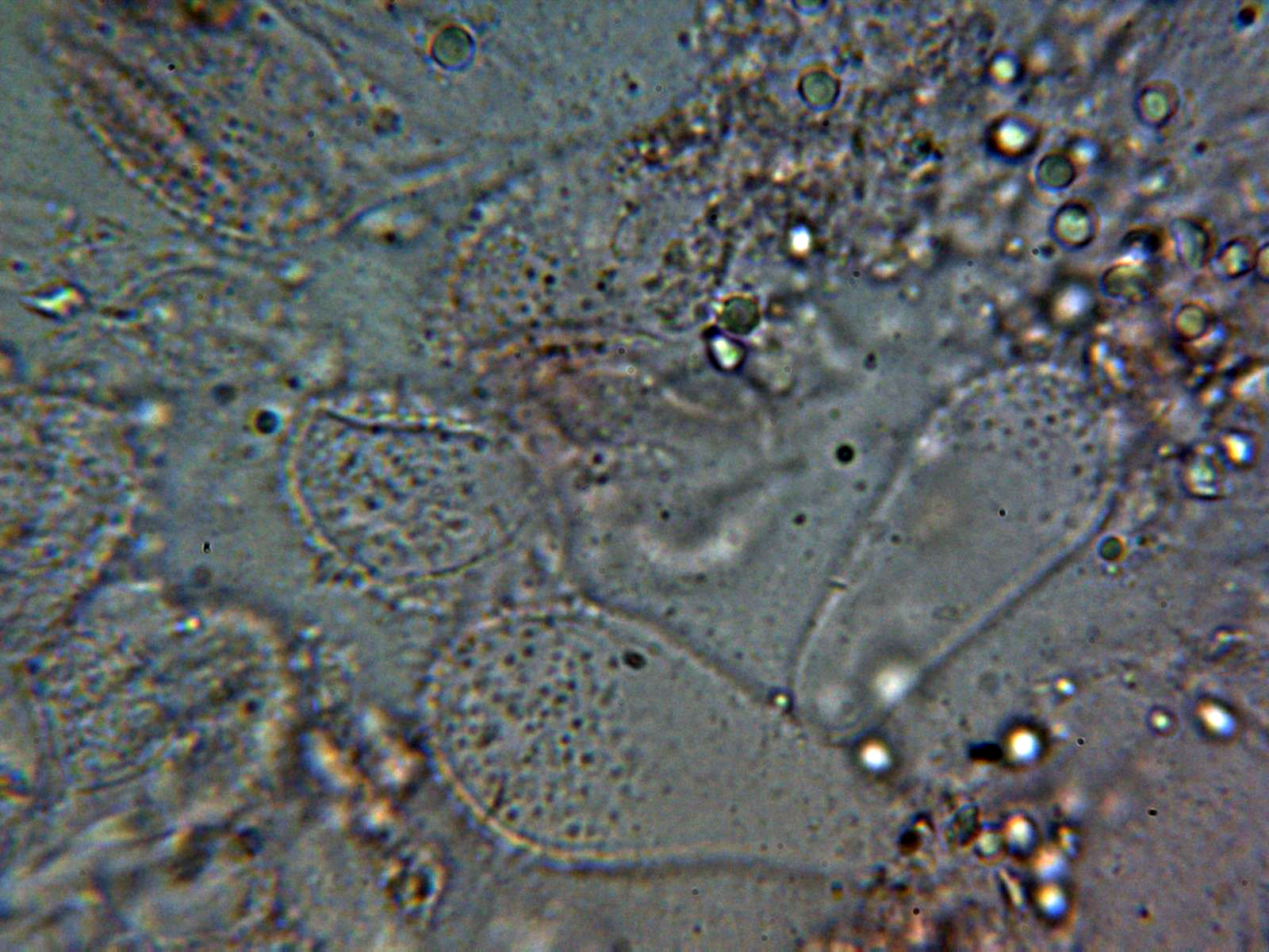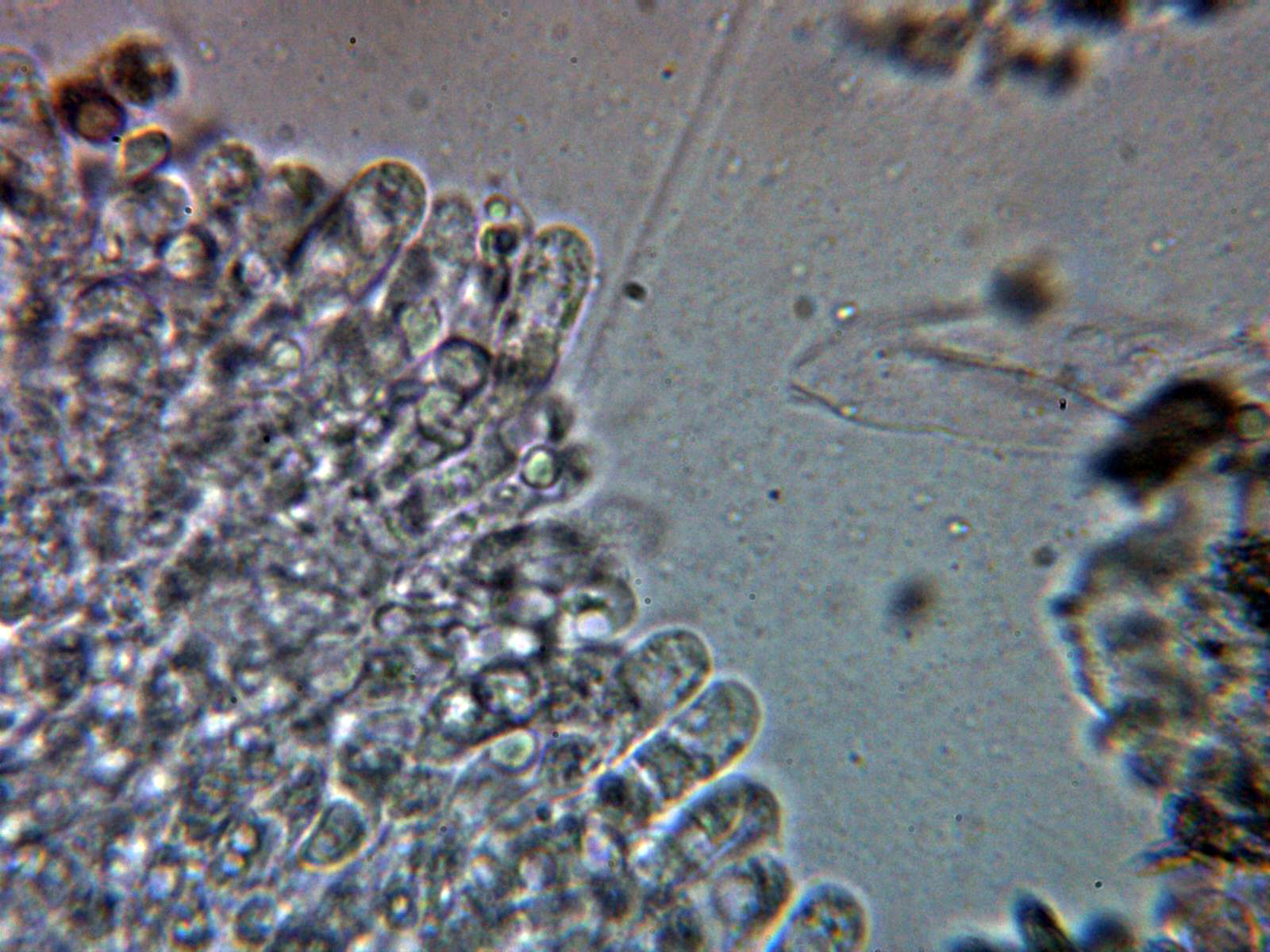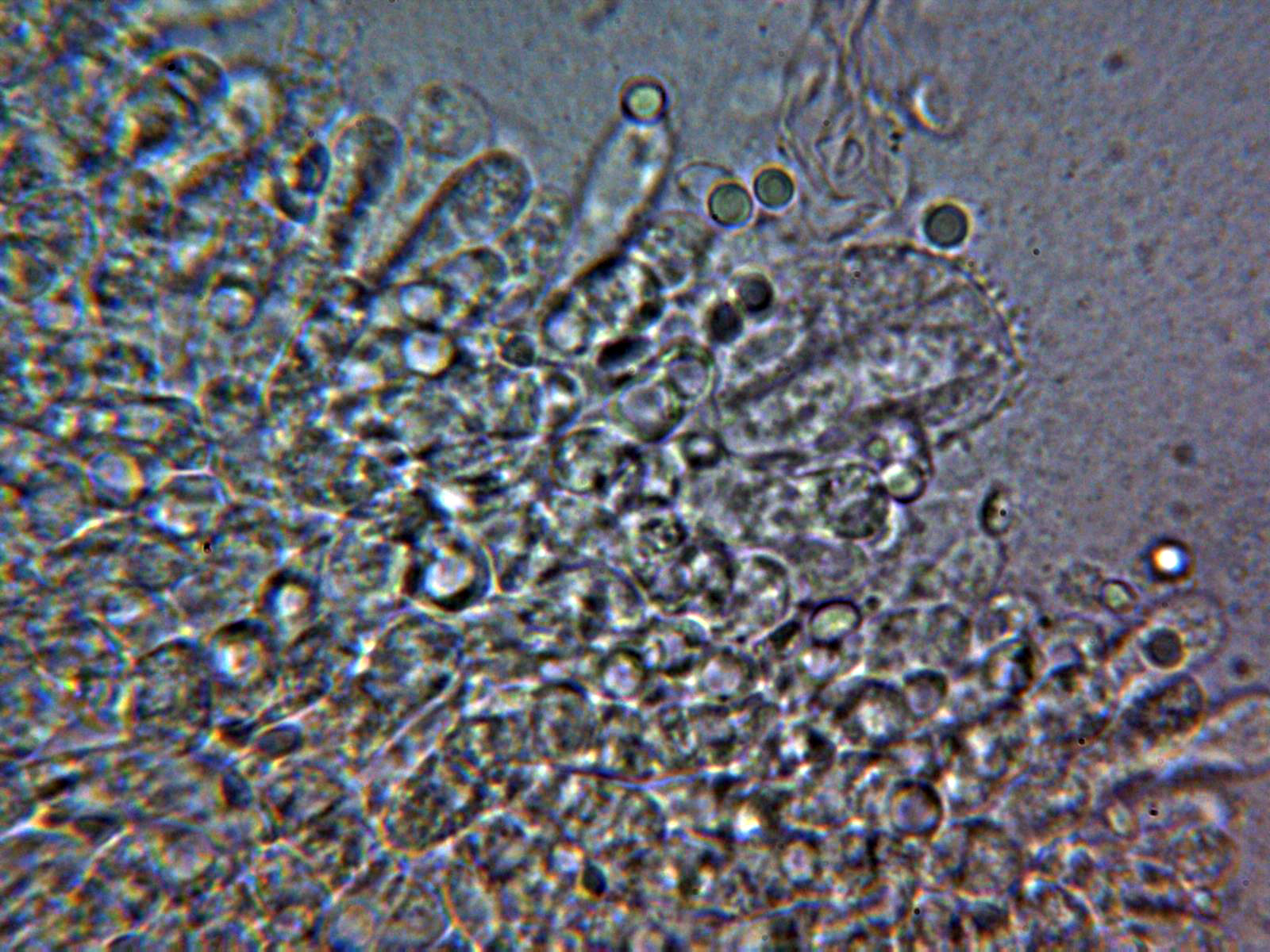 Queilocistidios globosos a piriformes con abundantes excrecencias muy cortas: