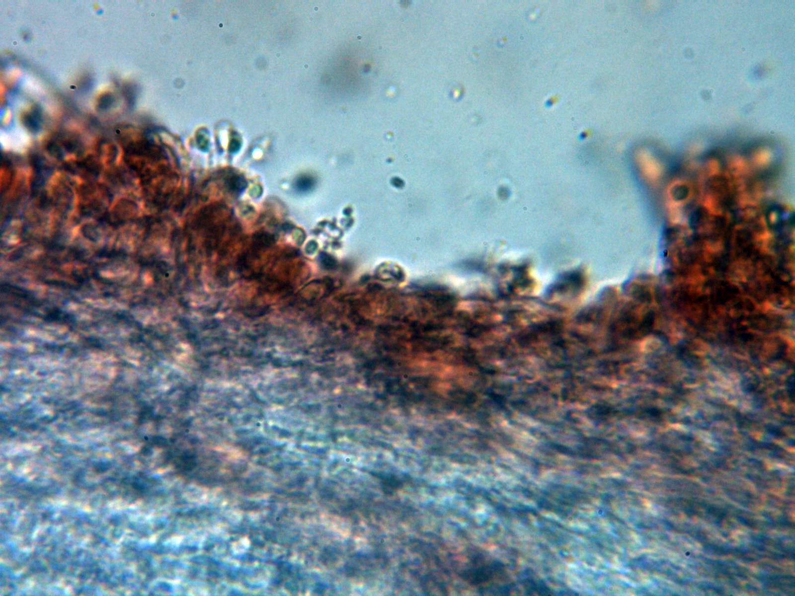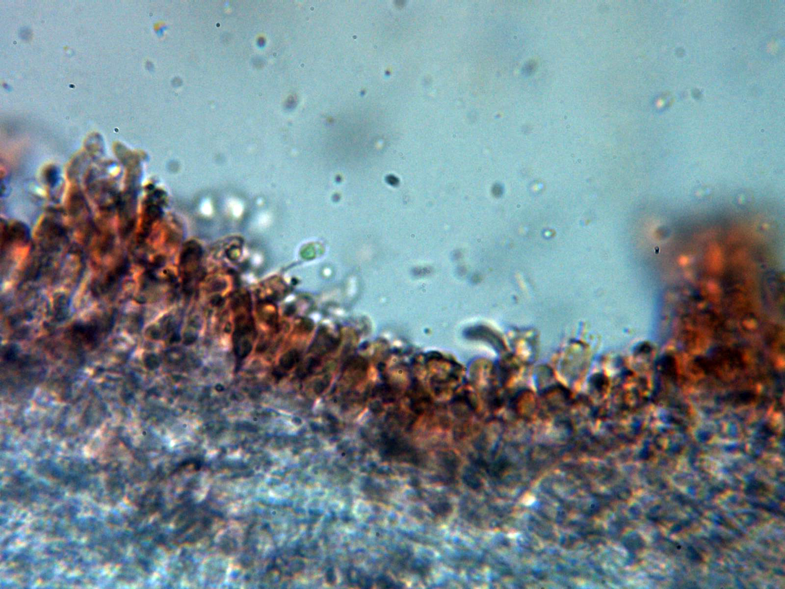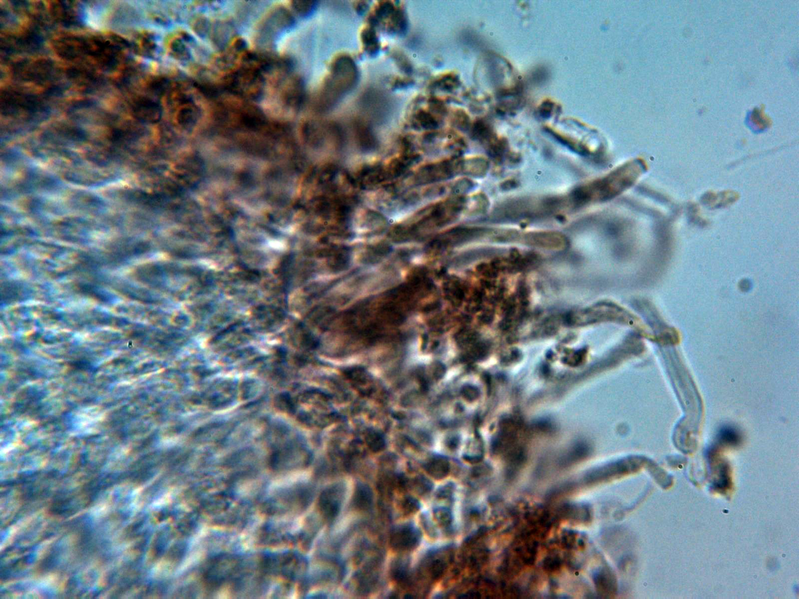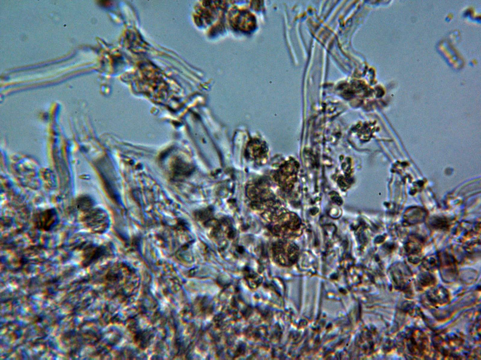 Himenio a 1000 aumentos, sin cistidios diferenciados observados: