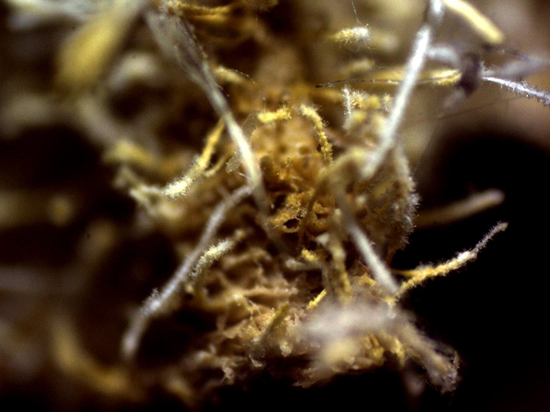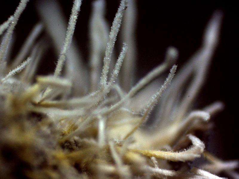 Synnemata de 1,9 a 4 mm. de alto por 0,12 a 0,23 mm. de ancho, de color blanco y prácticamente con toda su superficie repleta de hifas conidiógenas.