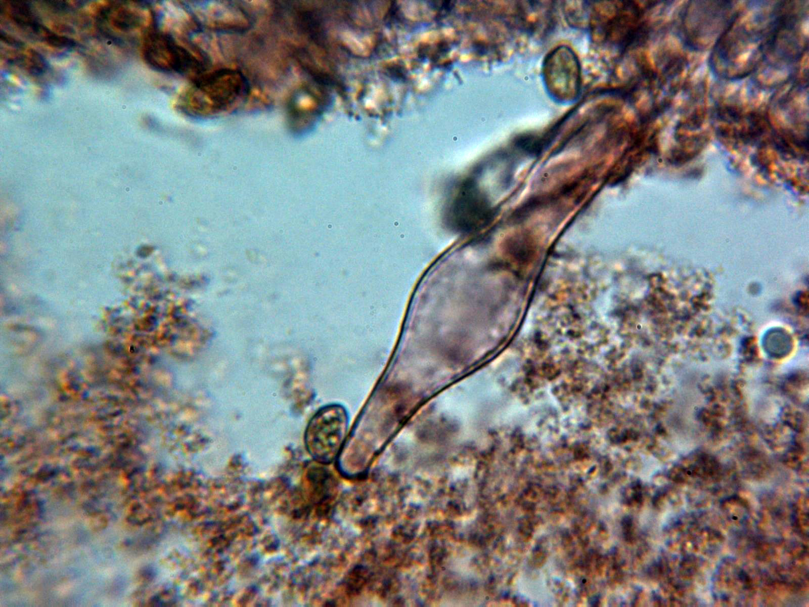 Caulocistidios observados solo en la parte alta del pie, a 1000 aumentos: