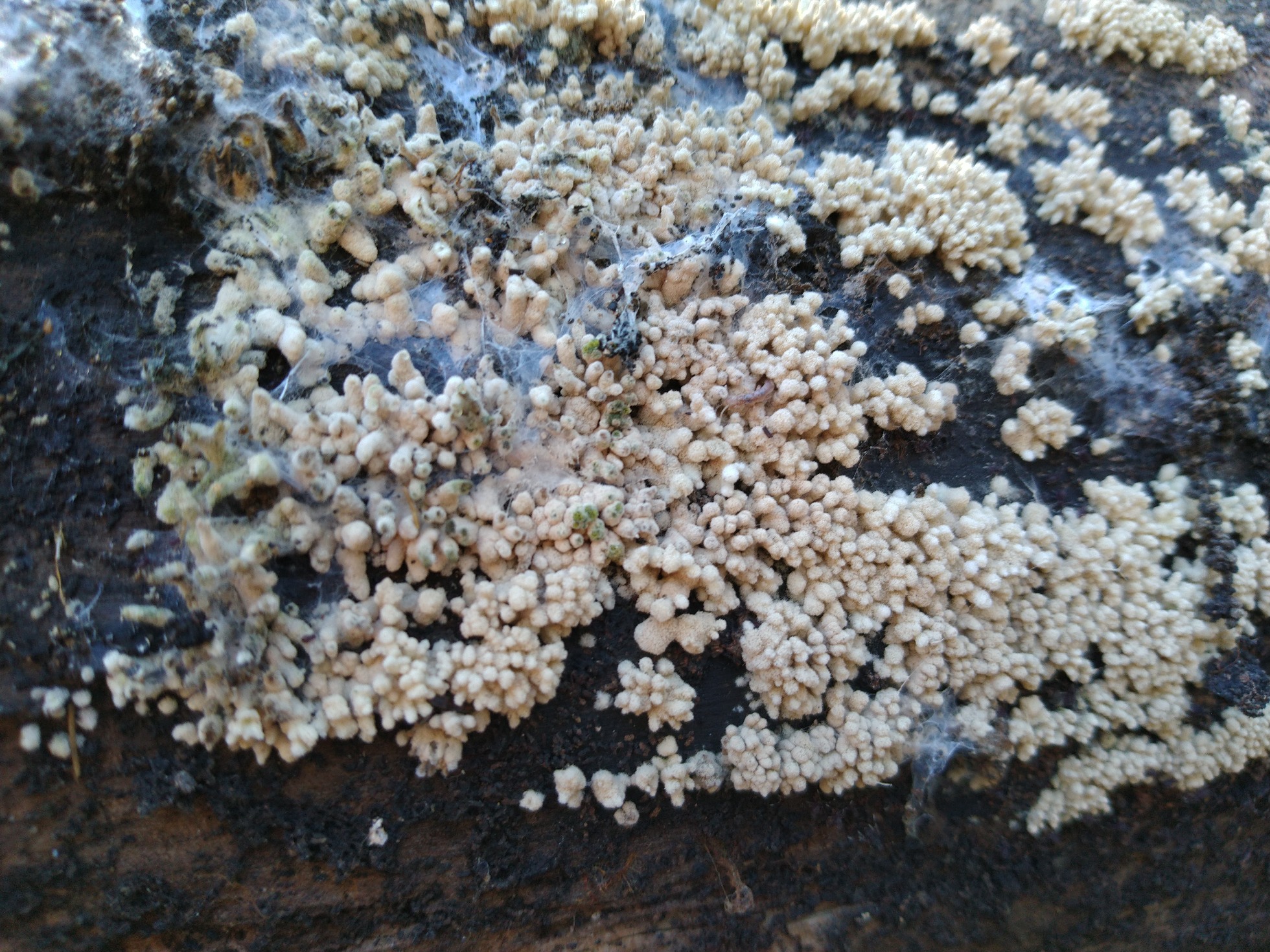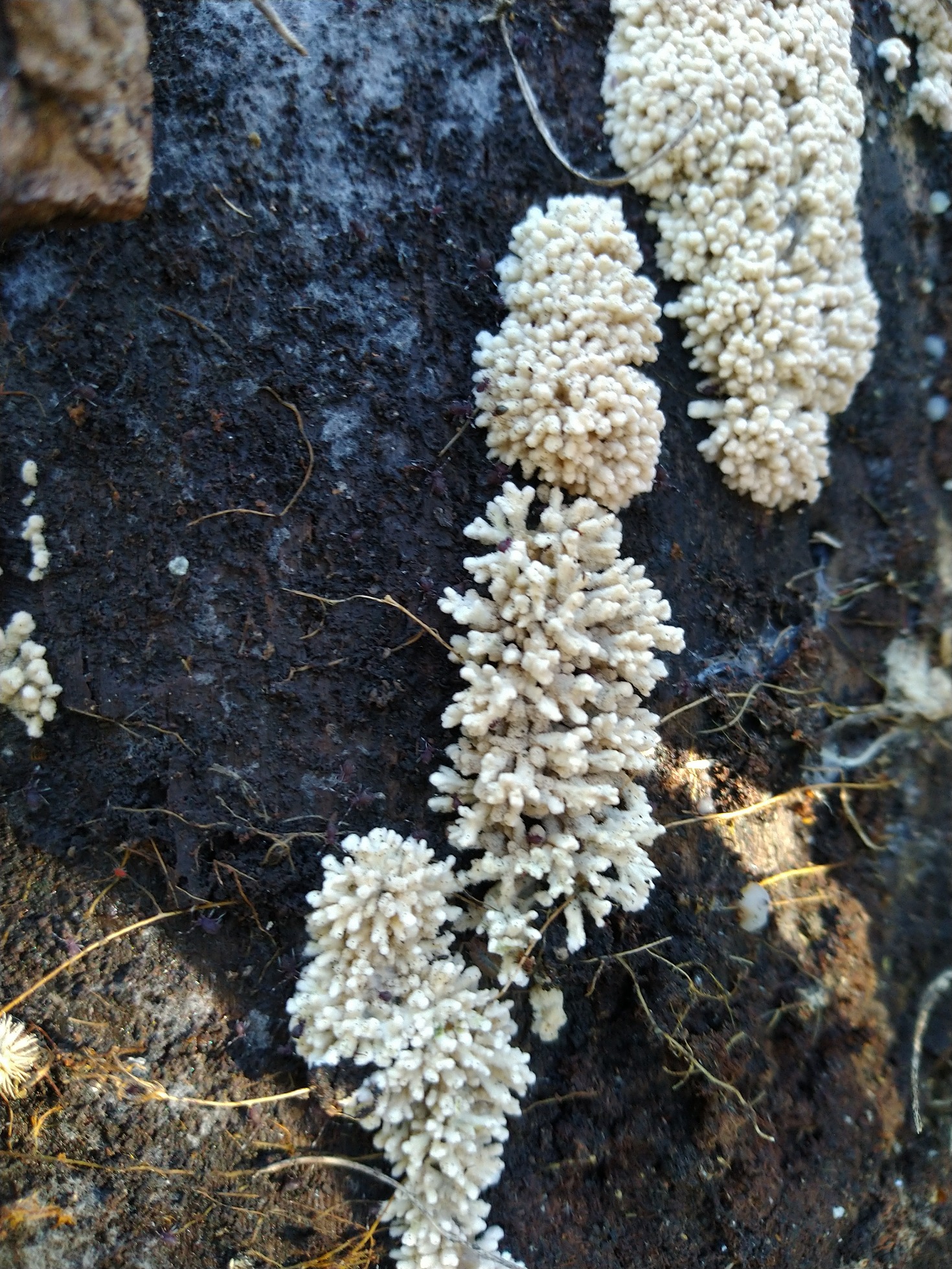 Por último, Daldinia concentrica y en la parte inferior de la imágen un buen grupo de Calcarisporium arbuscula