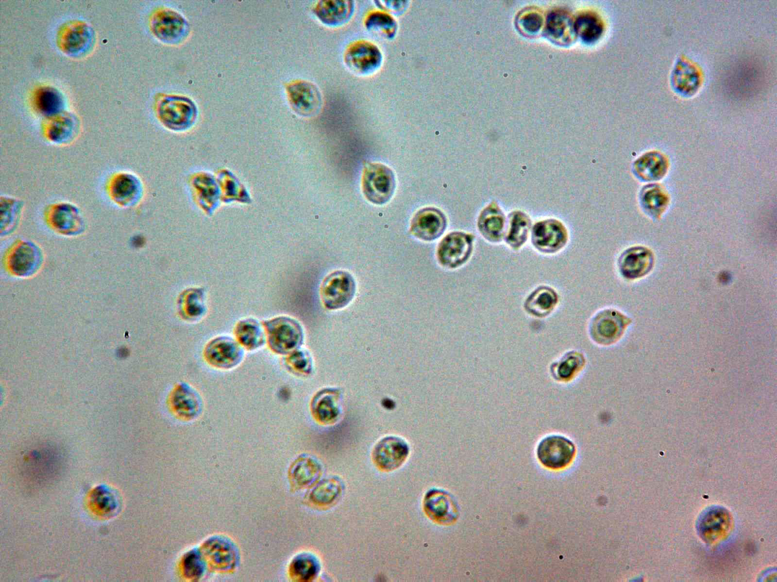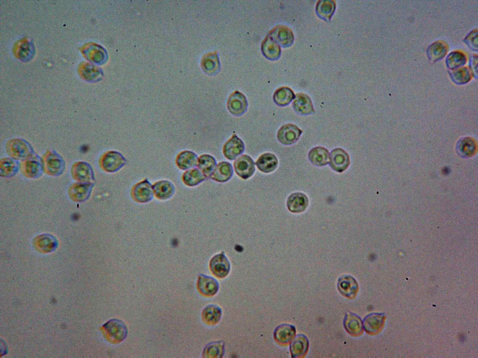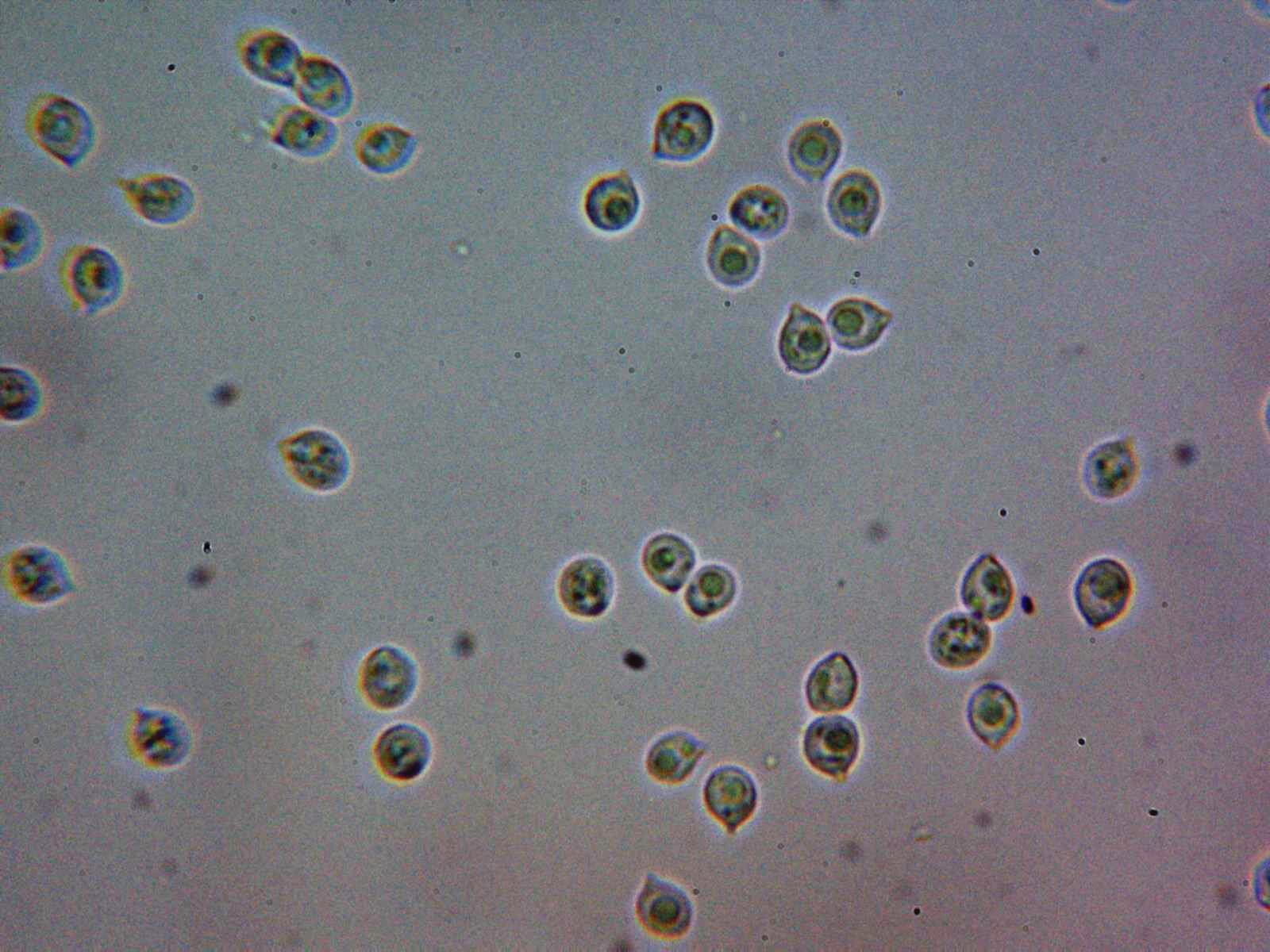 Un par de imágenes de las esporas en Rojo Congo diluido: