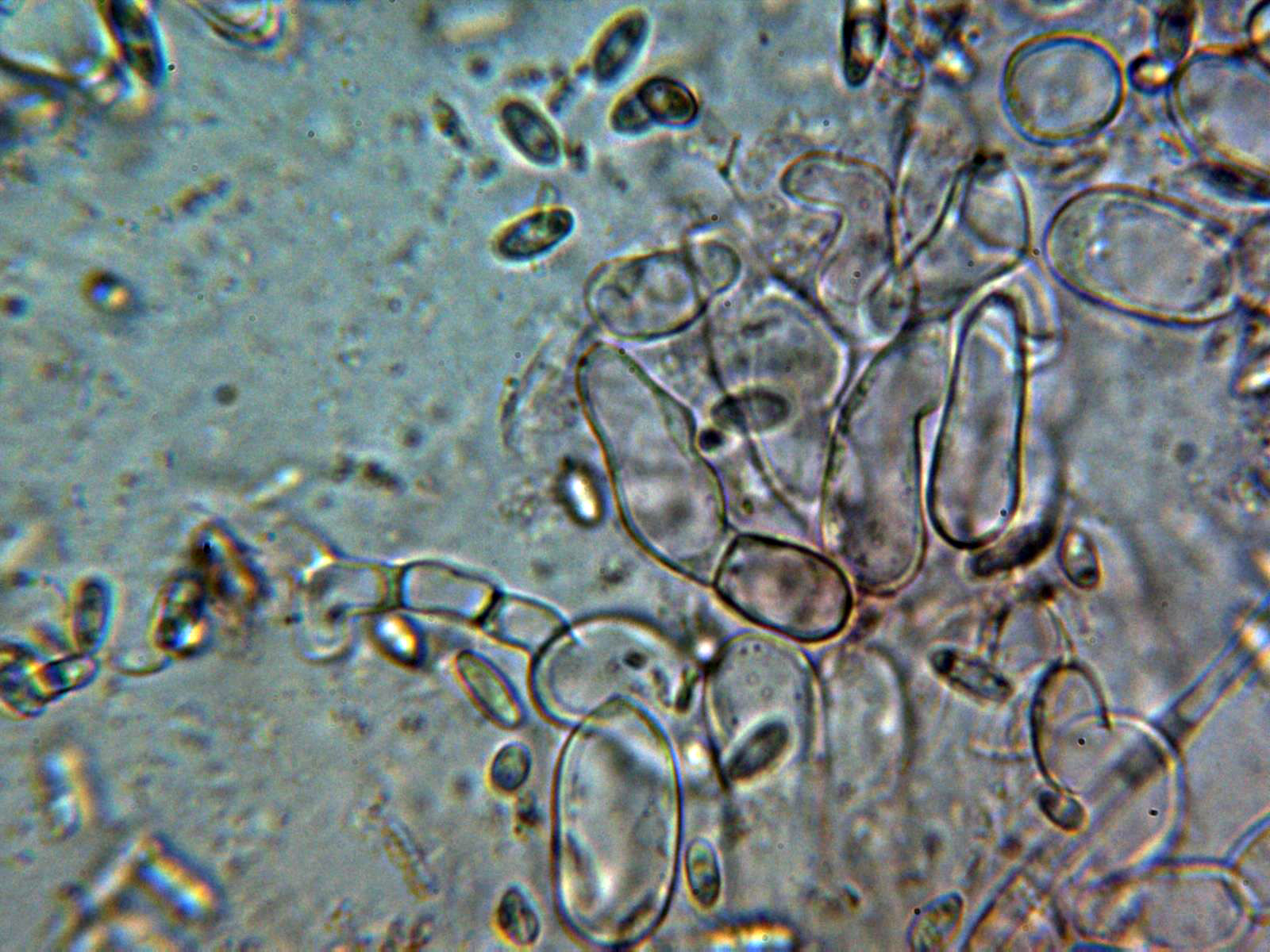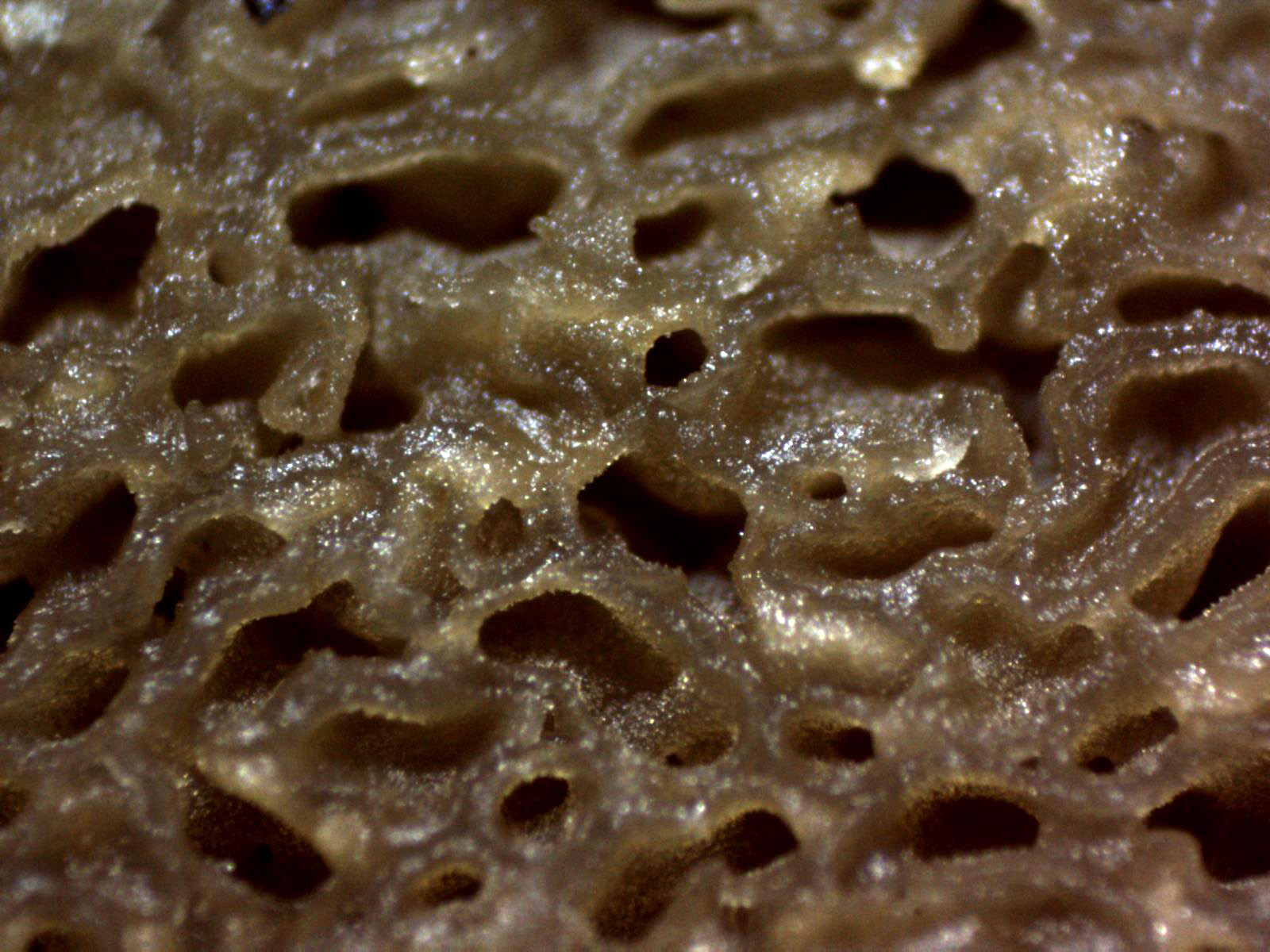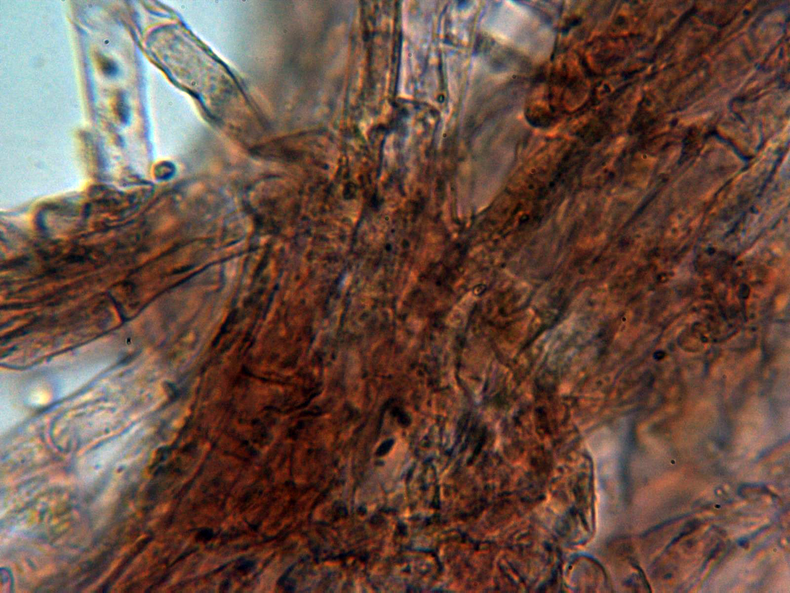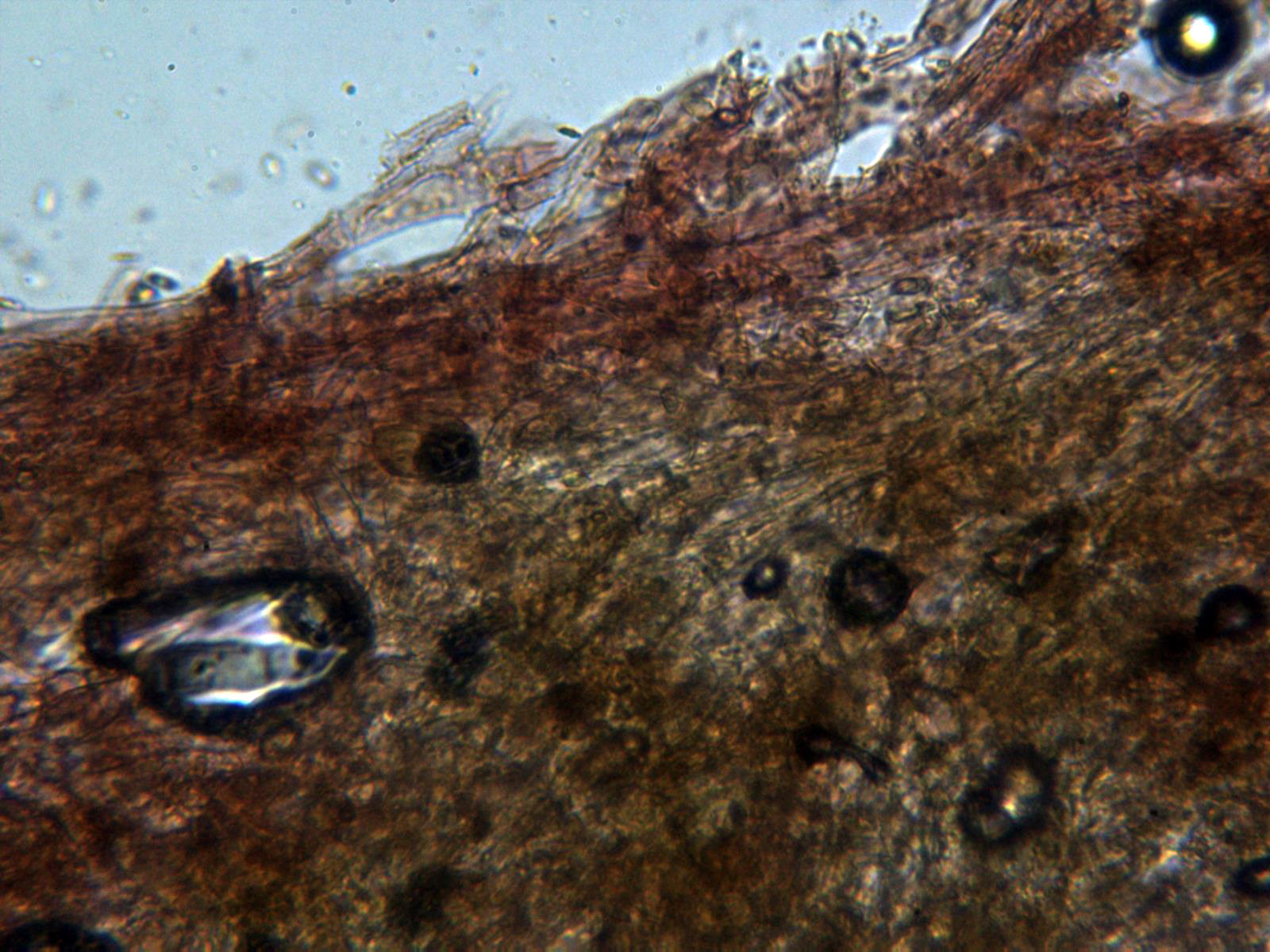 Parte interna del peridio donde en la parte baja ya se pueden observar basidios: