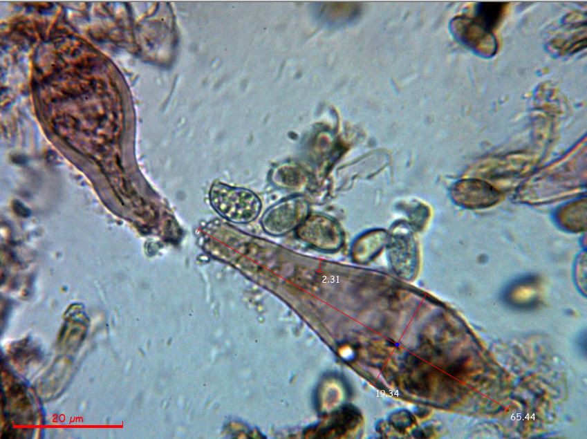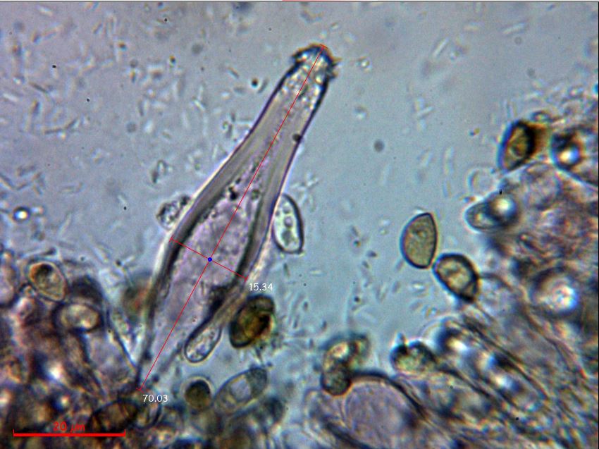 Un pleurocistidio con sus medidas:
