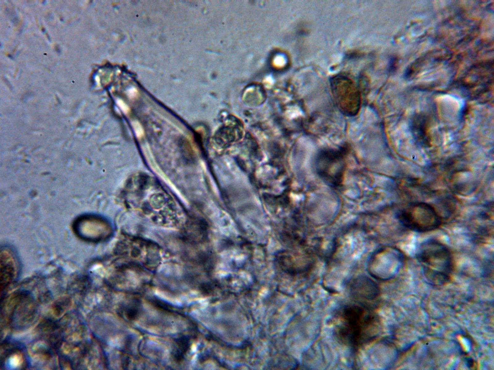 Caulocistidios de la parte media del pie a 400 aumentos: