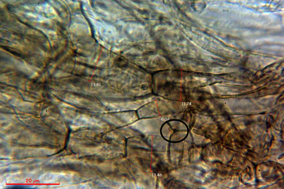 Las medidas en anchura de las hifas, totalmente acordes con la anchura que se atribuye al Inocybe splendens en "Les Champignons de Suisse" de entre 6 y 14 micras: