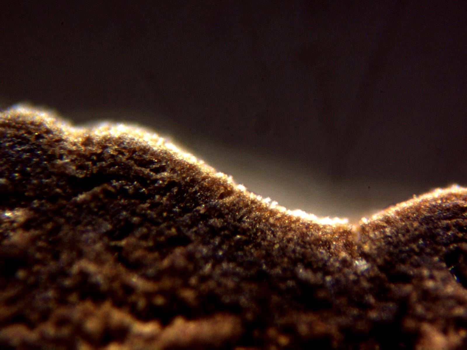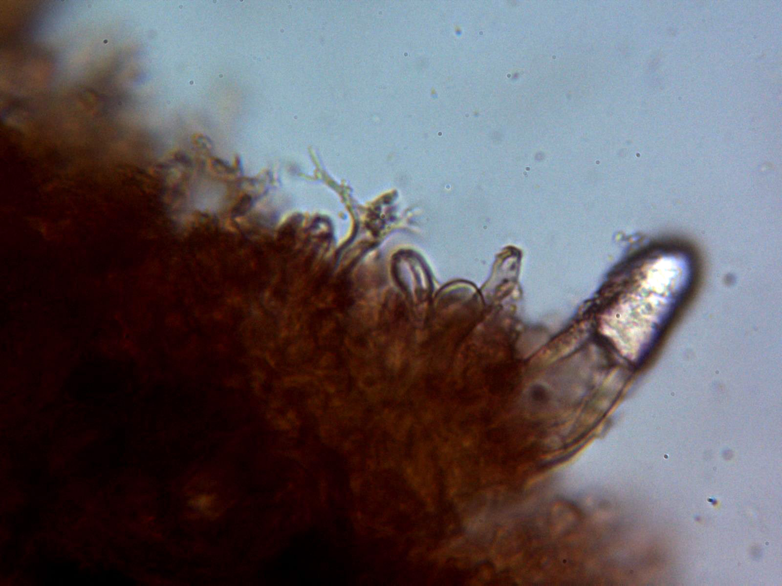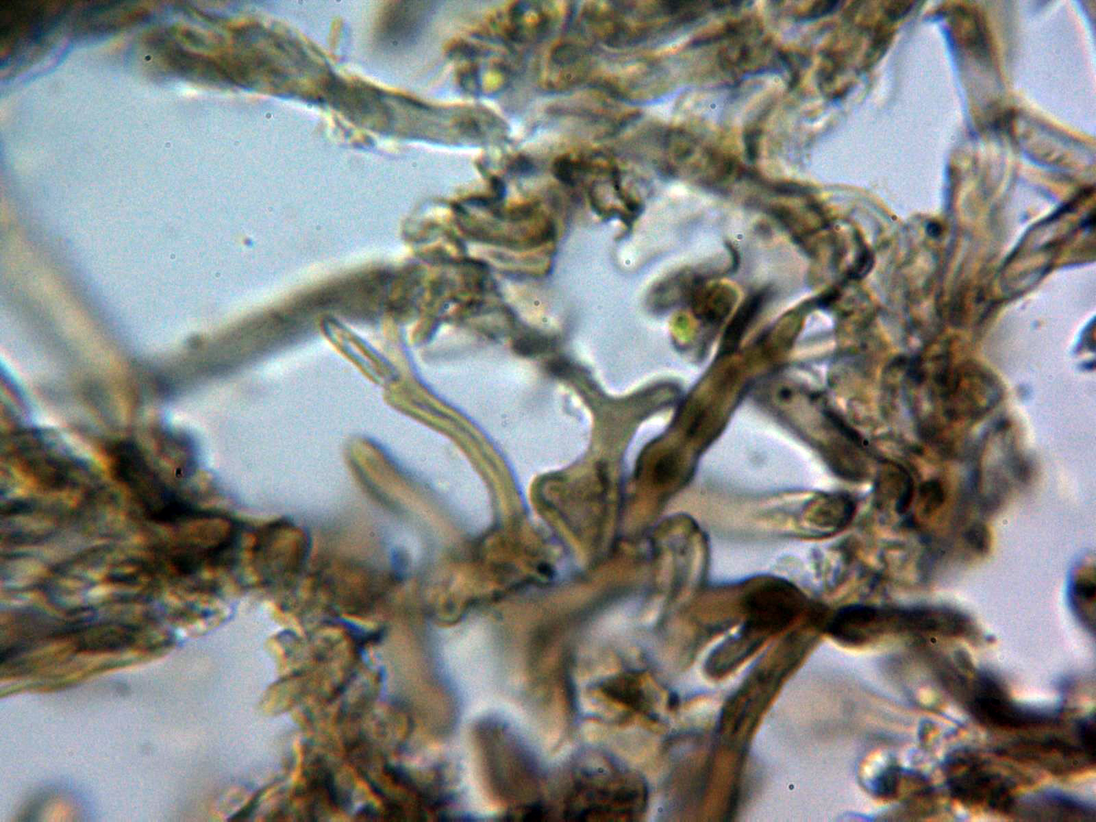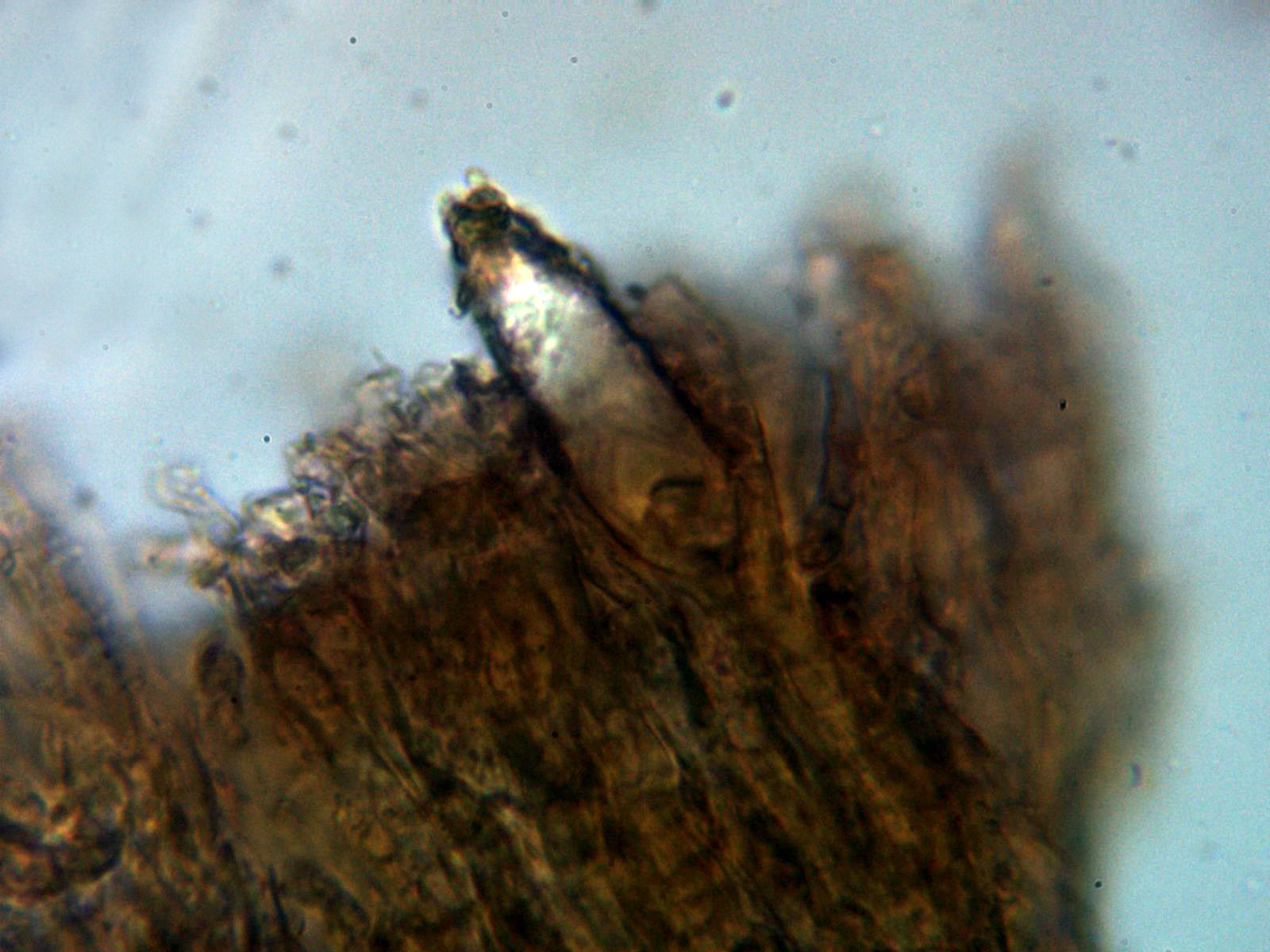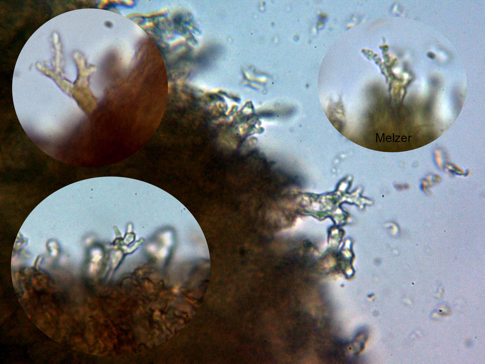 Himenio a 400 aumentos donde ya se aprecian bien los lamprocistidios: