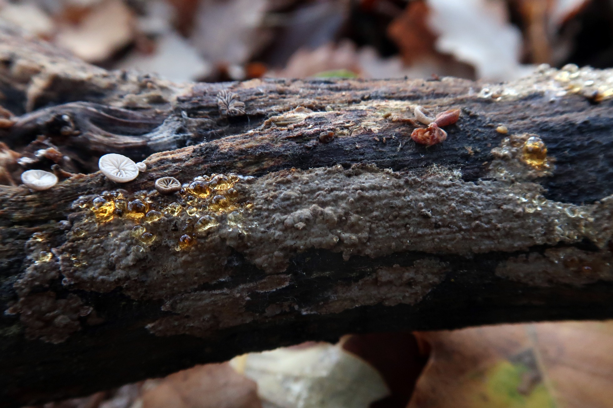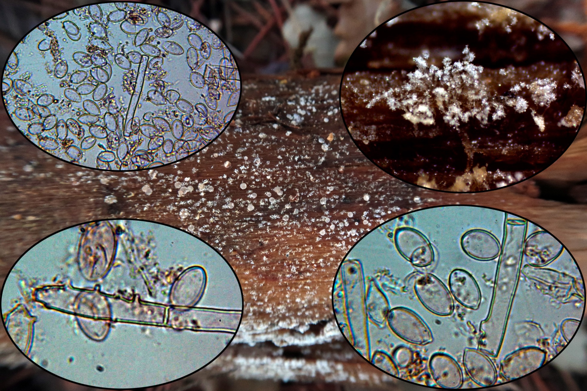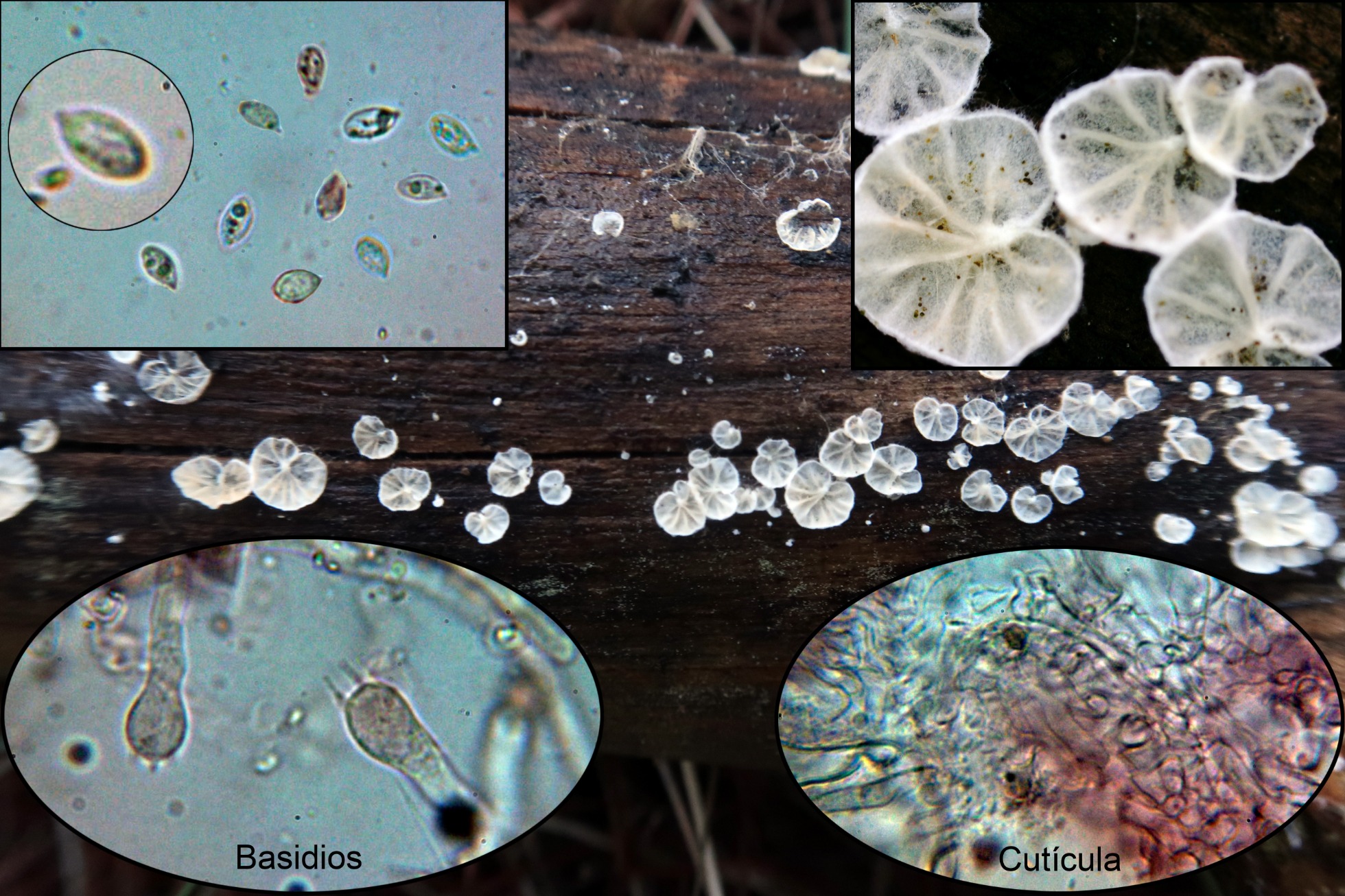 Compartiendo espacio con la muy abundante Hyaloscypha aureliella tenemos el anamorfo del Botryobasidium candicans, el Haplotrichum capitatum.