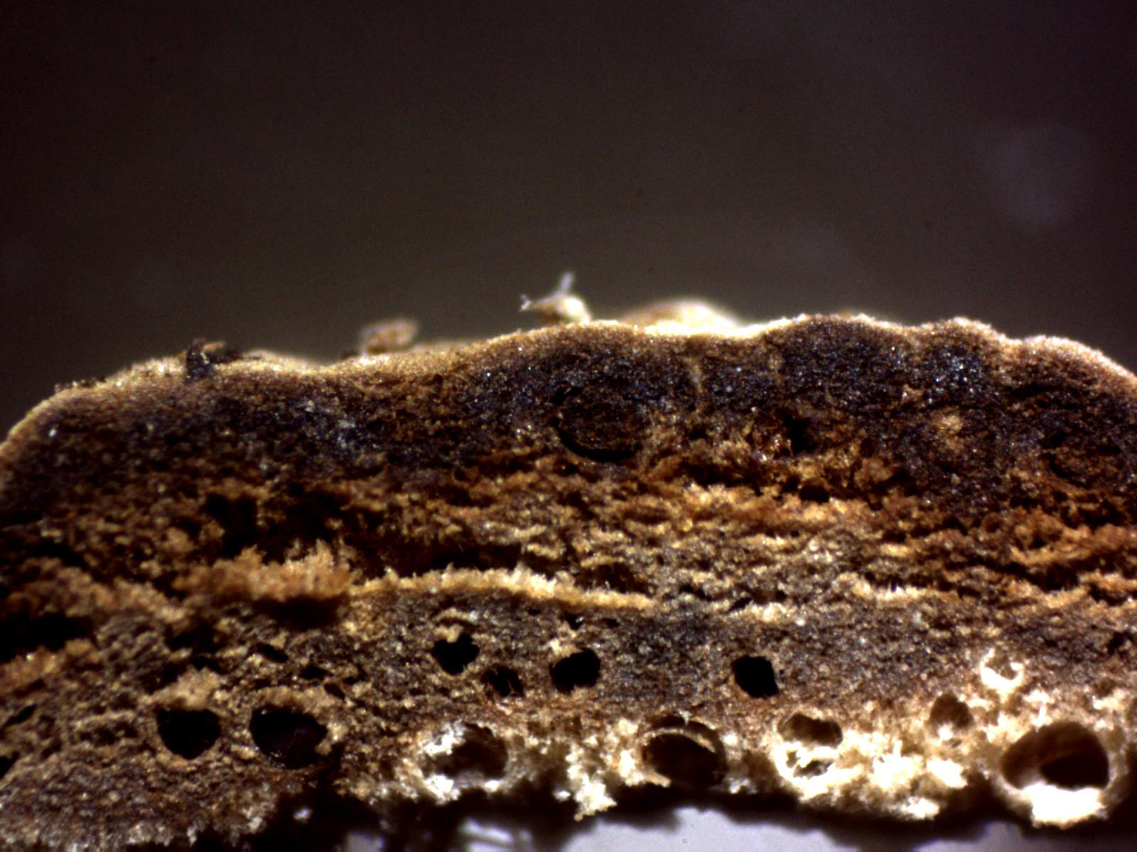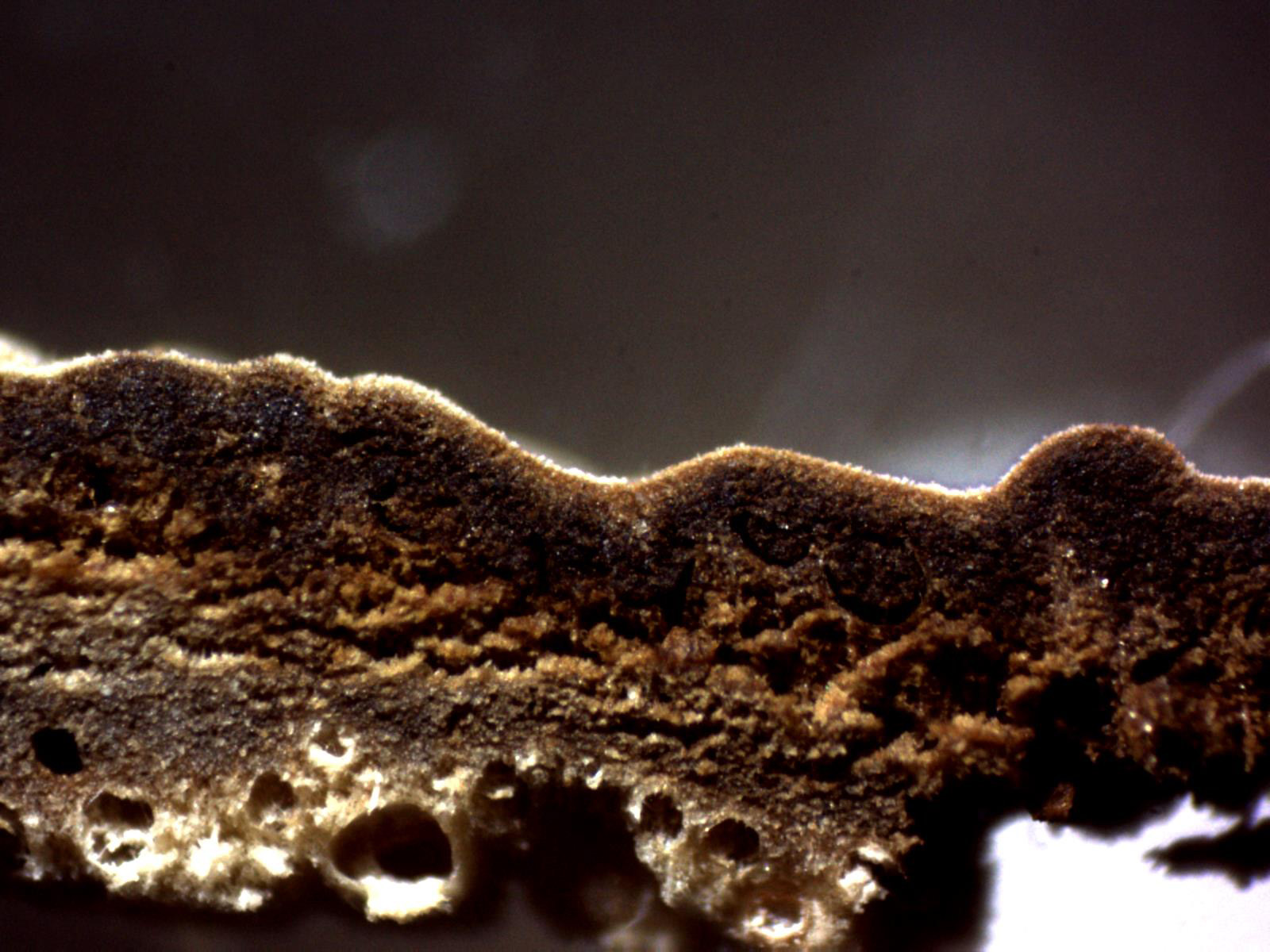 Sección del mismo a 40 aumentos donde se aprecia bien el poco grosor de la especie: