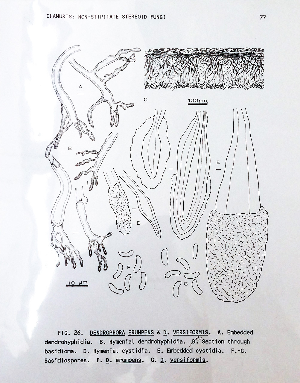 No hay mucha información en línea de la especie, añado una imágen de dibujo de Chamuris de Dendroprora versiformis = Peniophora versiformis: