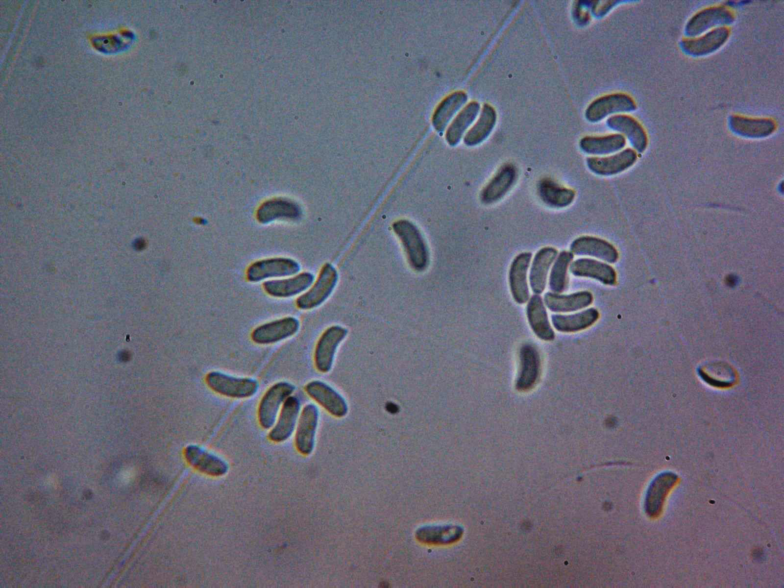 A pesar de su estado no tuve problemas para conseguir una buena cantidad de esporas por esporulación natural, estas esporas con unas medidas de:
