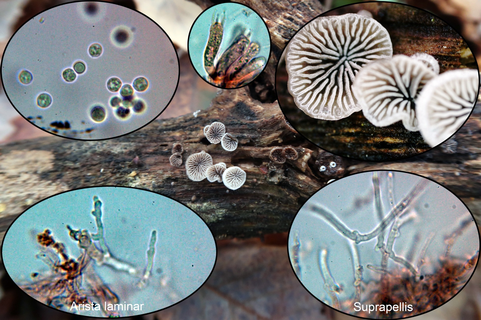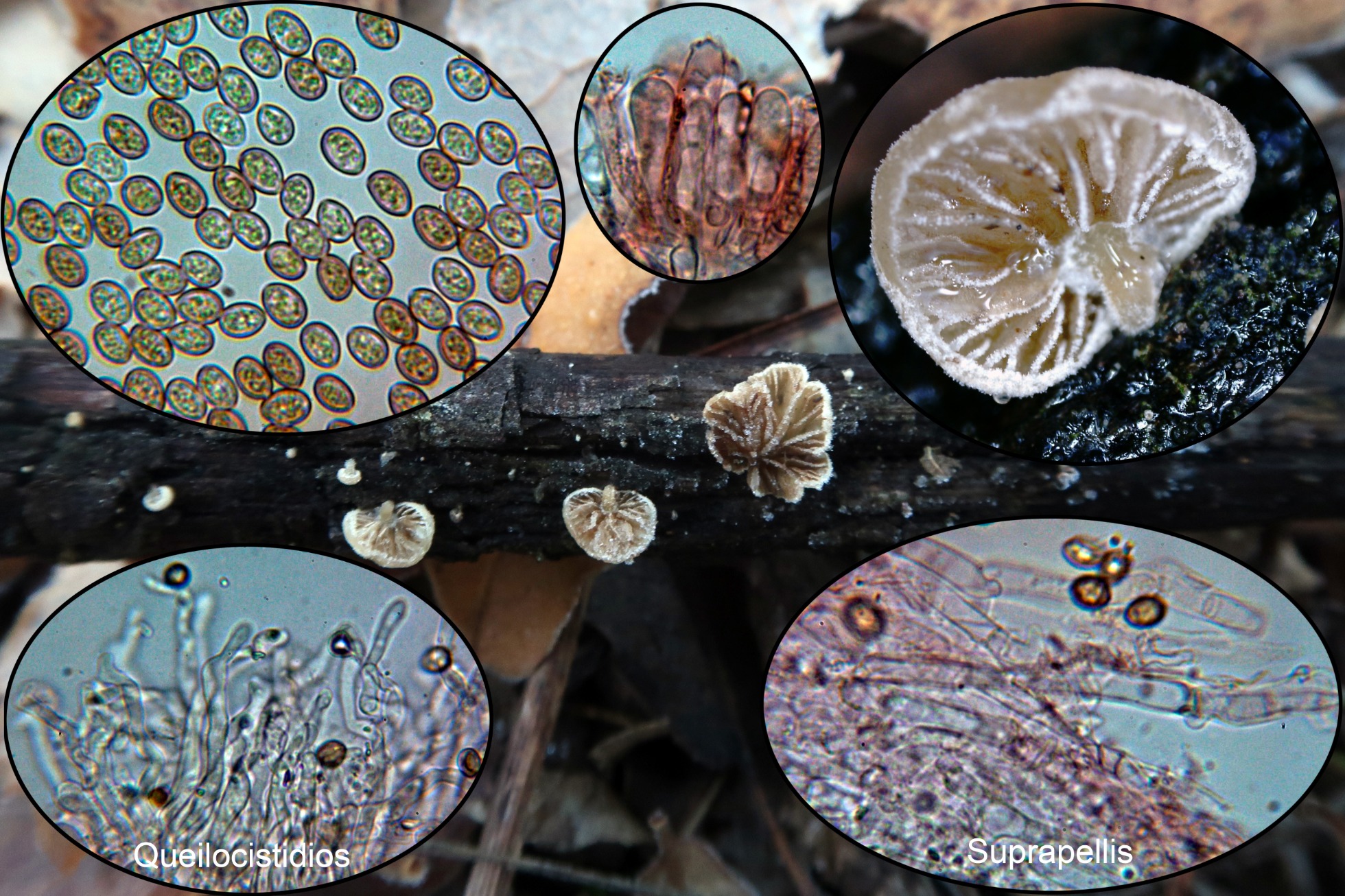 Un hongo Crepidoide que sus esporas con estrías lo delatan, aunque con un aspecto bastante especial tenemos el Clitopilus hobsonii