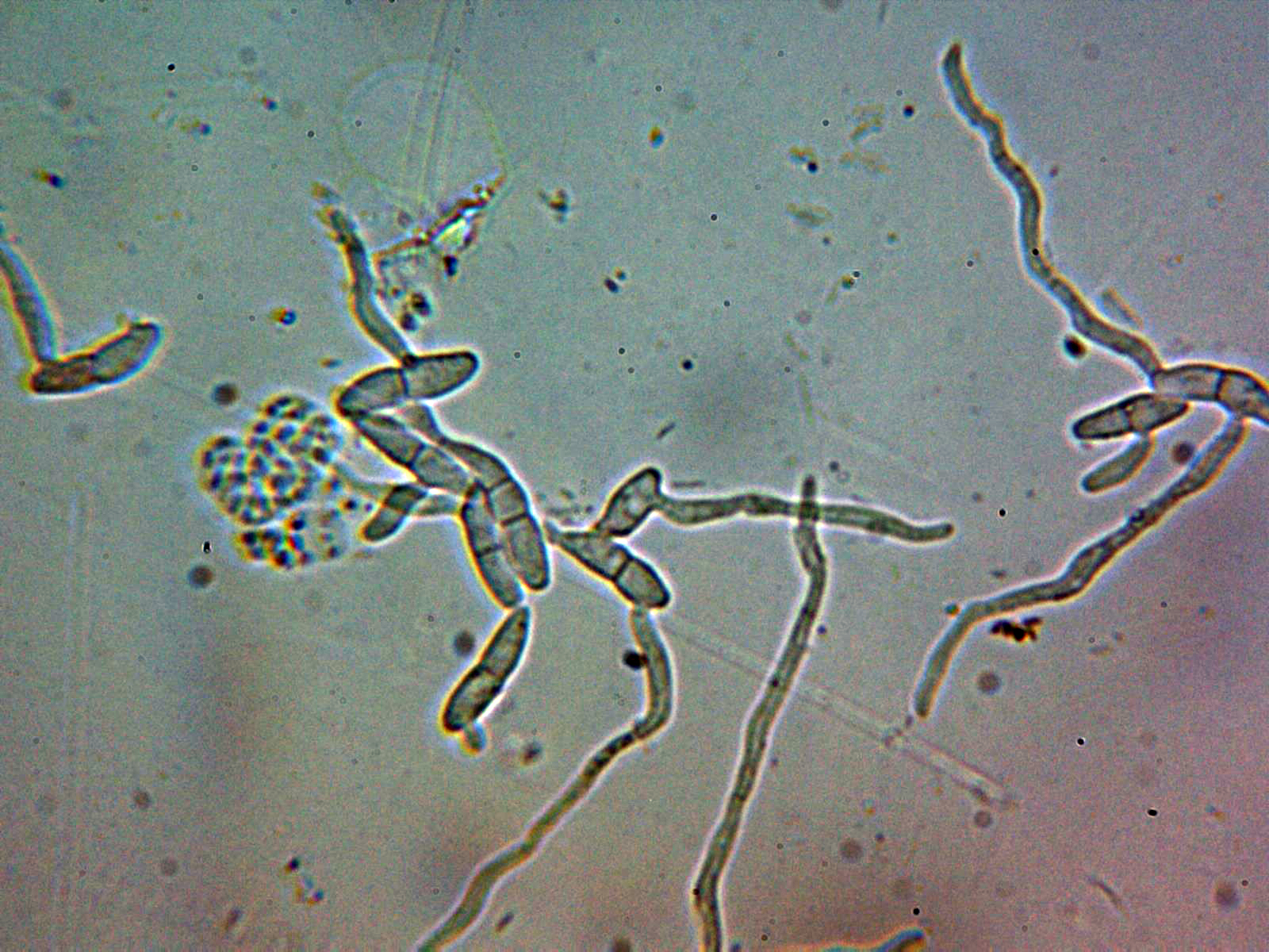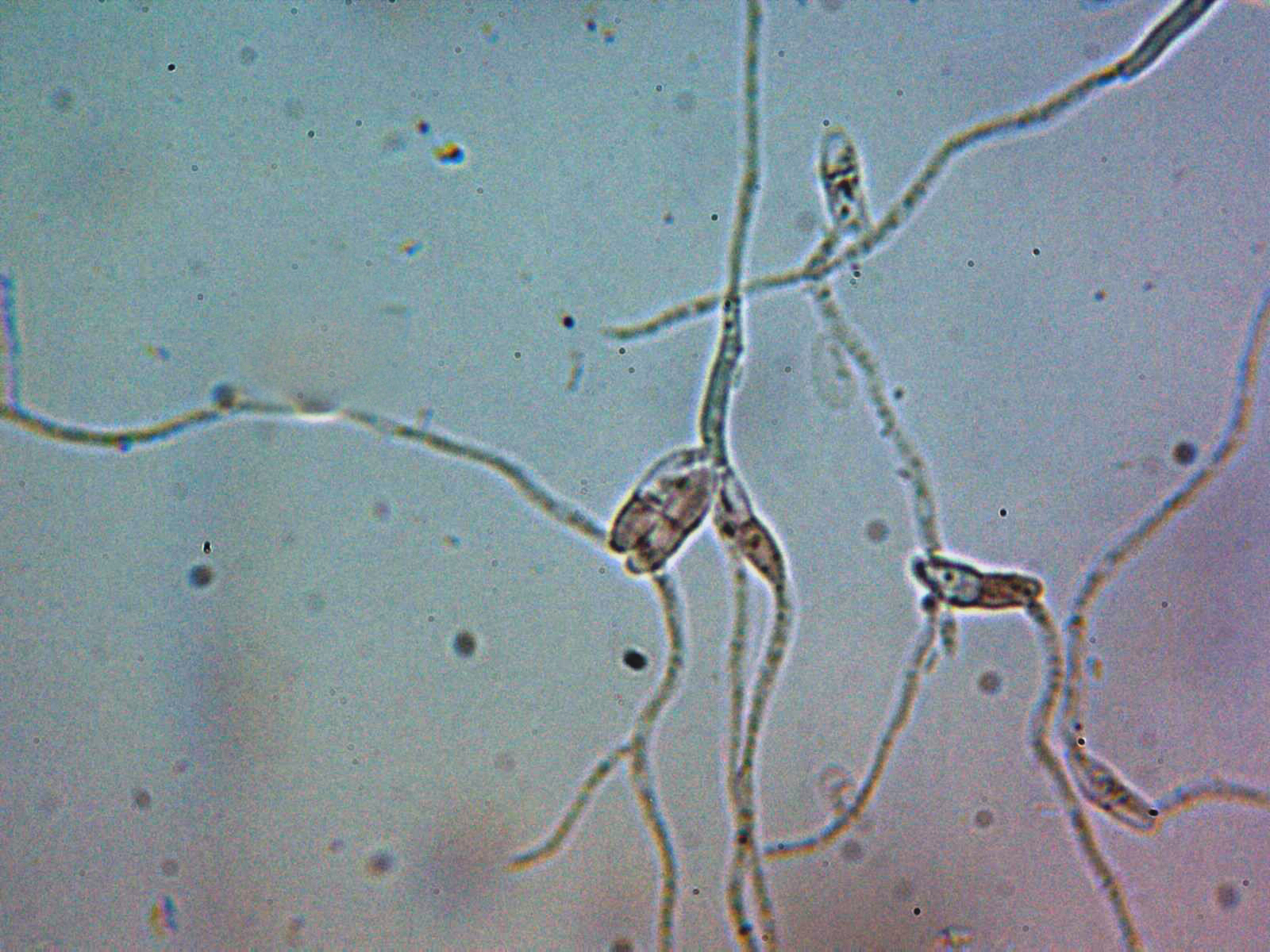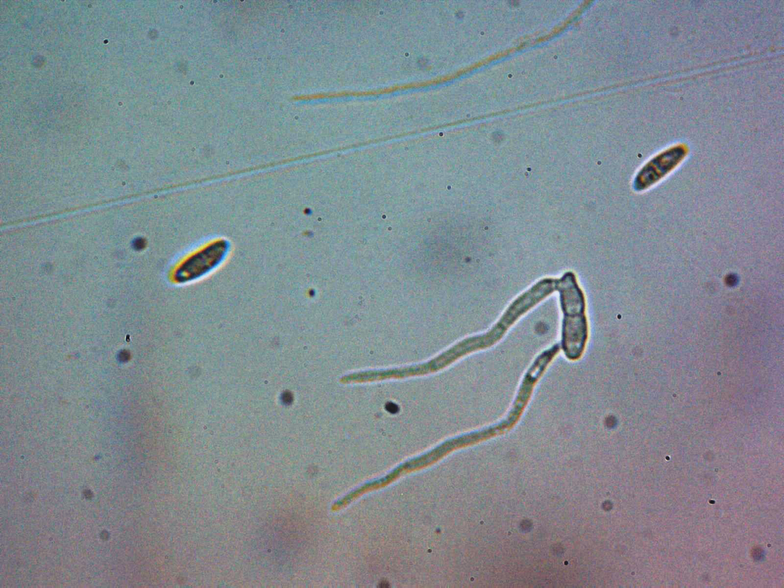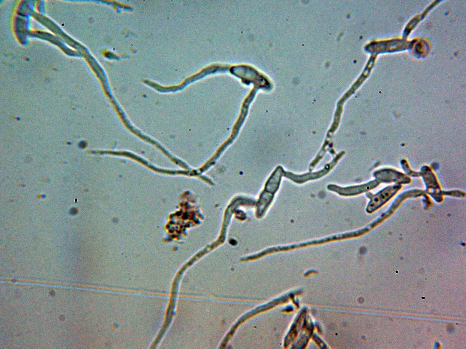 Unas imágenes de las esporas a las 24 horas, todas ellas ya germinando: