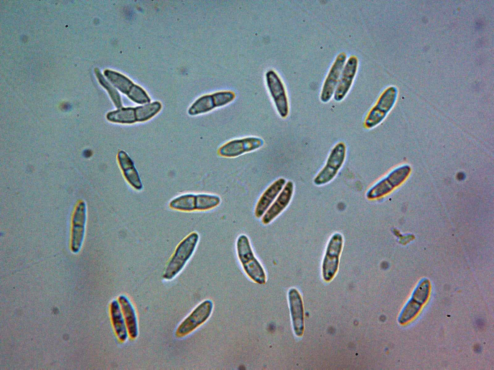 Esporas maduras mayoritariamente con un septo y unas medidas en agua del grifo de: