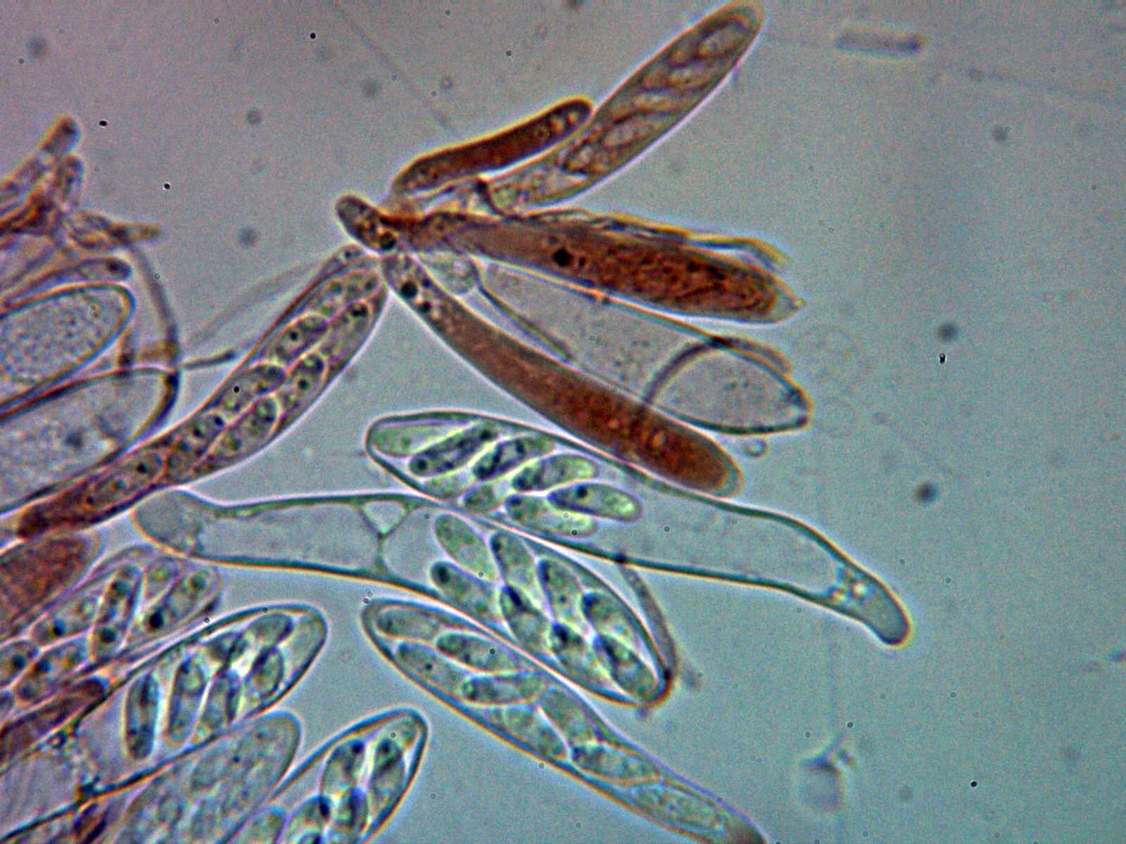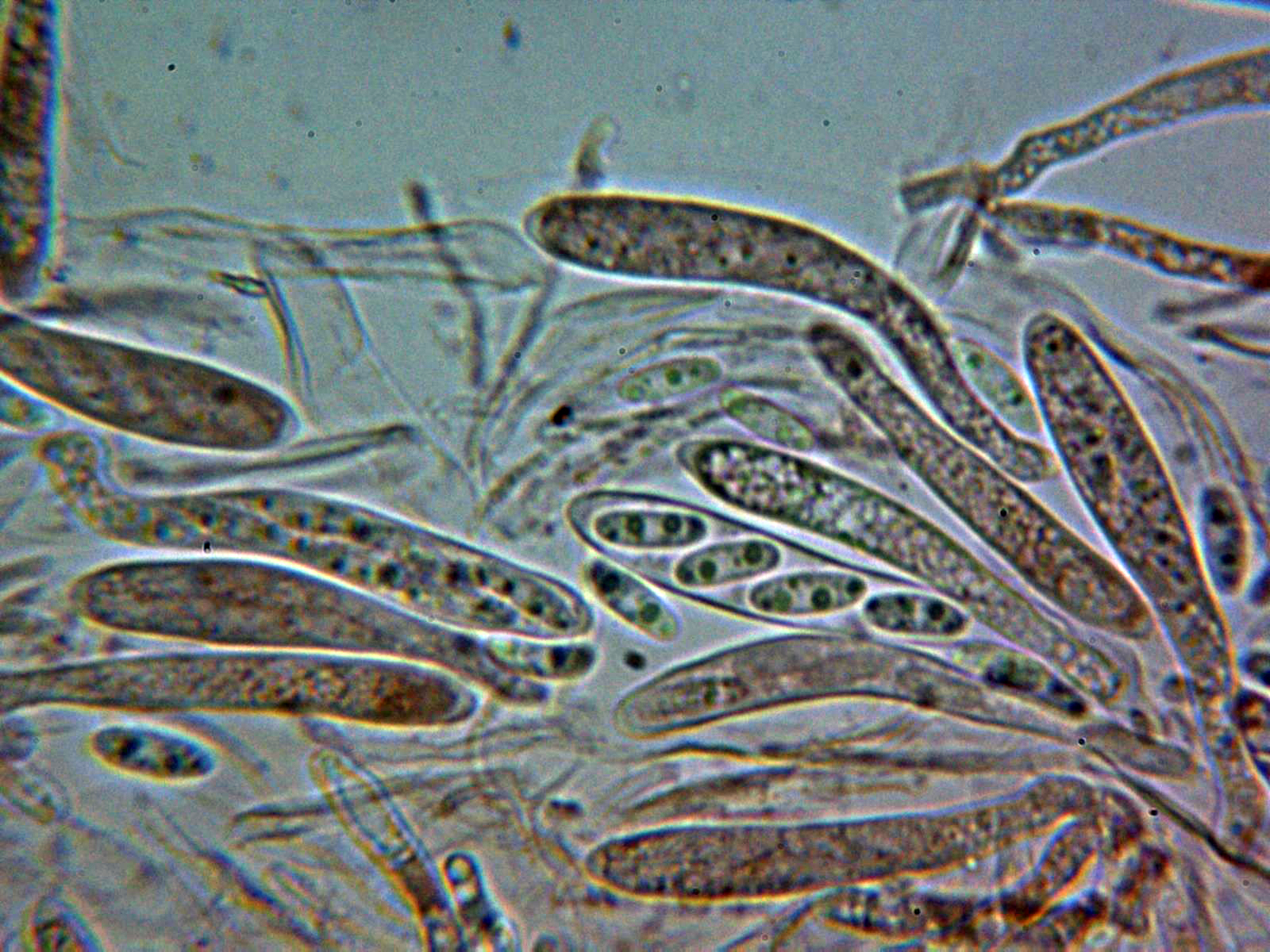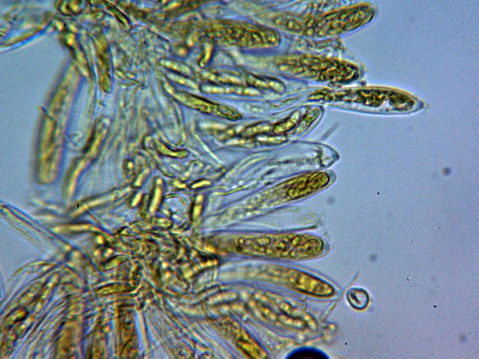 Ascos en Reactivo de Melzer con reacción amiloide del pequeño aparato apical: