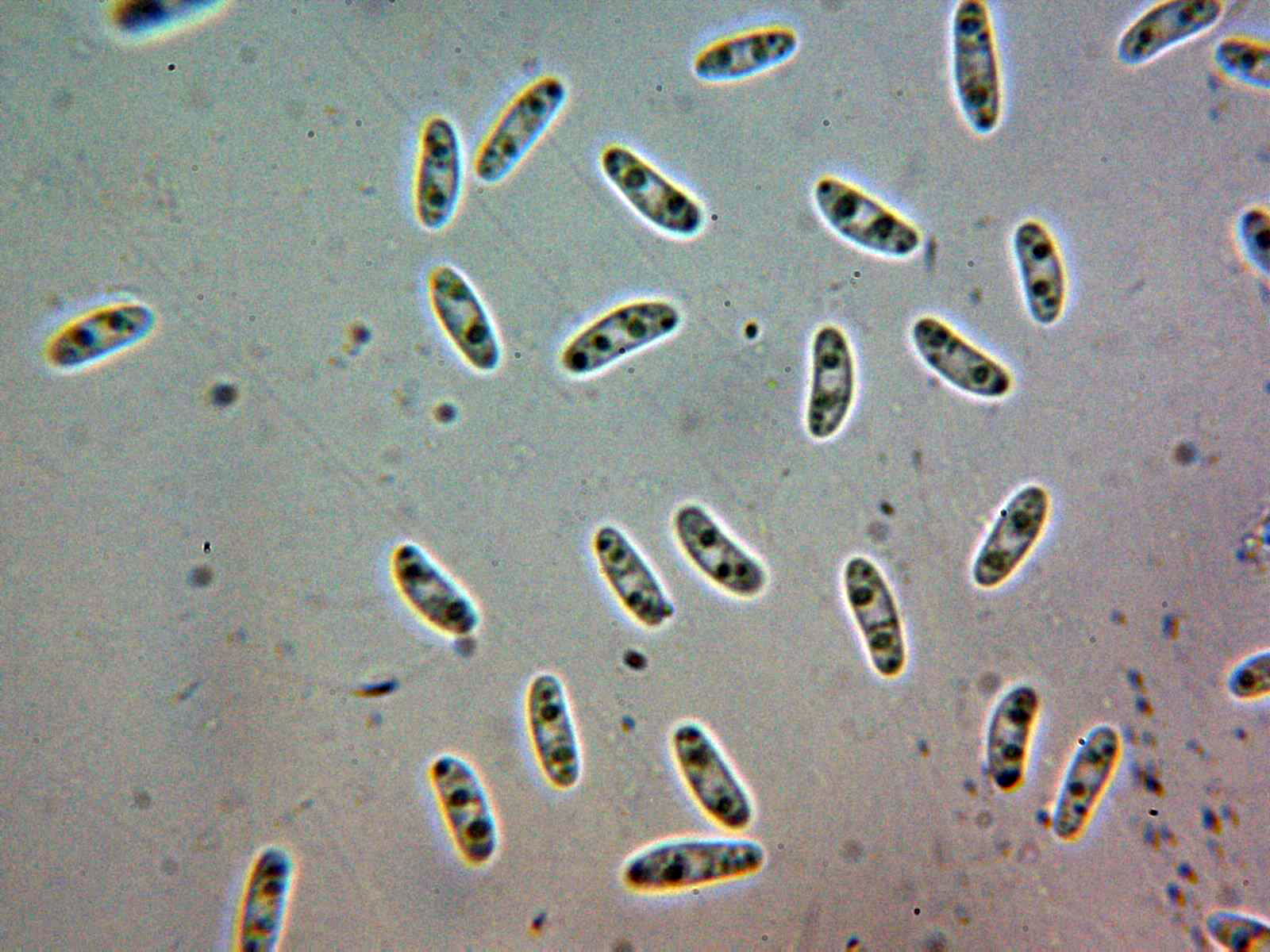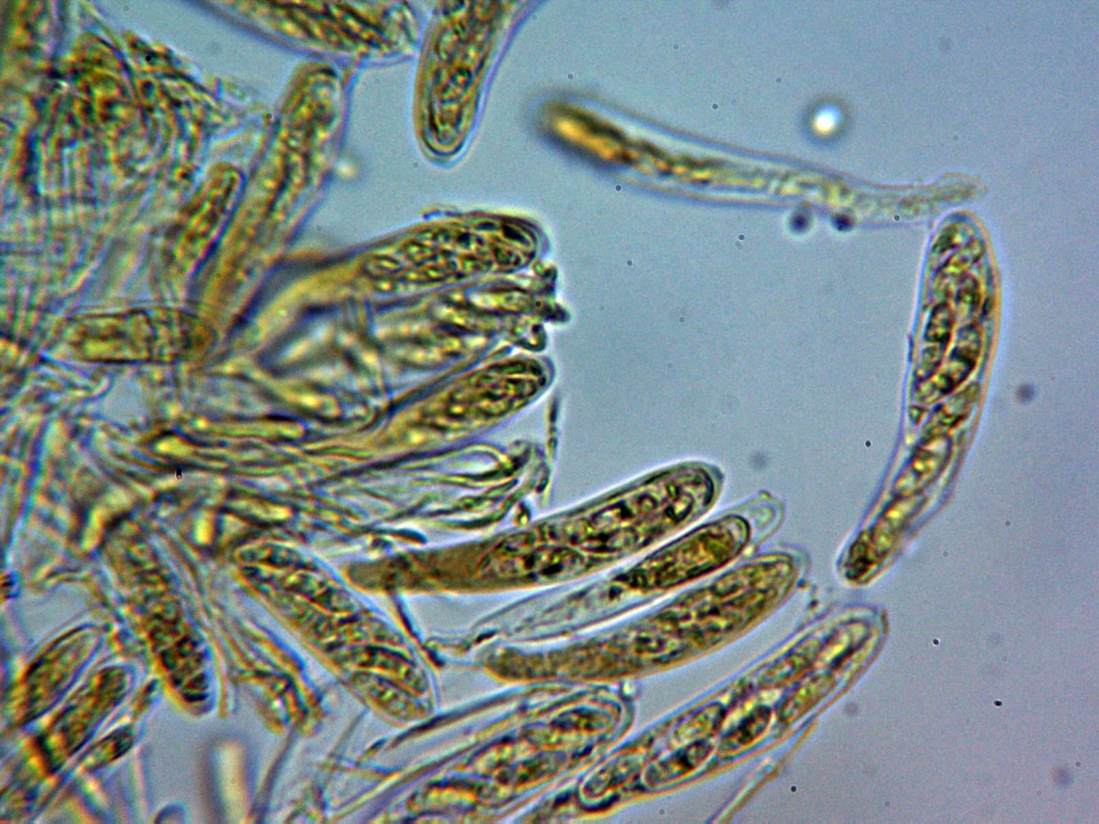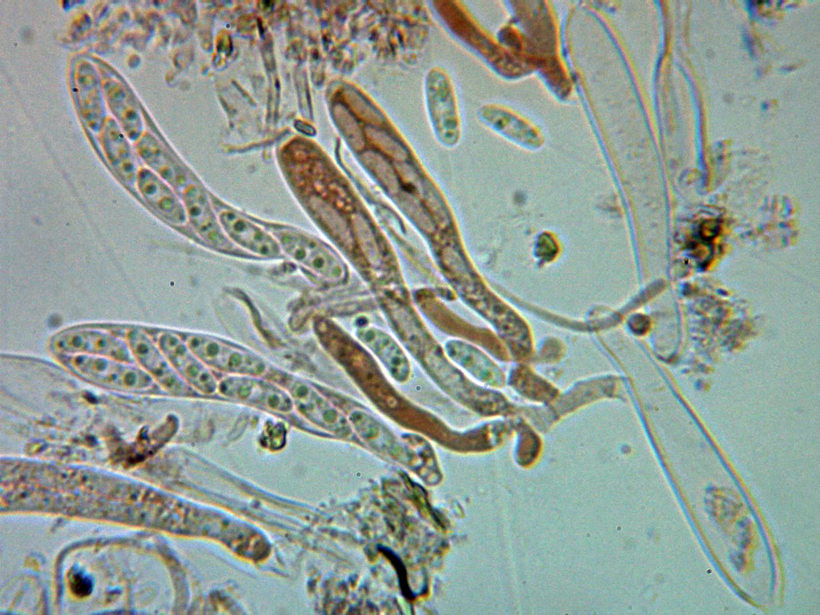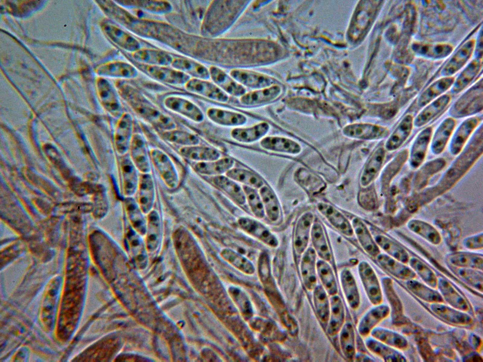 Ascos en Reactivo de Melzer con reacción amiloide del pequeño aparato apical: