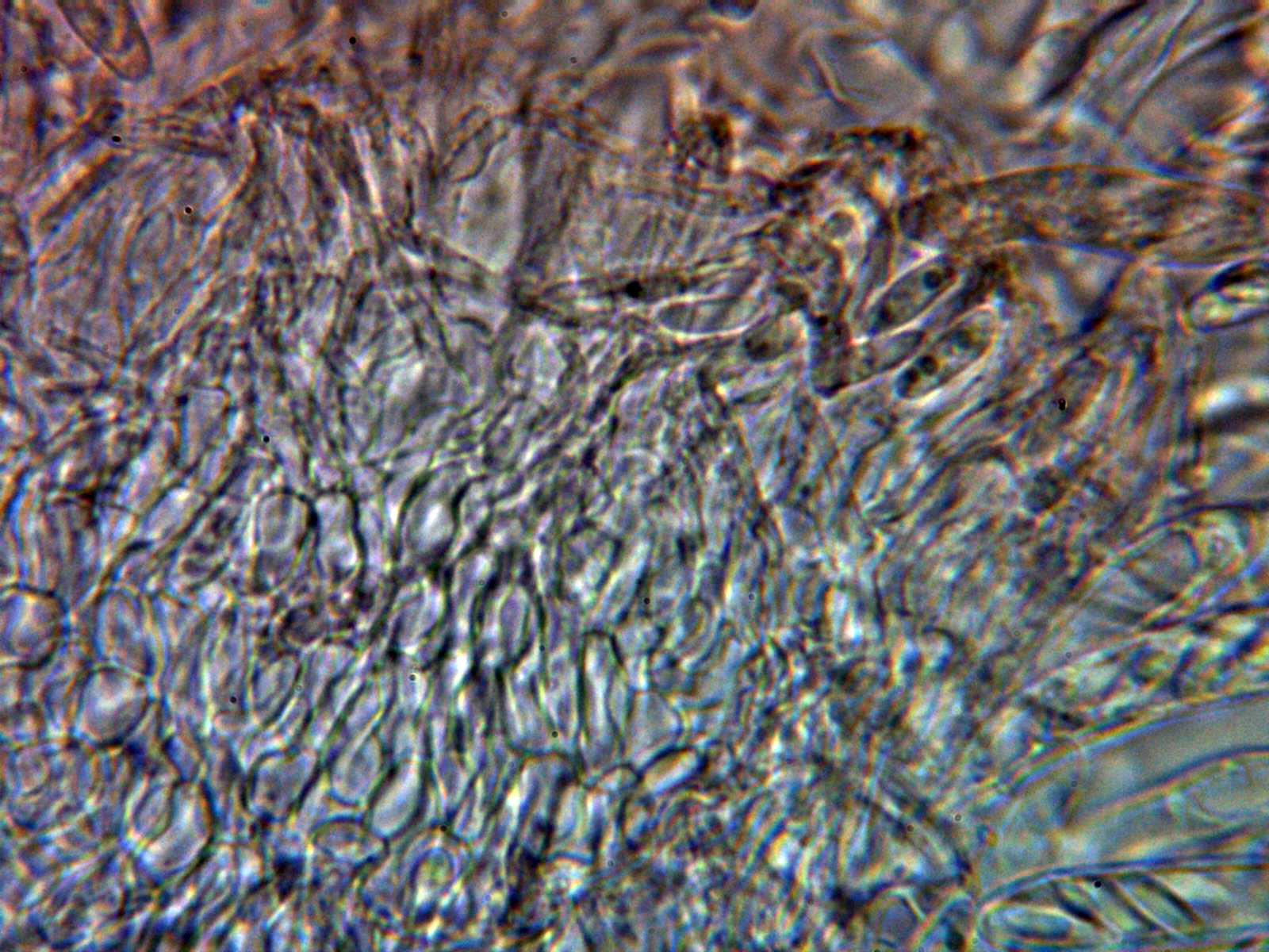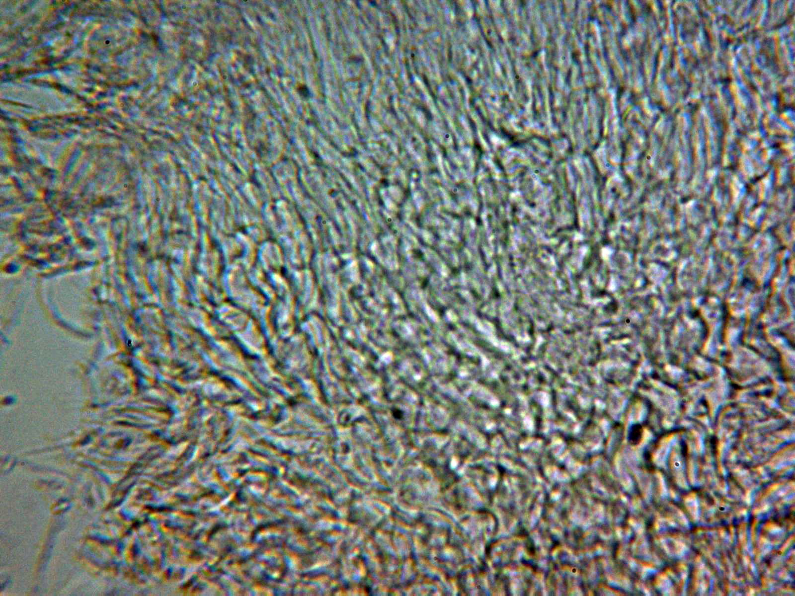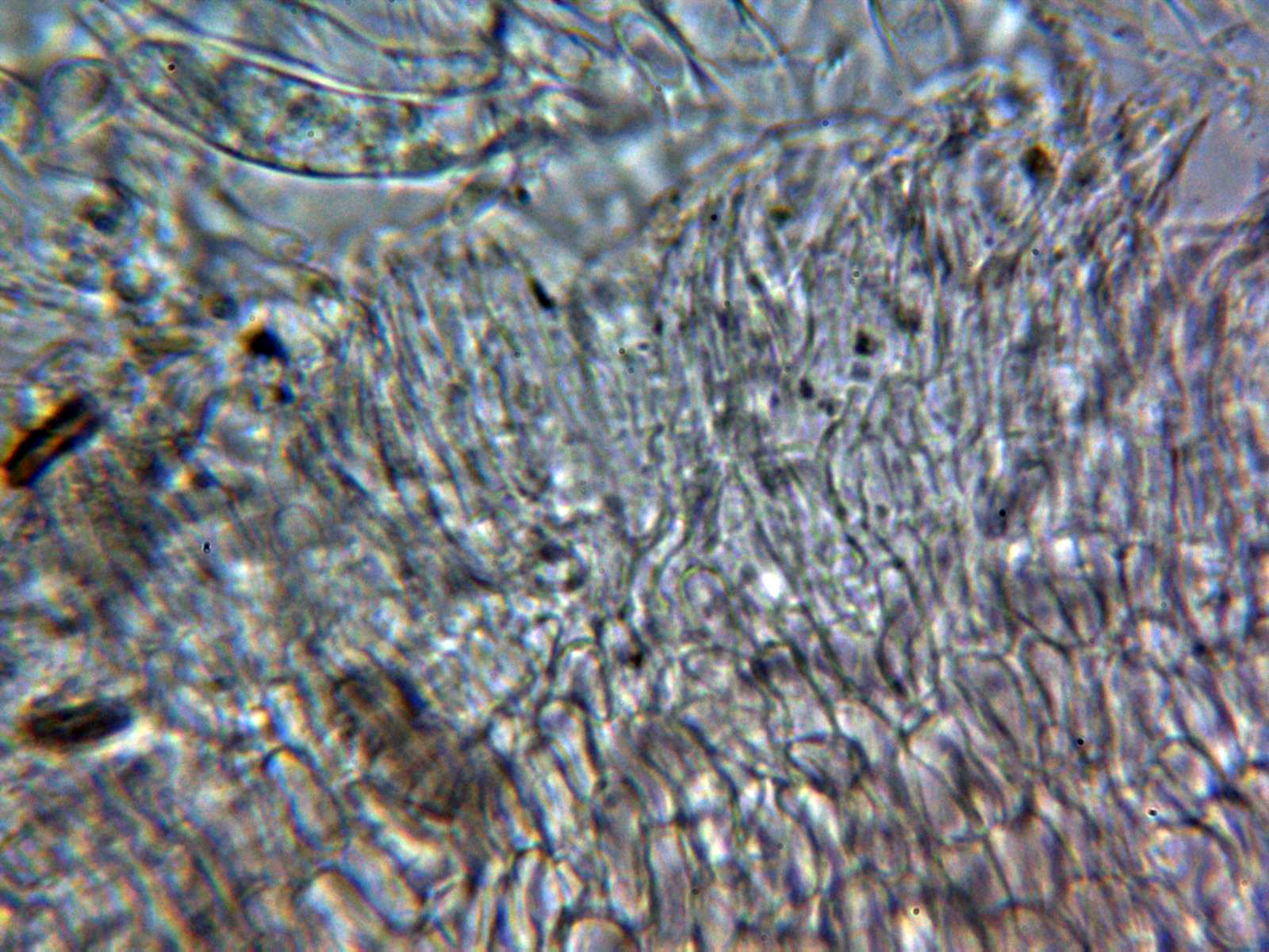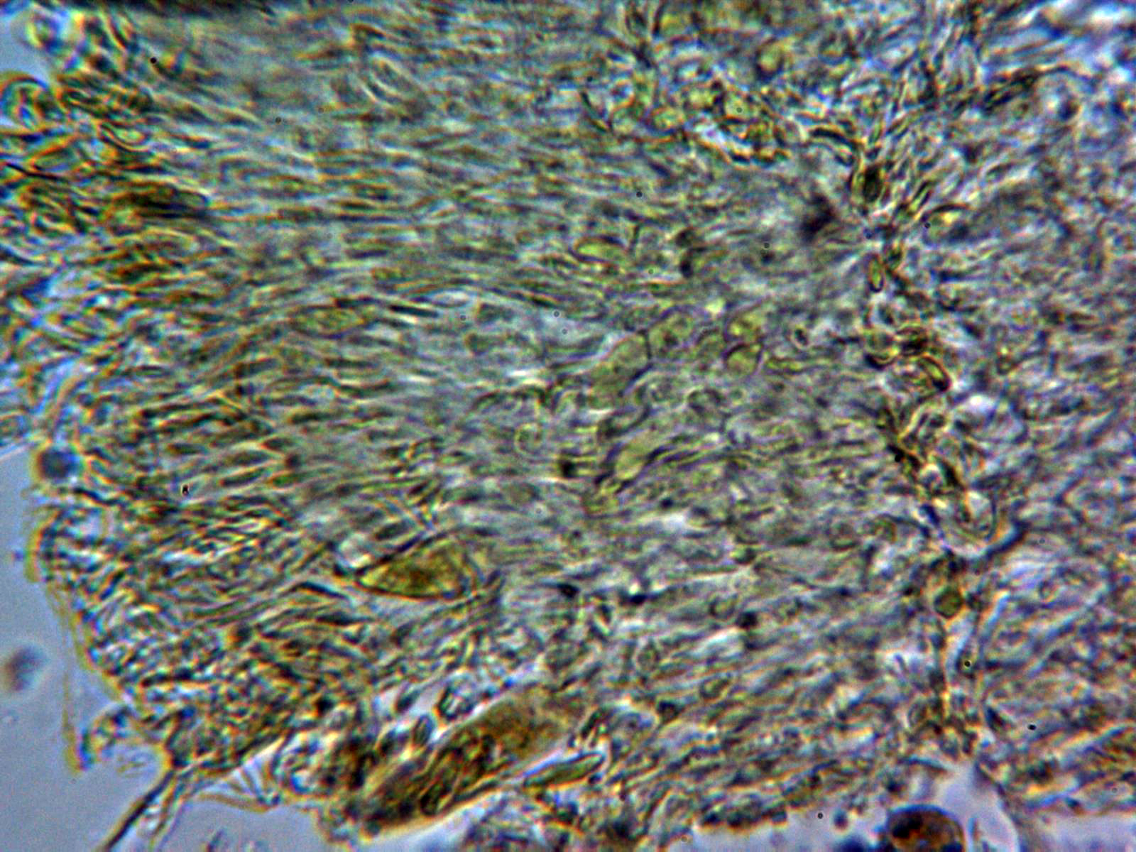 Pelos marginales filamentosos finos con una base ya de hifas más anchas y tabiques cortos: