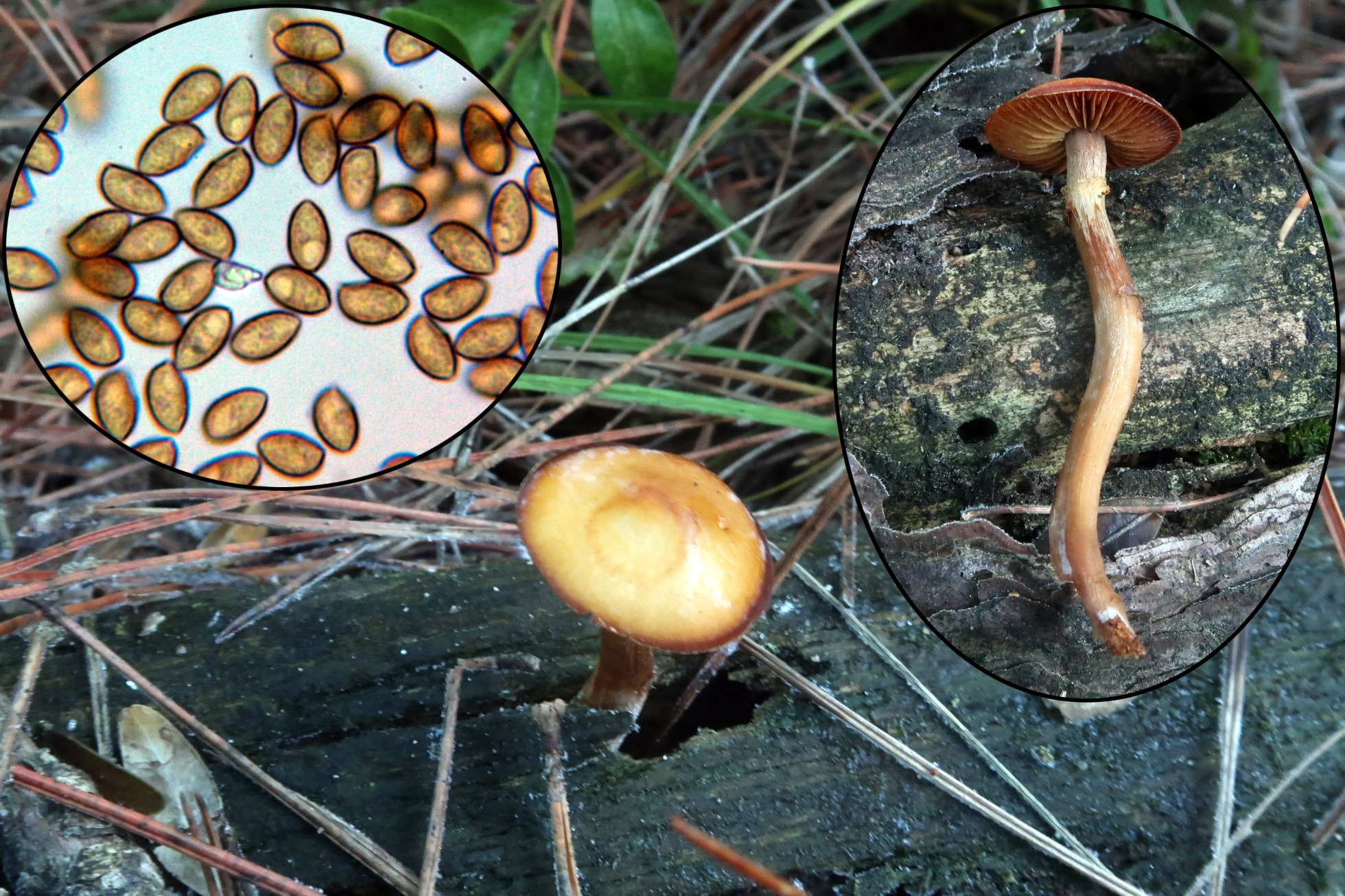 Al igual que la anterior un solo ejemplar, esta sobre madera, la muy peligrosa Galerina marginata