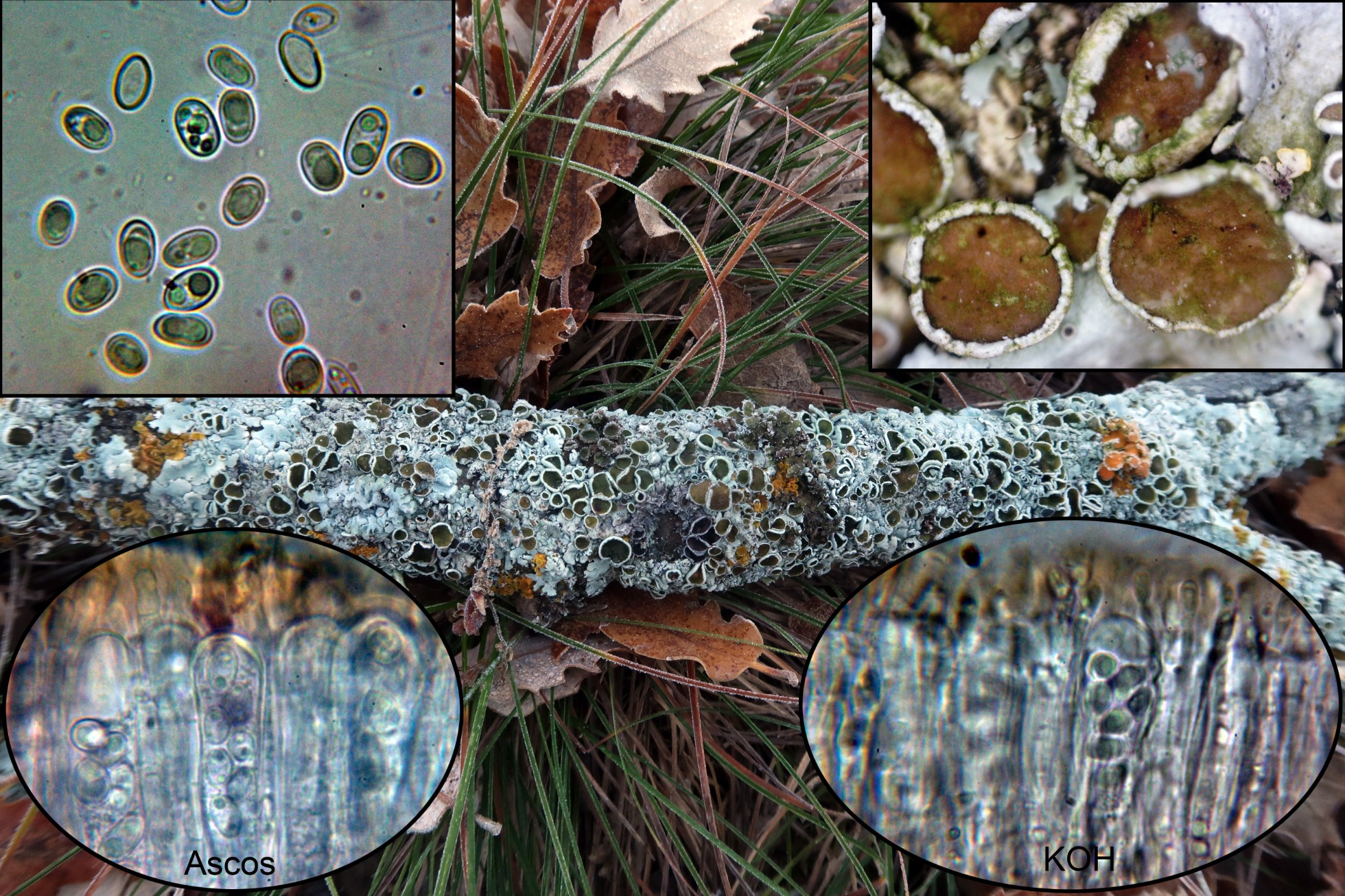 Al lado de la anterior un líquen propio de la madera de roble, la Parmelia quercina, actualmente Parmelina quercina
