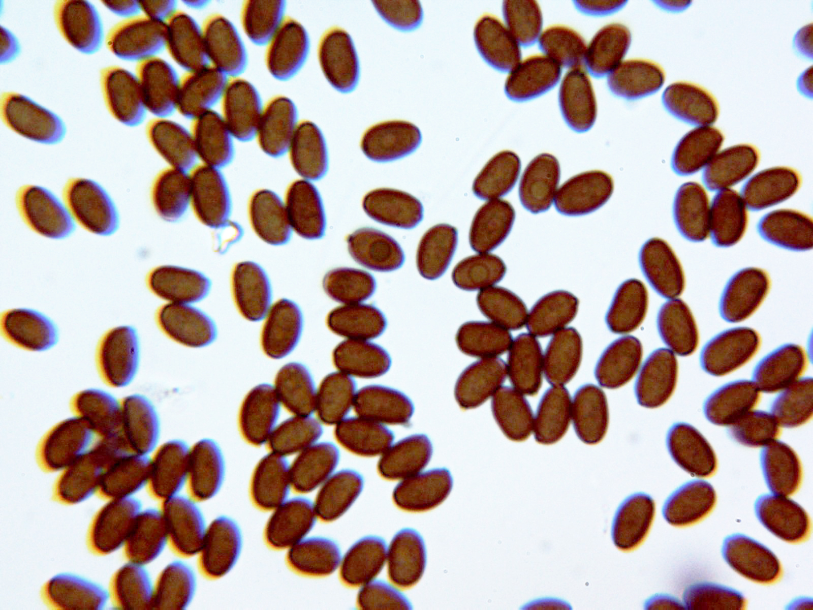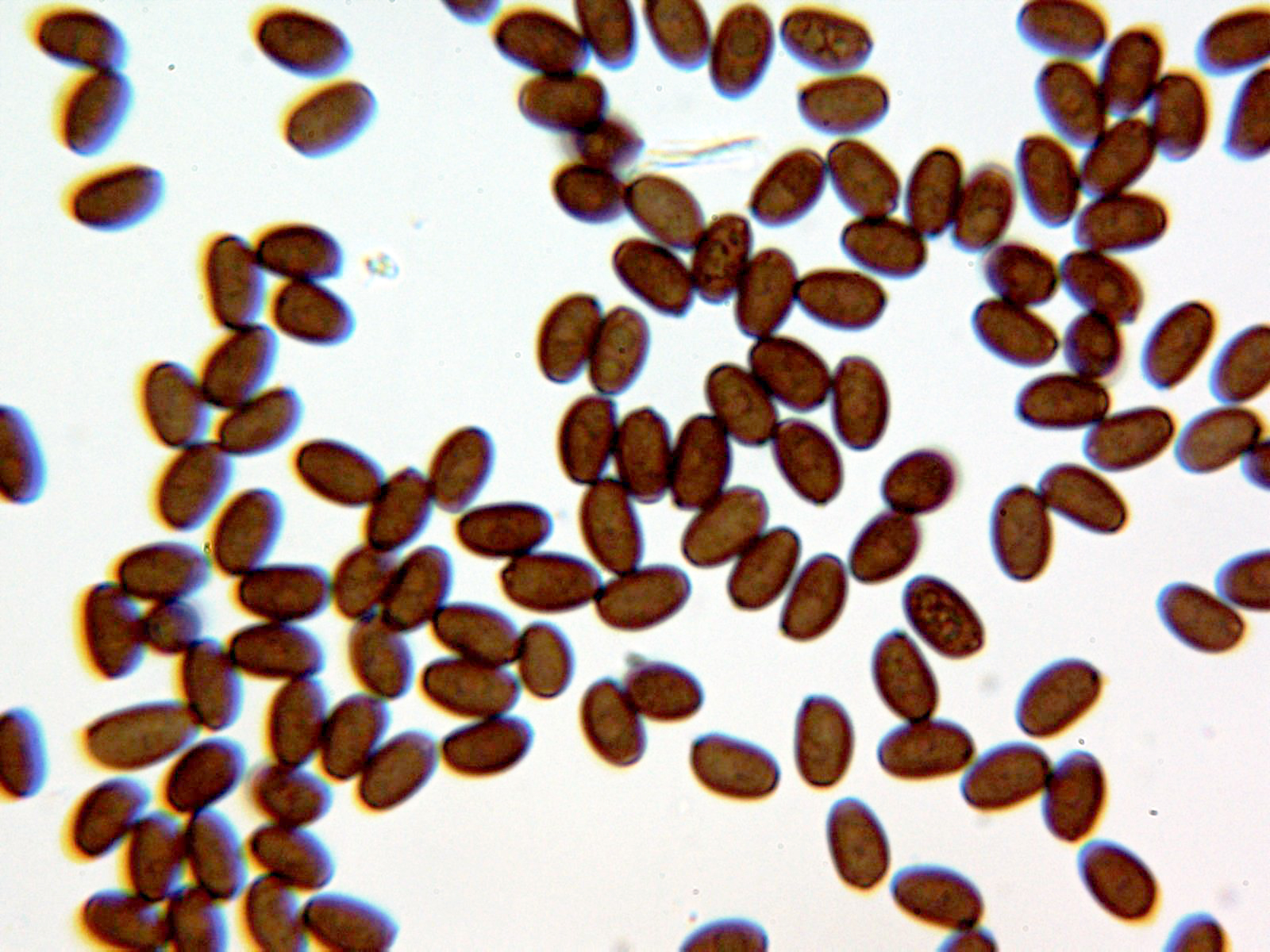 Esporas de color marrón, medianamente pigmentadas, con unas medidas en agua de: