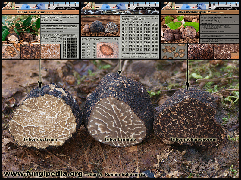 - Comparativa de Tuber aestivum, Tuber brumale, Tuber melanosporum. Microscopy.
