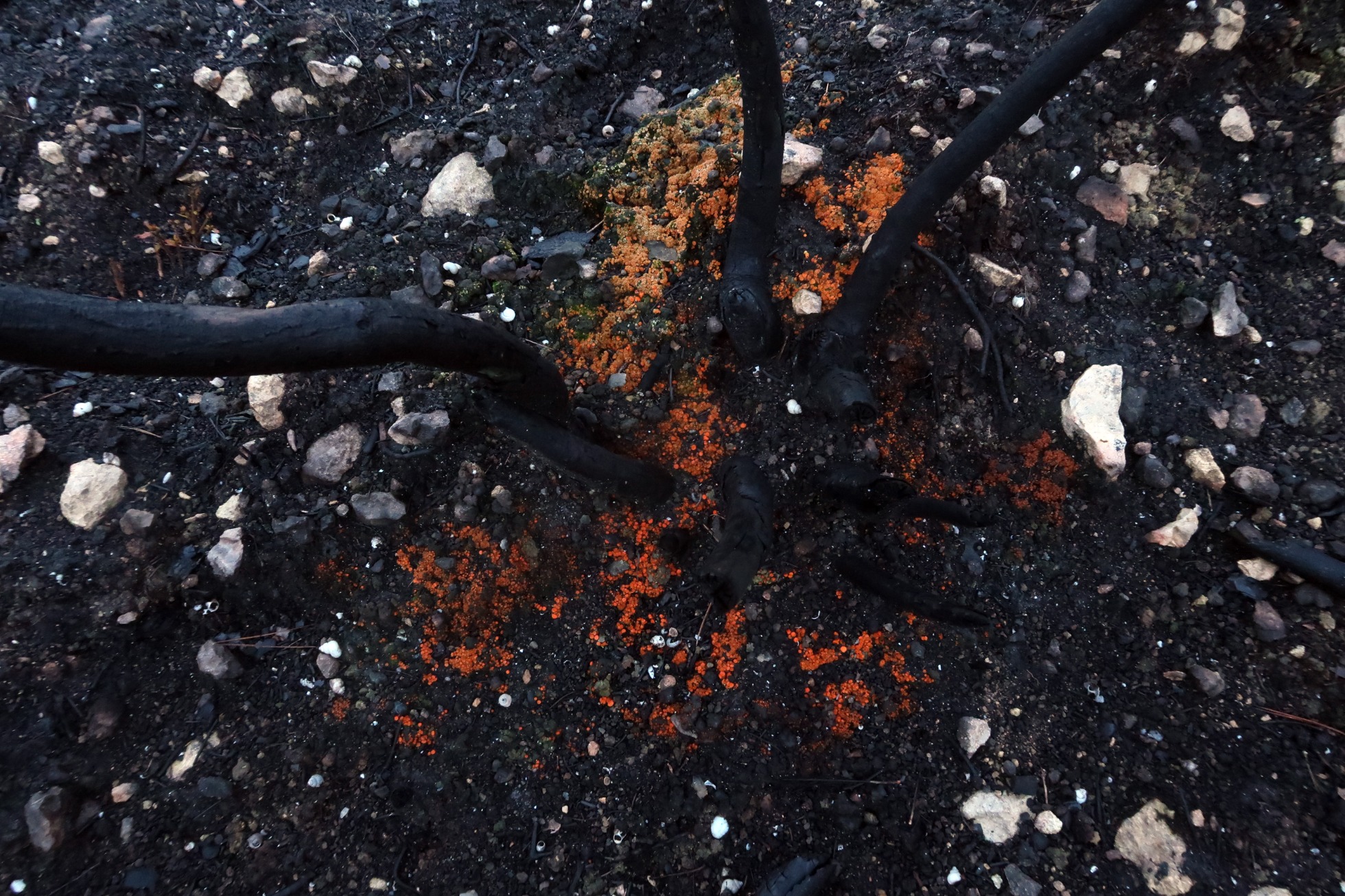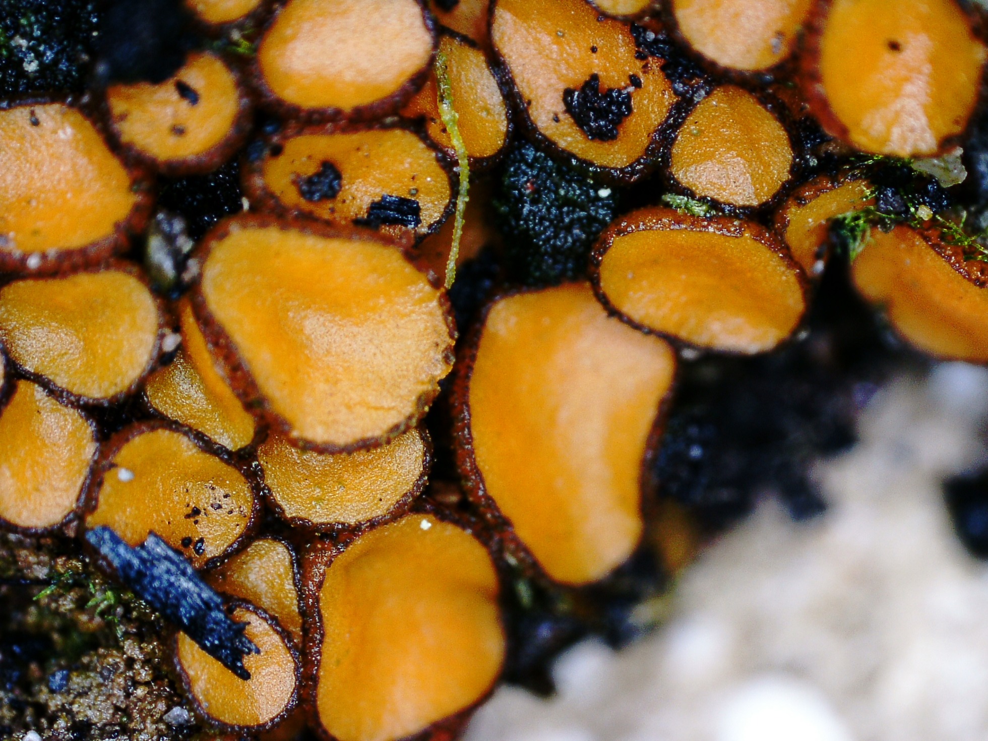 Los apotecios cubrían literalmente el suelo, estos eran de un color más rojizo: