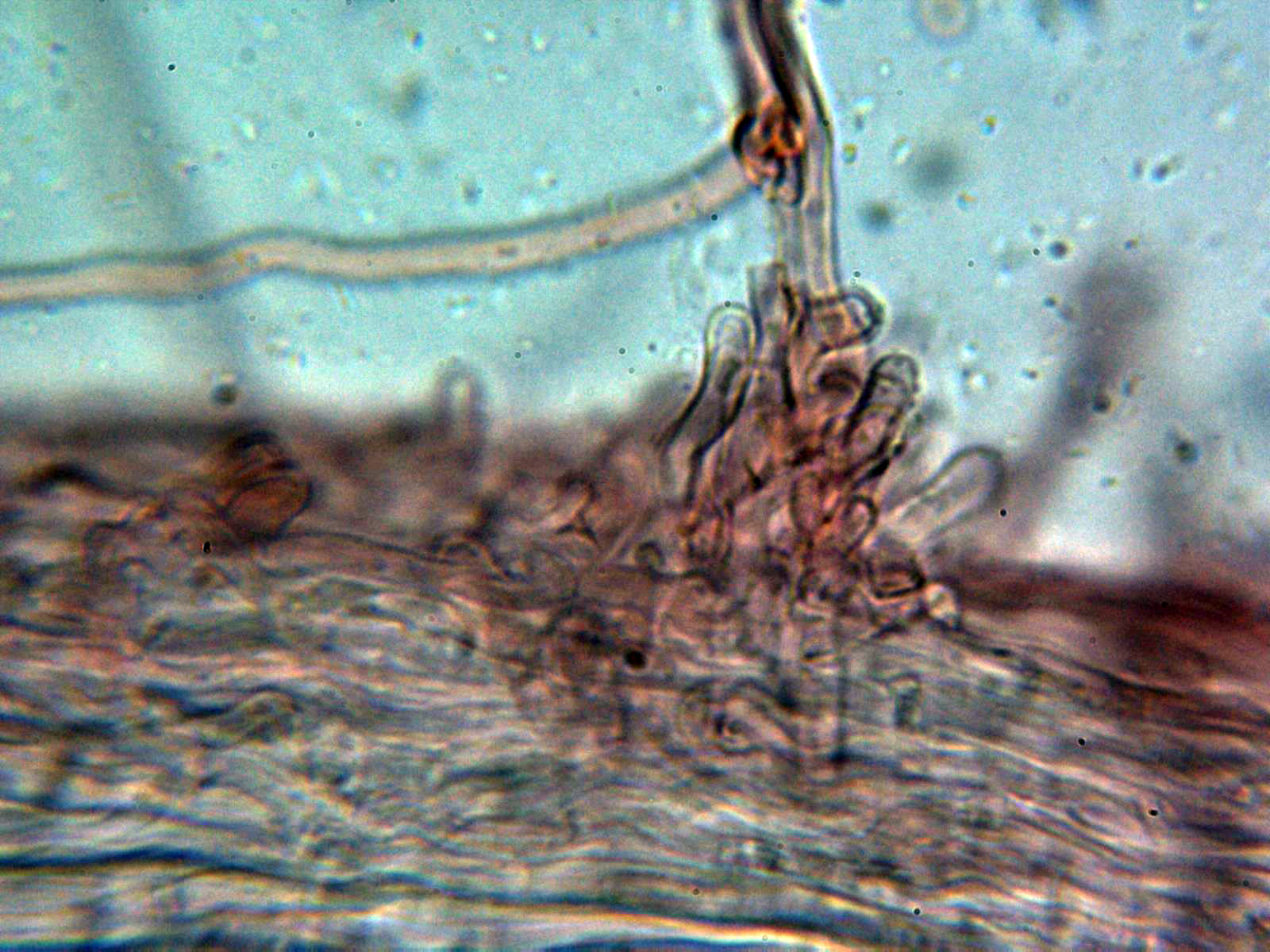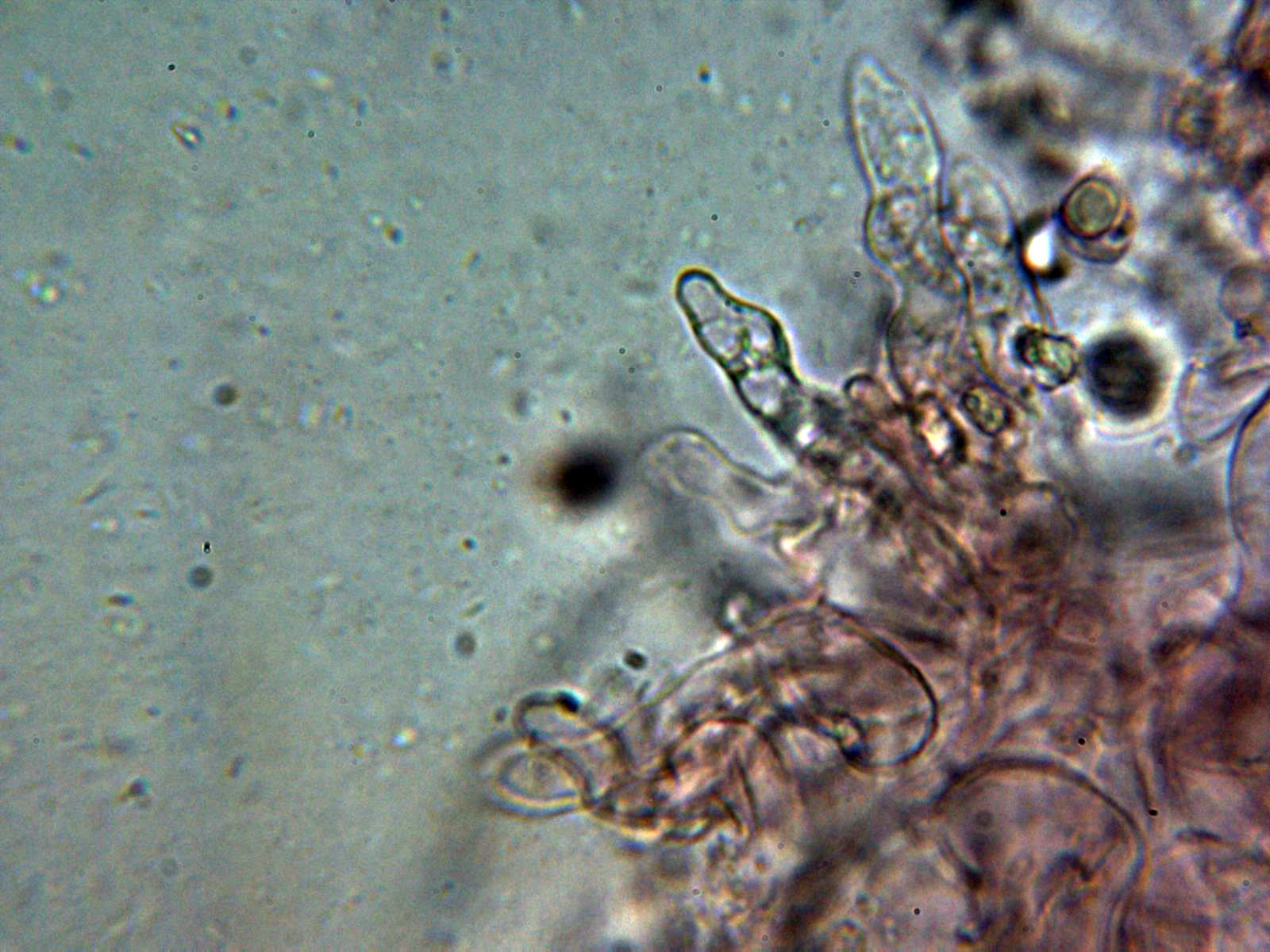 Por contra en algunas muestras advertí de la presencia de hifas terminales a modo de queilocistidios: