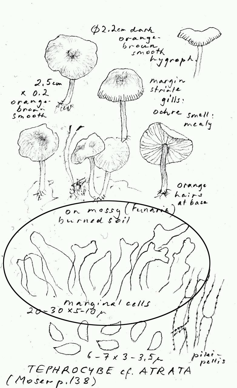 La Tephrocybe atrata sería muy parecida a sus hermanas con las que comparte hábitat, la Tephrocybe anthracophila y la Tephrocybe ambusta, fáciles de separar con el micro ya que ambas presentan esporas esféricas.