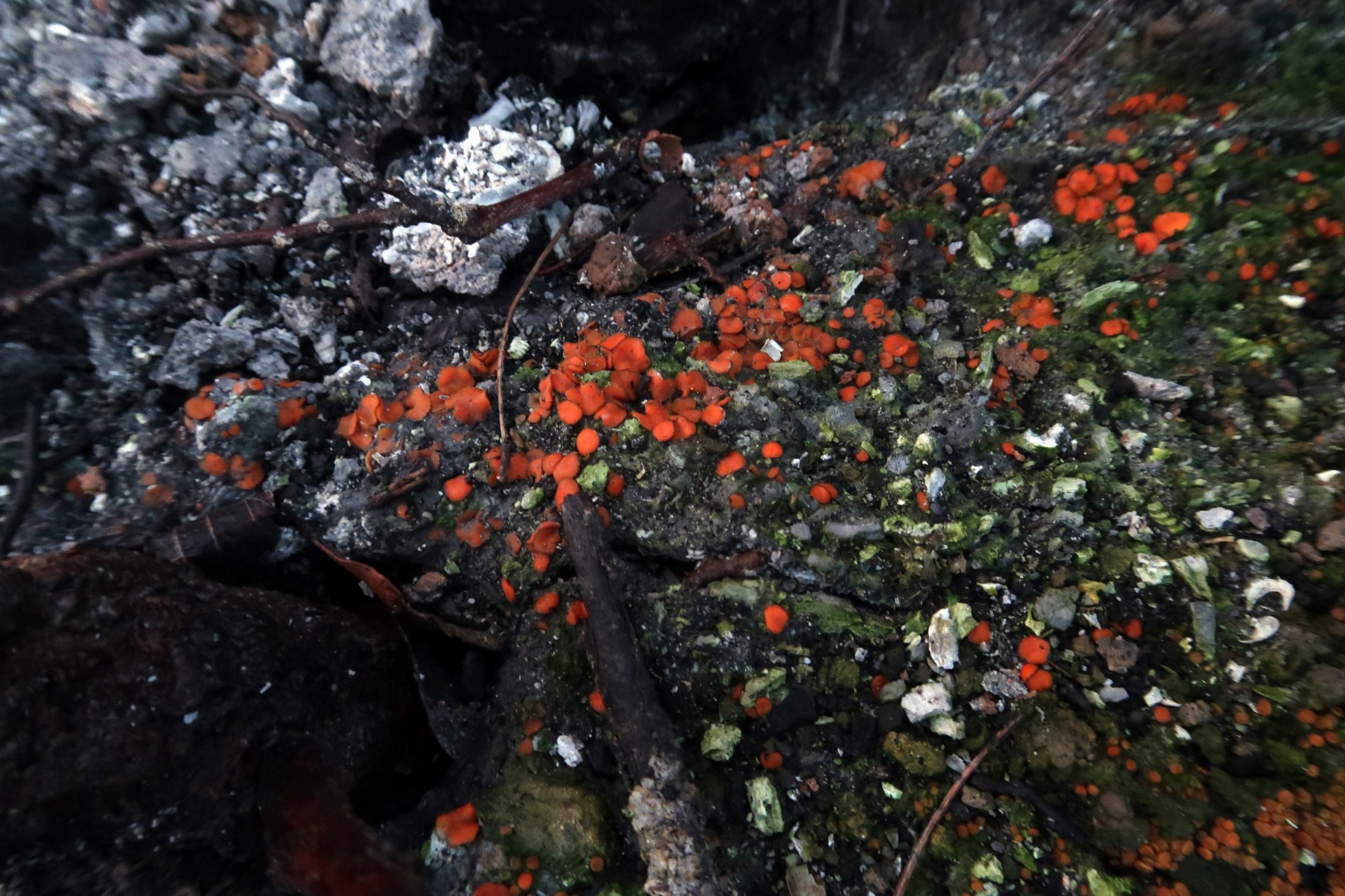 Lo primero que se me vino a la mente fue que se tendría que estar bastante loco para ir a buscar hongos en un sitio así, aunque pocos si que conseguí ver algunos.