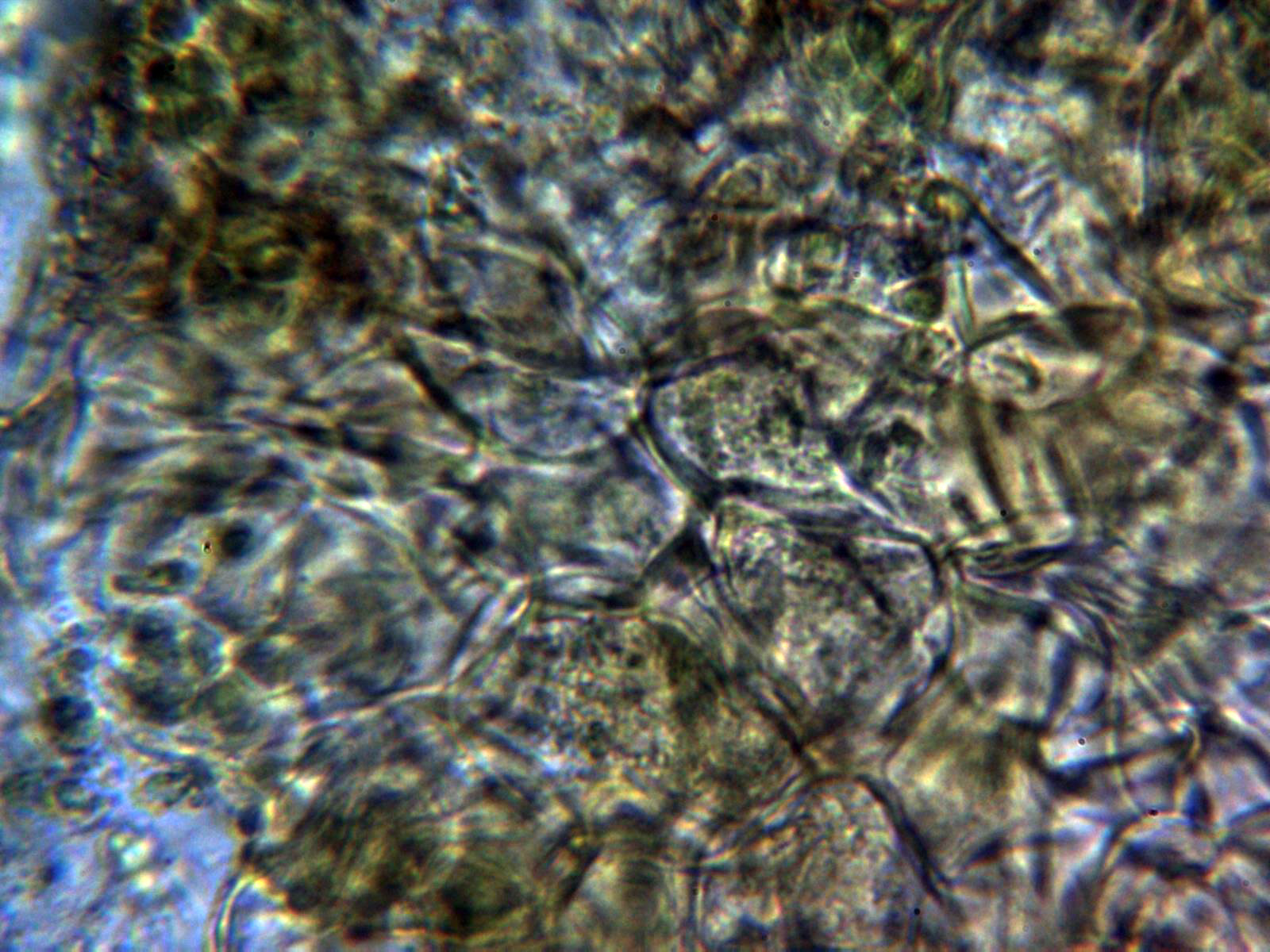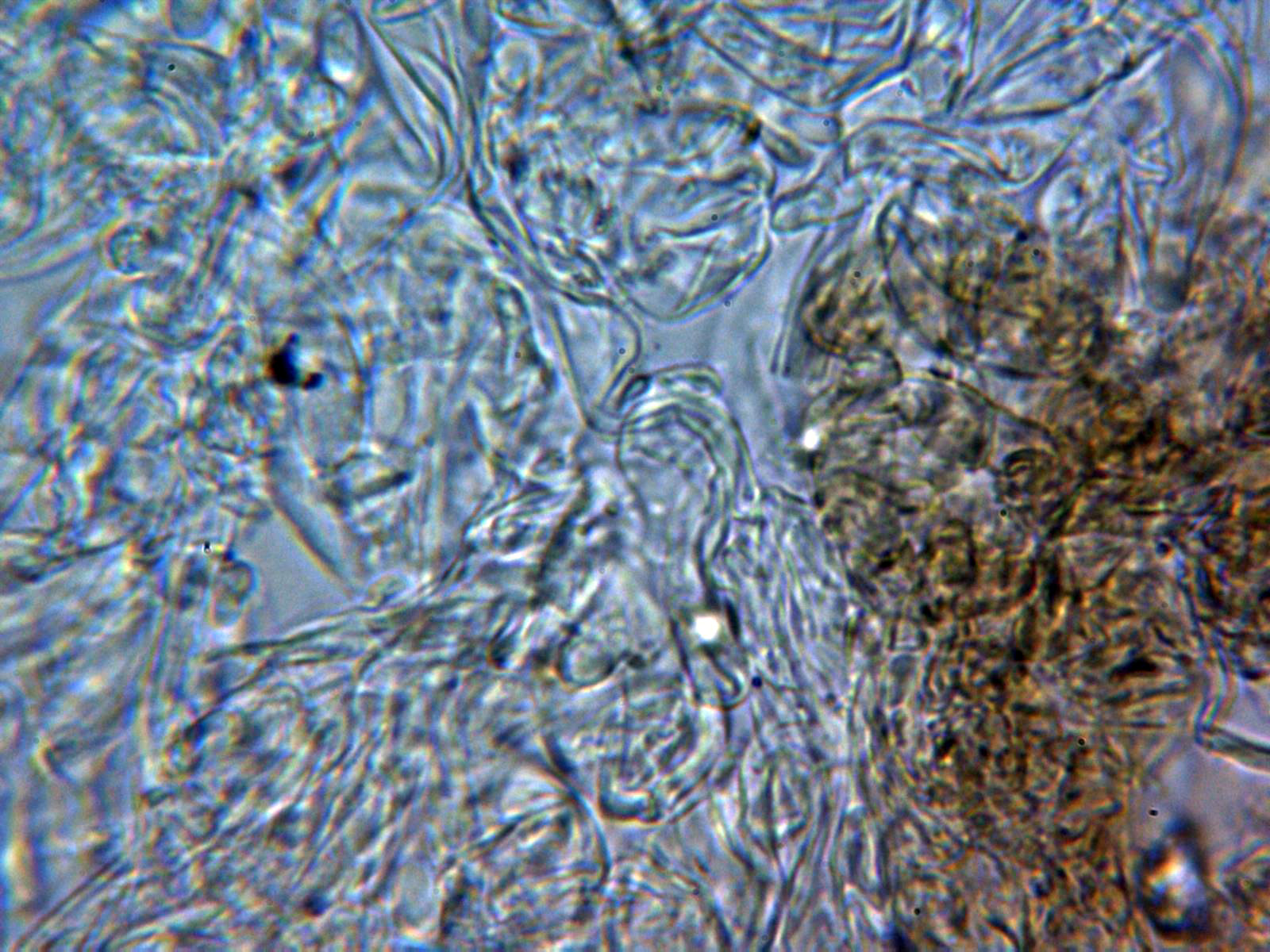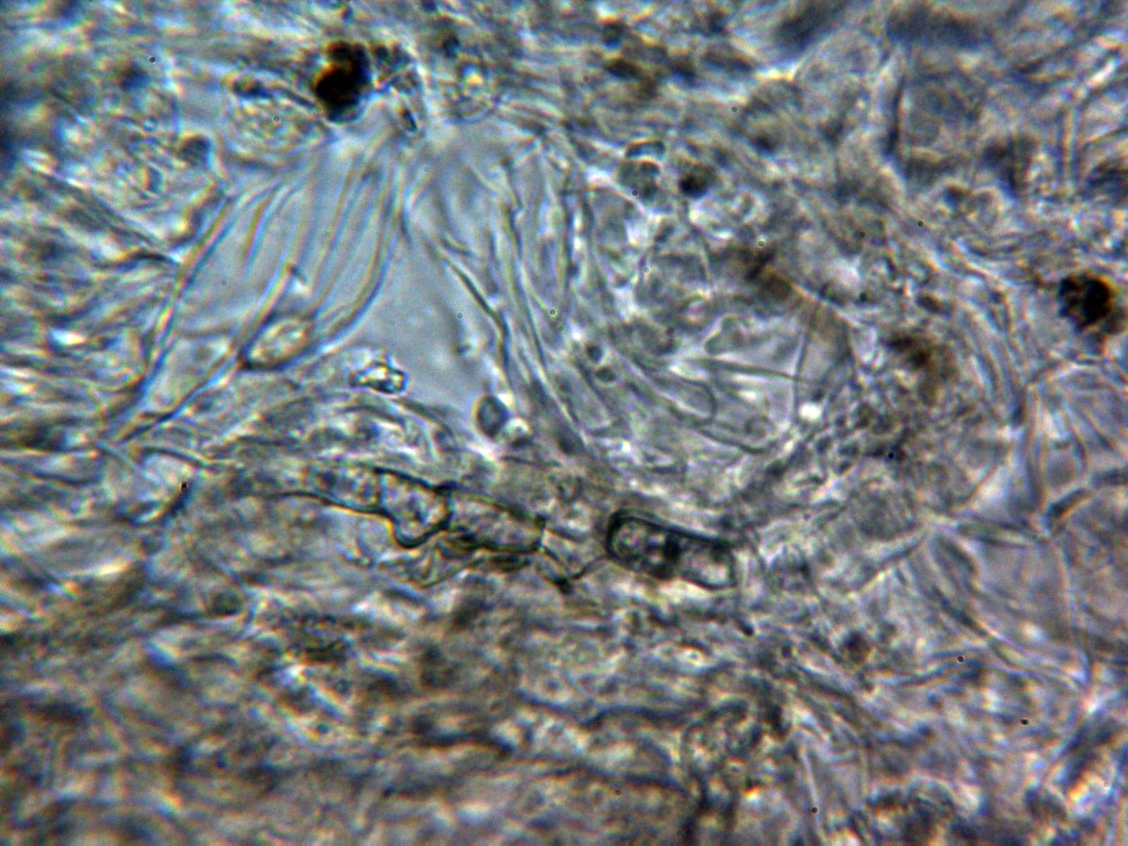 Hifas de la cutícula en agua, pigmentadas y con fíbulas:
