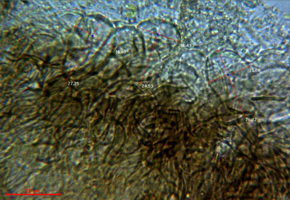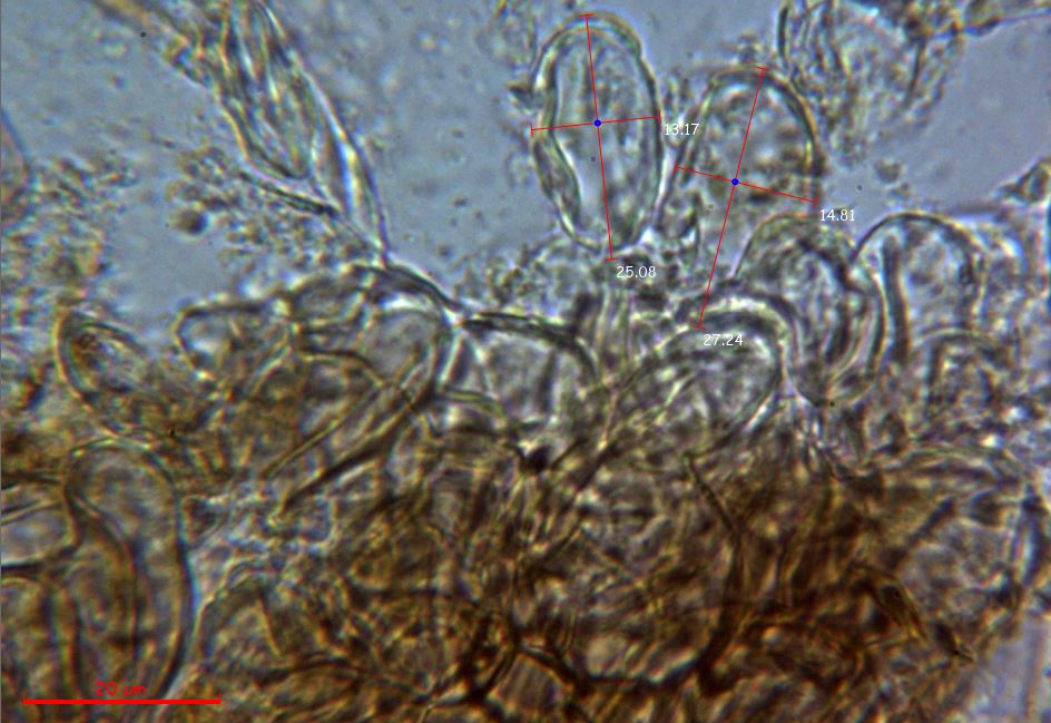 Estas medidas se encuentran por encima de las citadas en la bibliografía de la especie, donde mayoritariamente se otorga una longitud esporal de 6 a 7,5 µm., no obstante encajan con las descritas en la observación de Mushroom Observer Nº 65305, dejo el enlace: