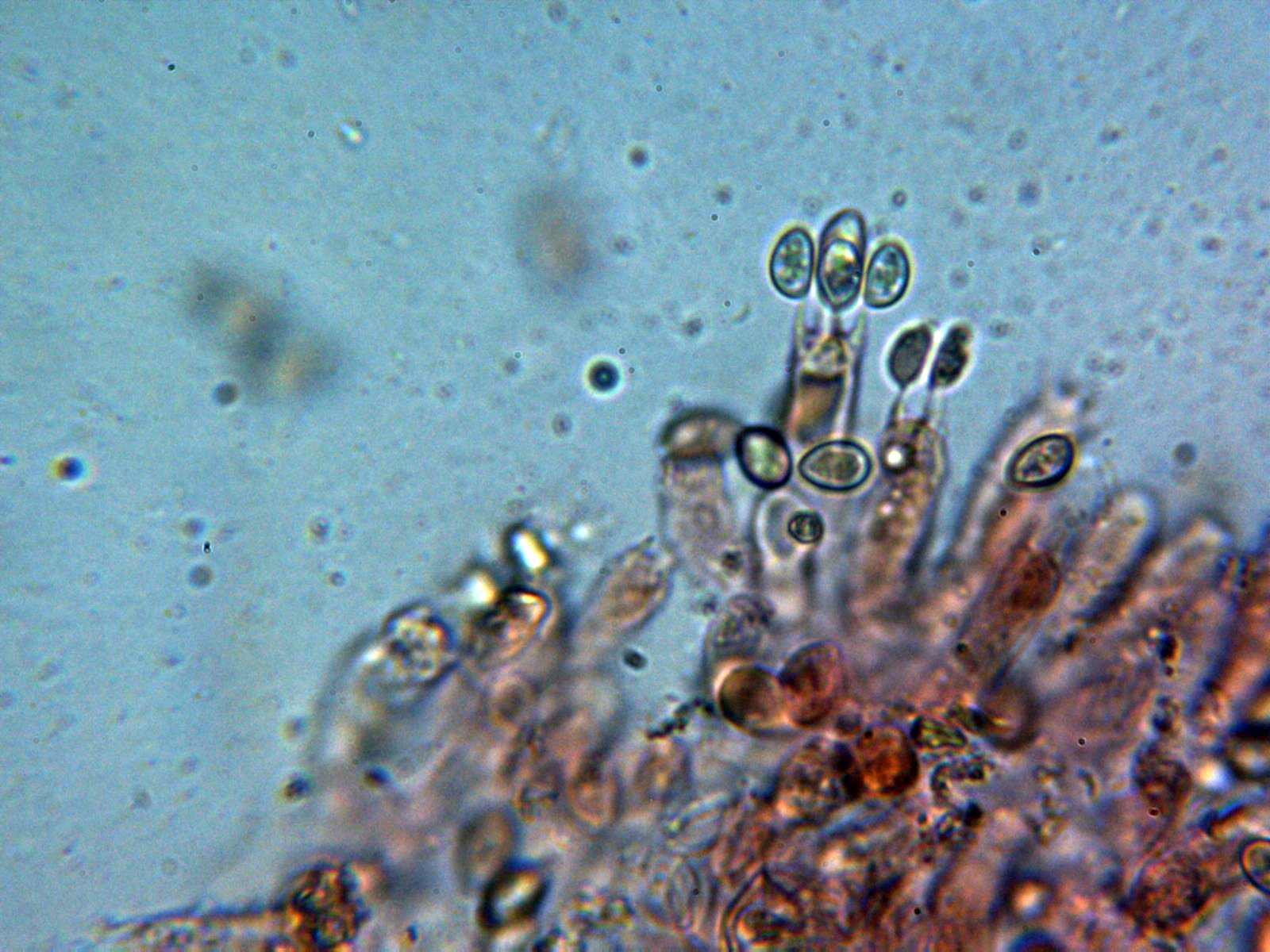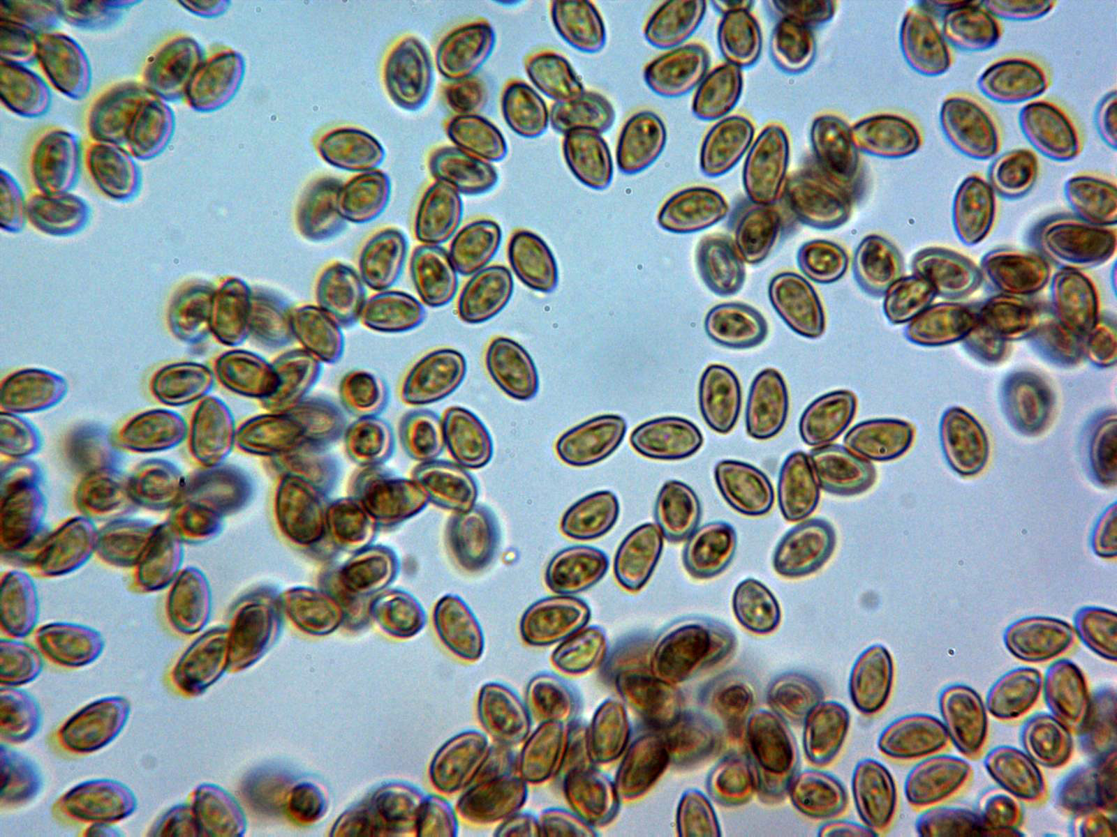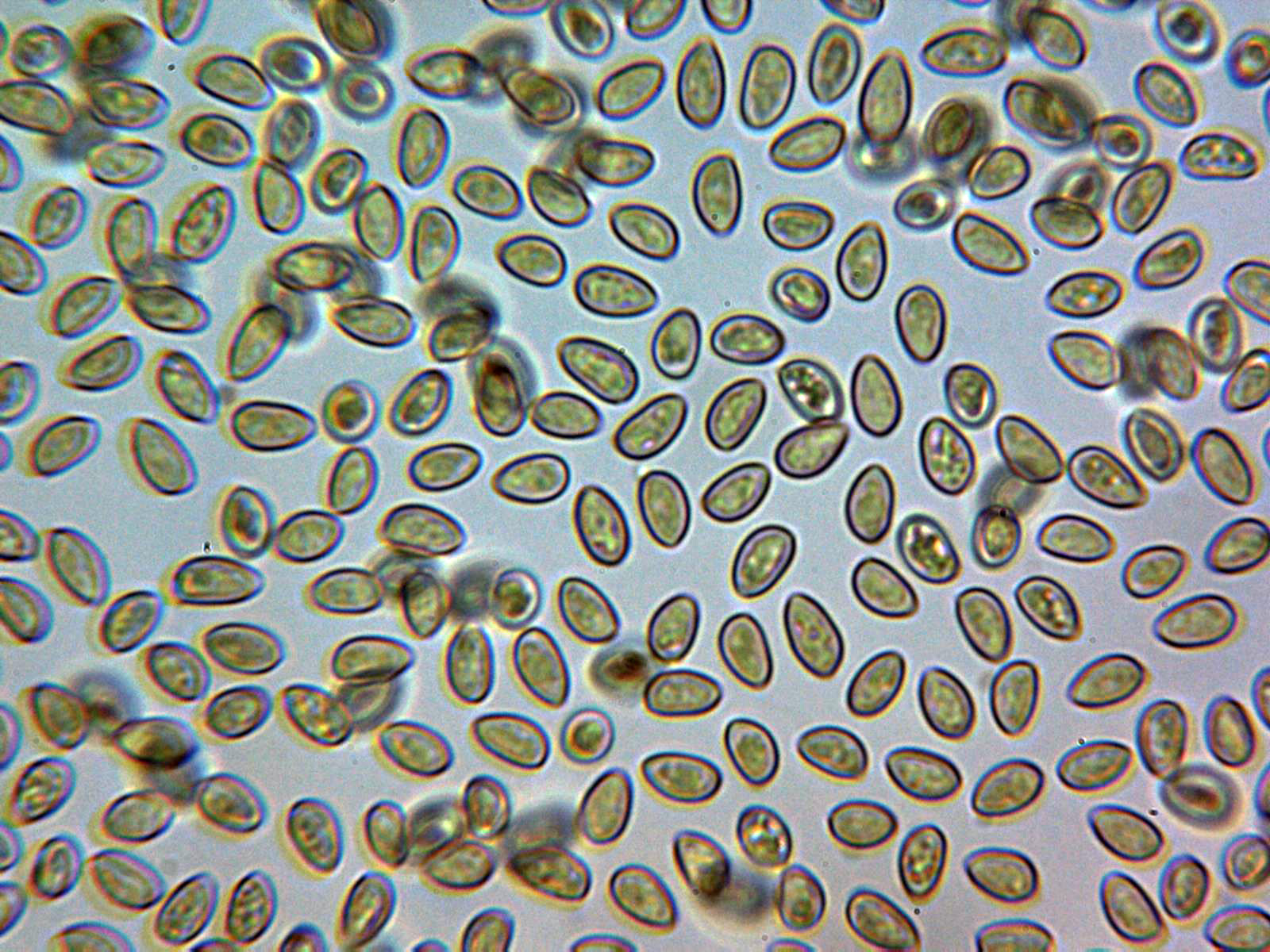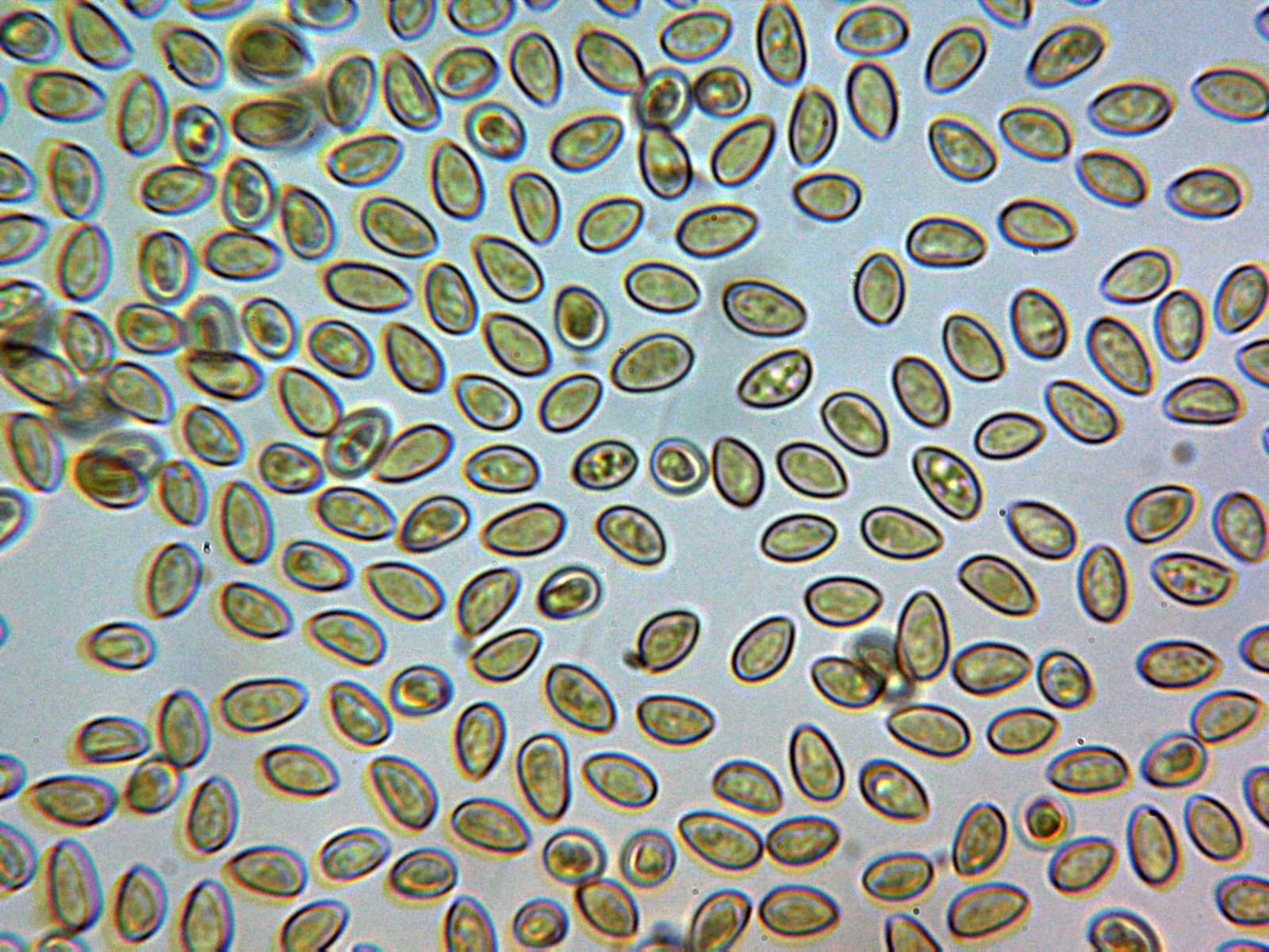 Esporas entre elipsoides y ovoides, con un pequeño pero bien visible poro germinal y con unas medidas de: