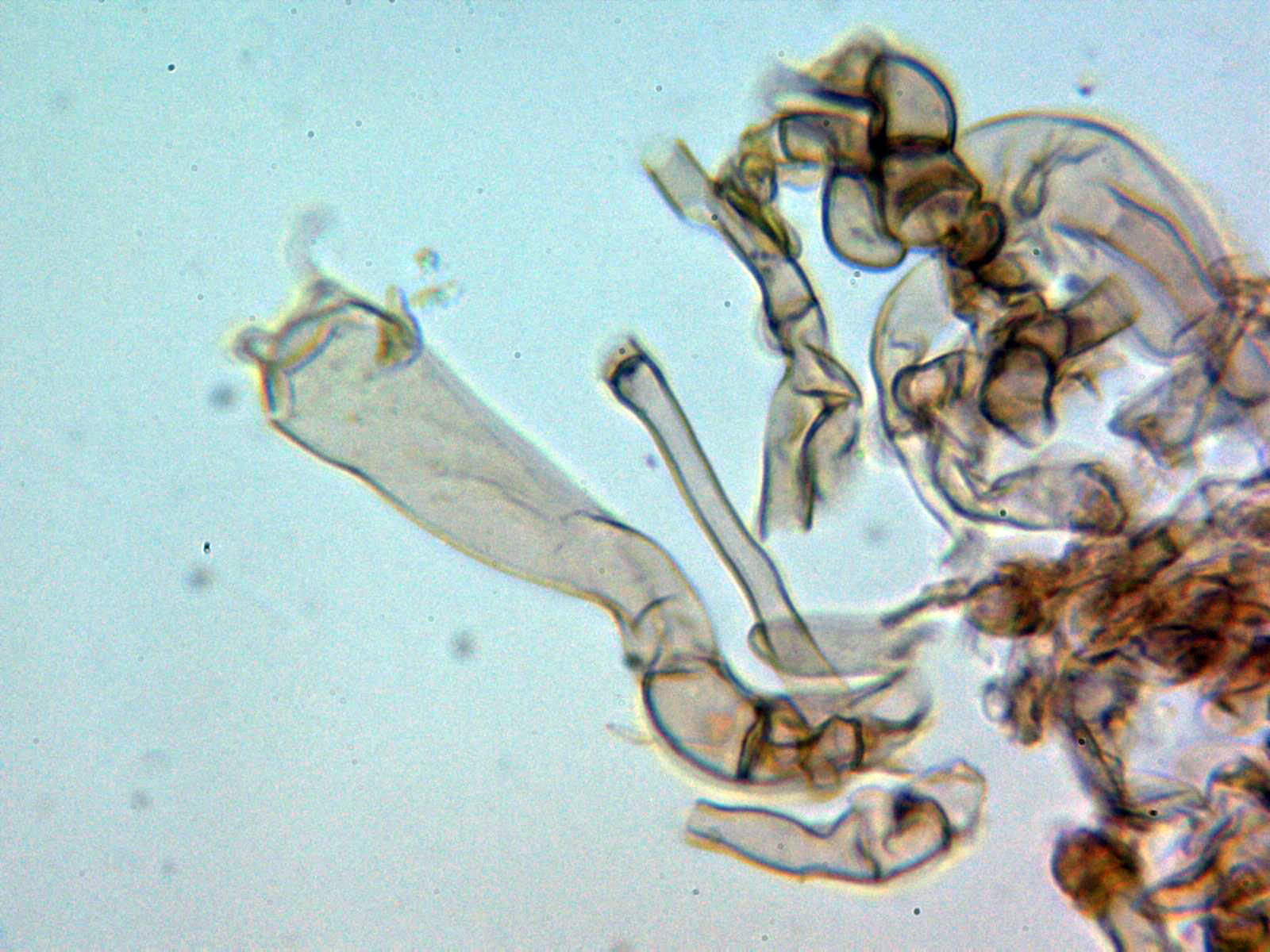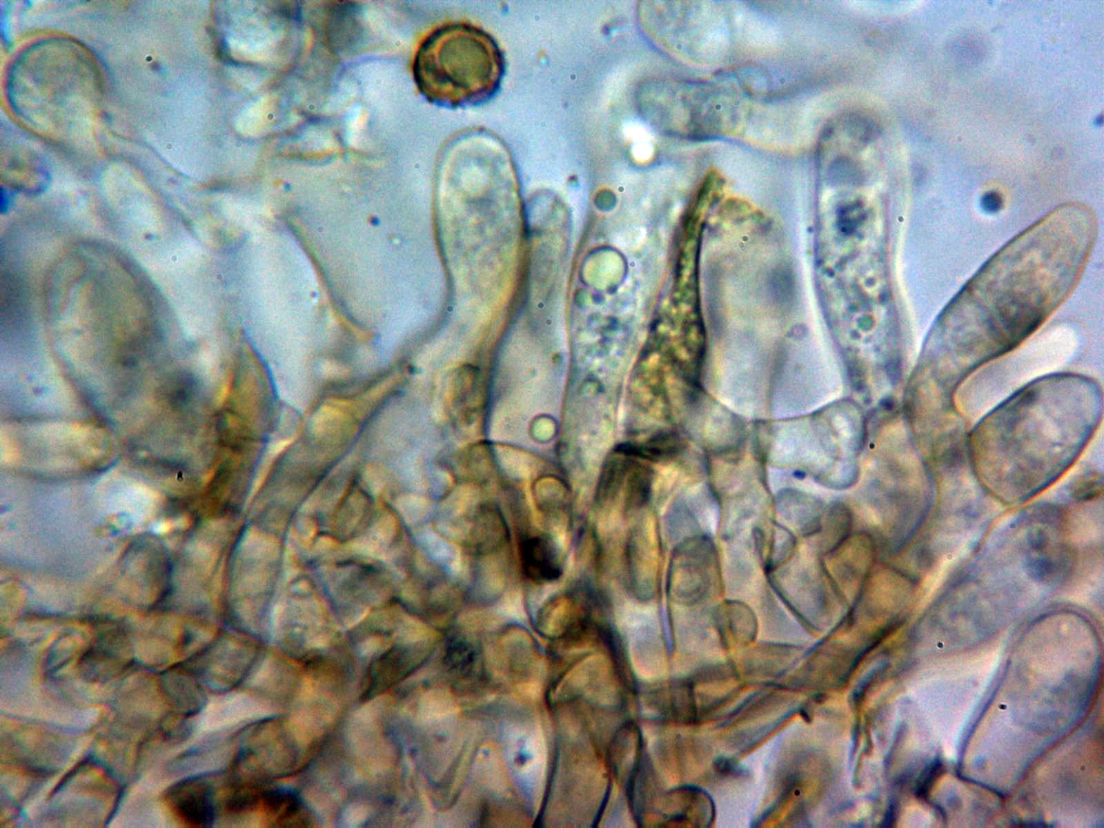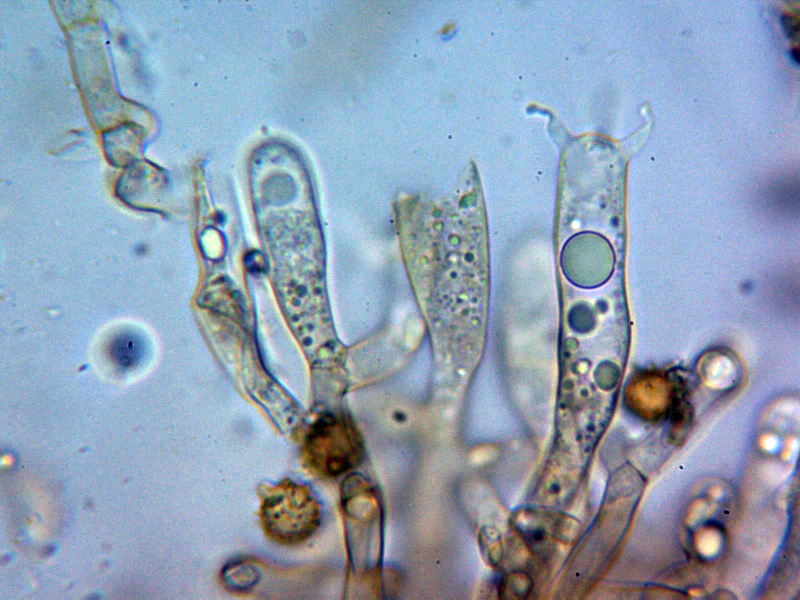 Los basidios en KOH, no se aprecia en su interior ninguna tinción a verde:
