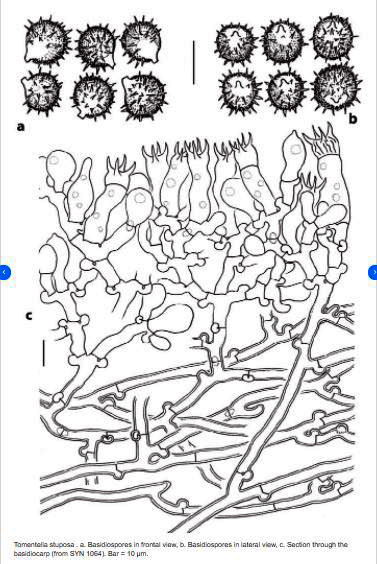 Añado una imágen de ResearchGate con el dibujo de la microscopía de la Tomentella stuposa, de lo poco que se puede encontrar en la red: